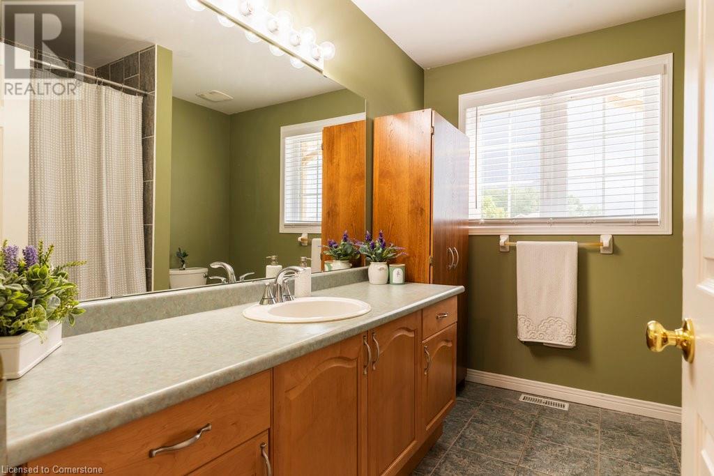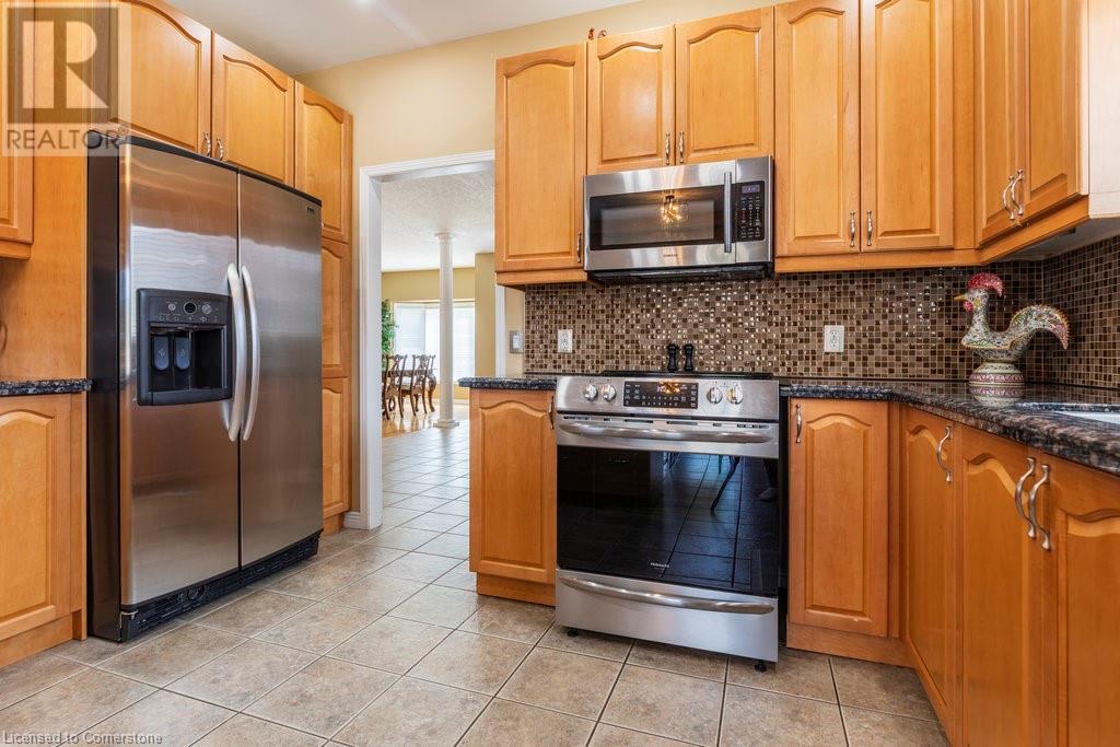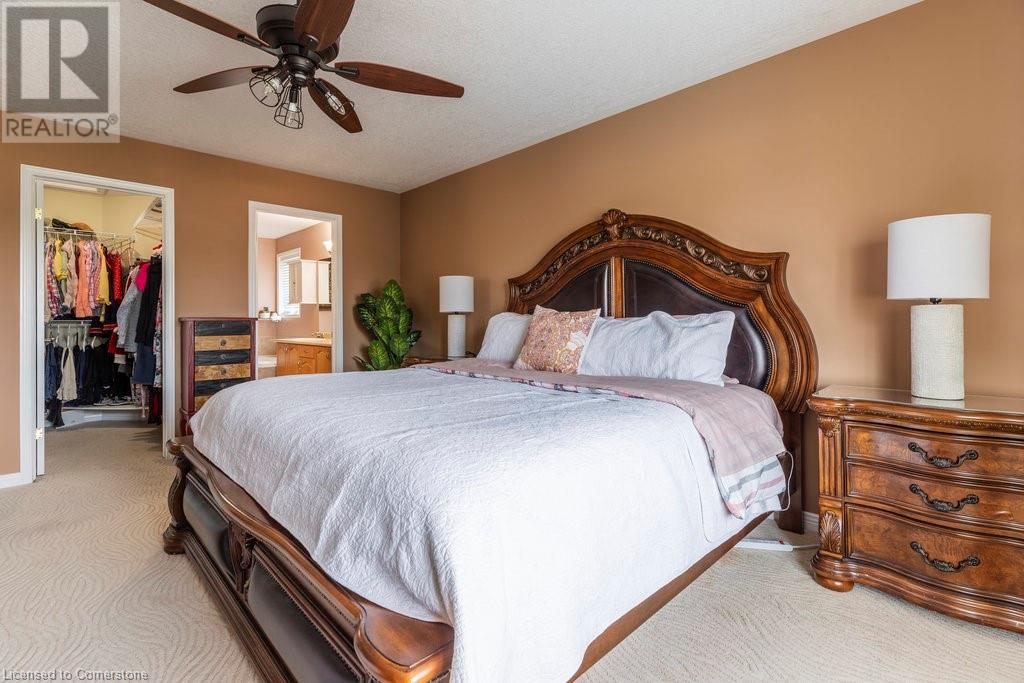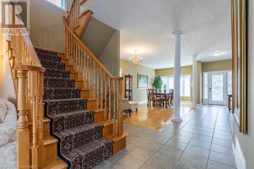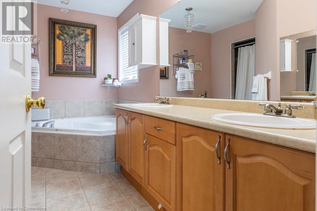 Welcome to this beautiful, lovingly maintained residence, proudly offered by its original owners. Originally built by Desantis Homes, buyers can expect comfort and convenience at every turn. As you enter, a welcoming foyer leads into a bright and airy living space with abundant 9ft ceilings, perfect for family gatherings and entertaining guests. The updated kitchen boasts ample cabinetry, granite countertops, and sleek stainless-steel appliances, with direct access to an oversized rear deck—ideal for al fresco dining and summer BBQs. The second level offers abundant space for a large or extended family, including a versatile loft area perfect for a home office or cozy reading nook. Retreat to the primary suite, a peaceful sanctuary featuring an ensuite bathroom and a generous walk-in closet. The fully finished lower level provides endless possibilities, with a recreation room, home gym, full bath, and a convenient laundry room. Outside, the beautifully landscaped yard offers a tranquil setting for outdoor relaxation and enjoyment. The property also features ample parking for up to eight cars and a durable steel roof, ensuring longevity and minimal maintenance. Other notable updates include windows throughout, furnace & AC, as well as stamped concrete drive and walkways. Nestled on the Stoney Creek Mountain, this location offers easy access to local amenities, schools, parks, and major highways. Buy with confidence! (id:55009)