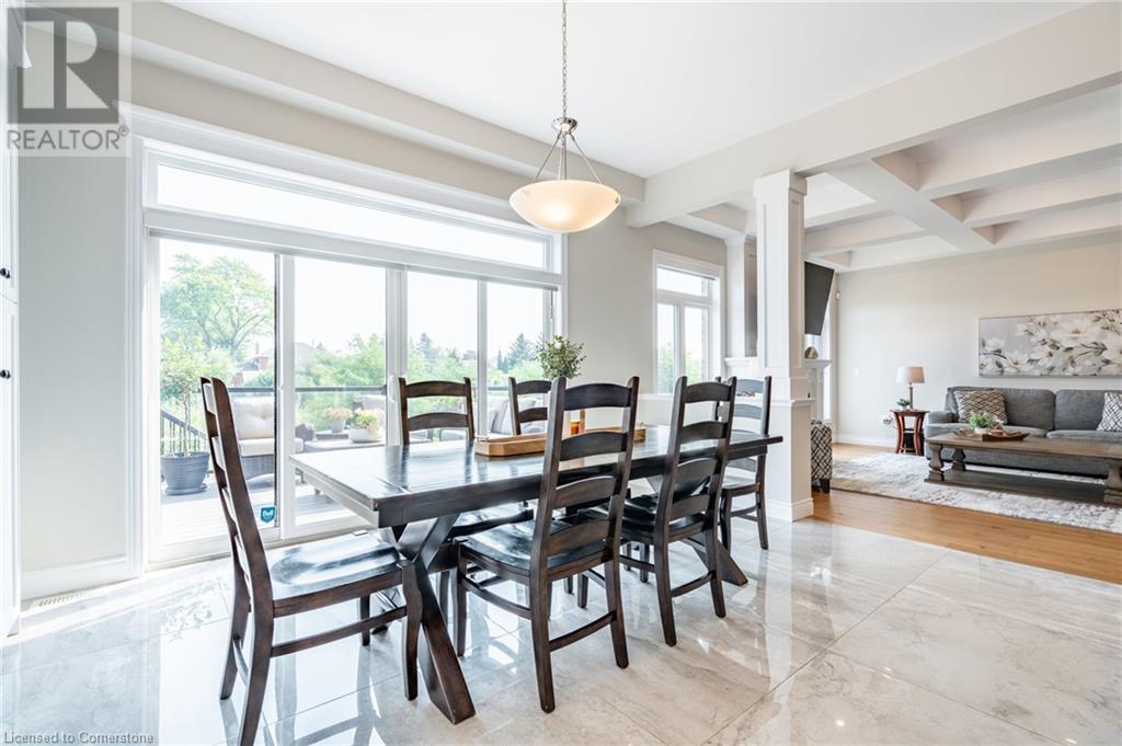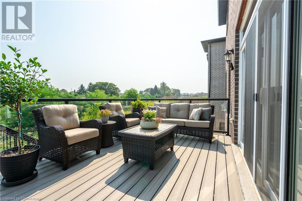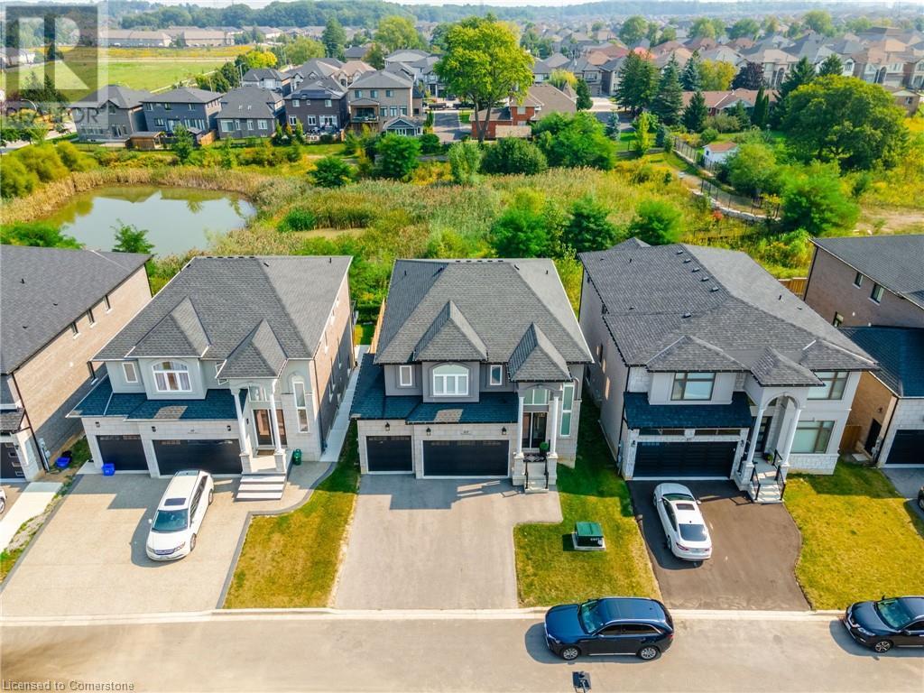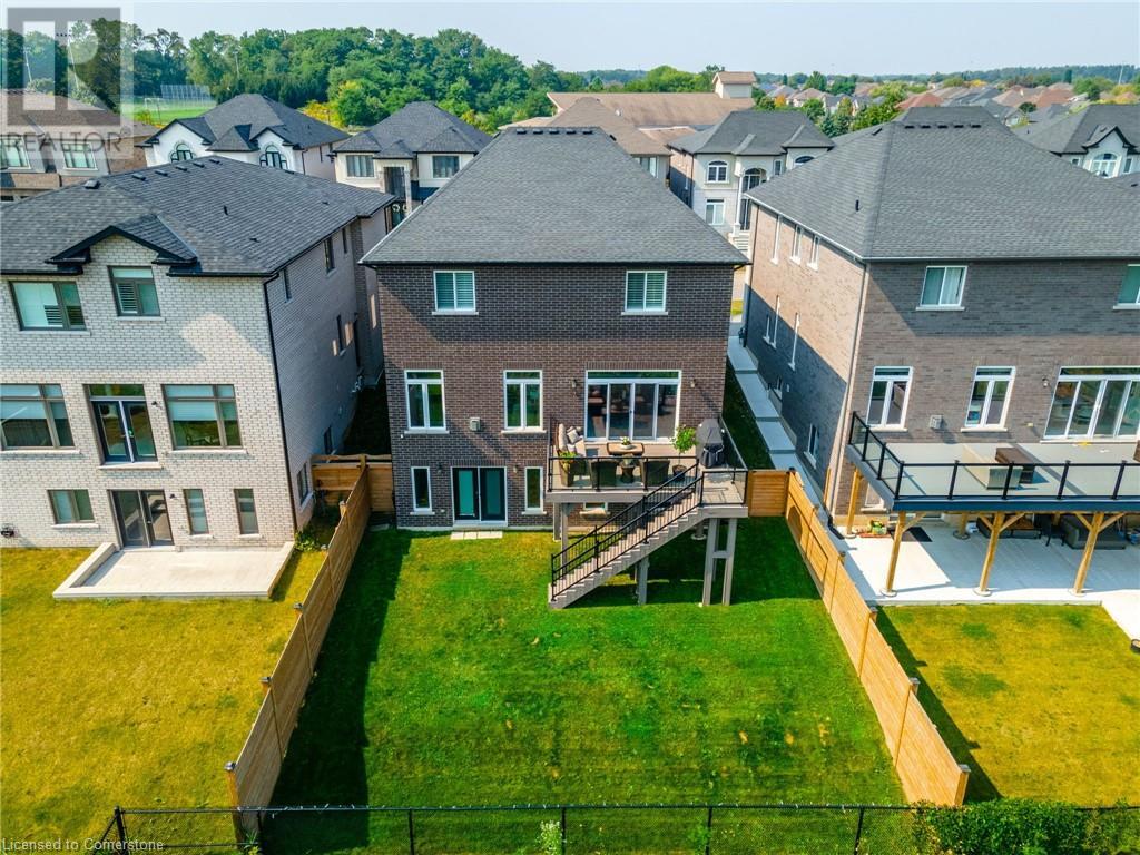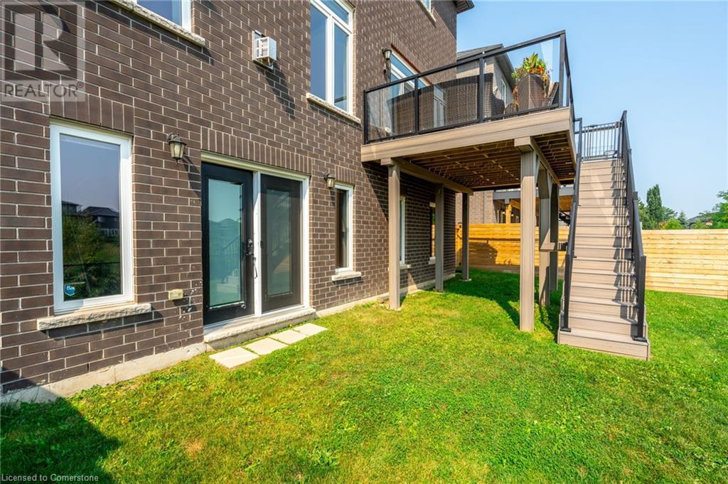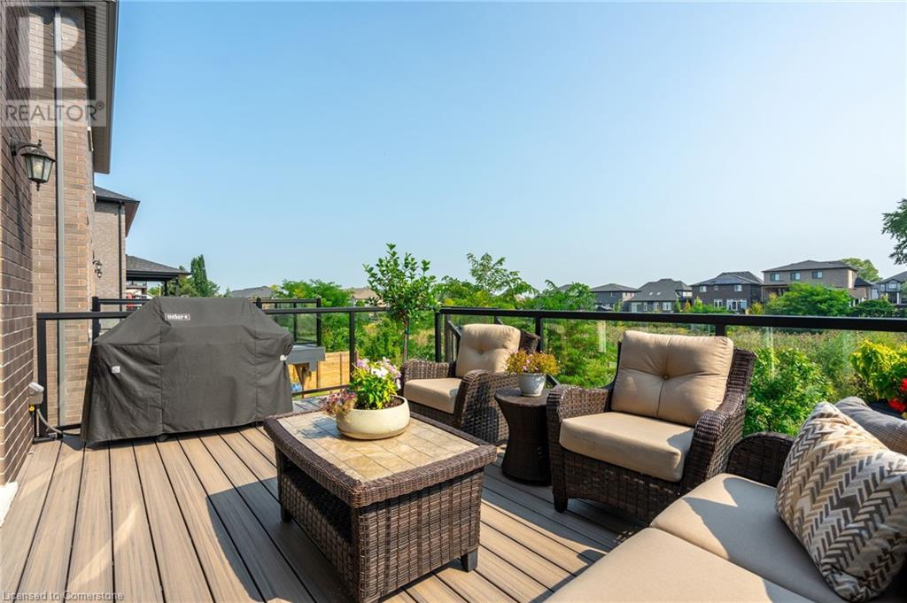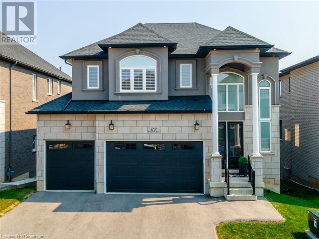 Welcome to 23 Deerfield Lane, nestled amongst luxury homes of distinction in a prestigious gated enclave in the Meadowlands of Ancaster. Offering over 3,700 sqft of beautiful living space with a perfect blend of elegance and serenity, backing onto lush greenspace and water pond. Boasting 4 beds, 4.5 baths, hardwood and porcelain throughout, fully finished basement with walk-out to private yard. The open-concept main level features wall-to-wall windows, breathtaking gourmet kitchen with stainless steel appliances, bright breakfast area with access to deck, large living room with 10 ft coffered ceiling and gas fireplace, formal dining room, powder room, laundry and mudroom with inside garage entry. Upper level offers a large primary suite with 5-piece spa bath and walk-in closet. 2 bedrooms with Jack-and-Jill bathroom access, plus a 4th spacious bedroom and a 4-piece main bath. The finished basement offers 9 ft ceilings, a 3-piece bath and a private walk-out entry, ideal for a potential in-law suite or tenant. Minutes to all amenities including great schools, parks, shopping, restaurants and easy highway access. (id:55009)