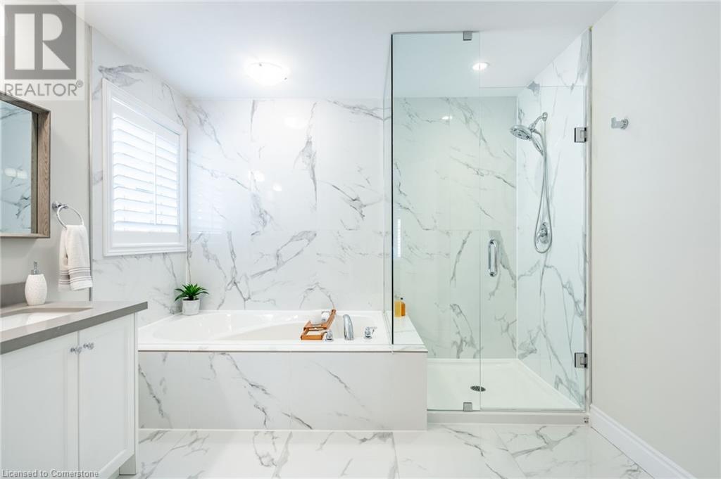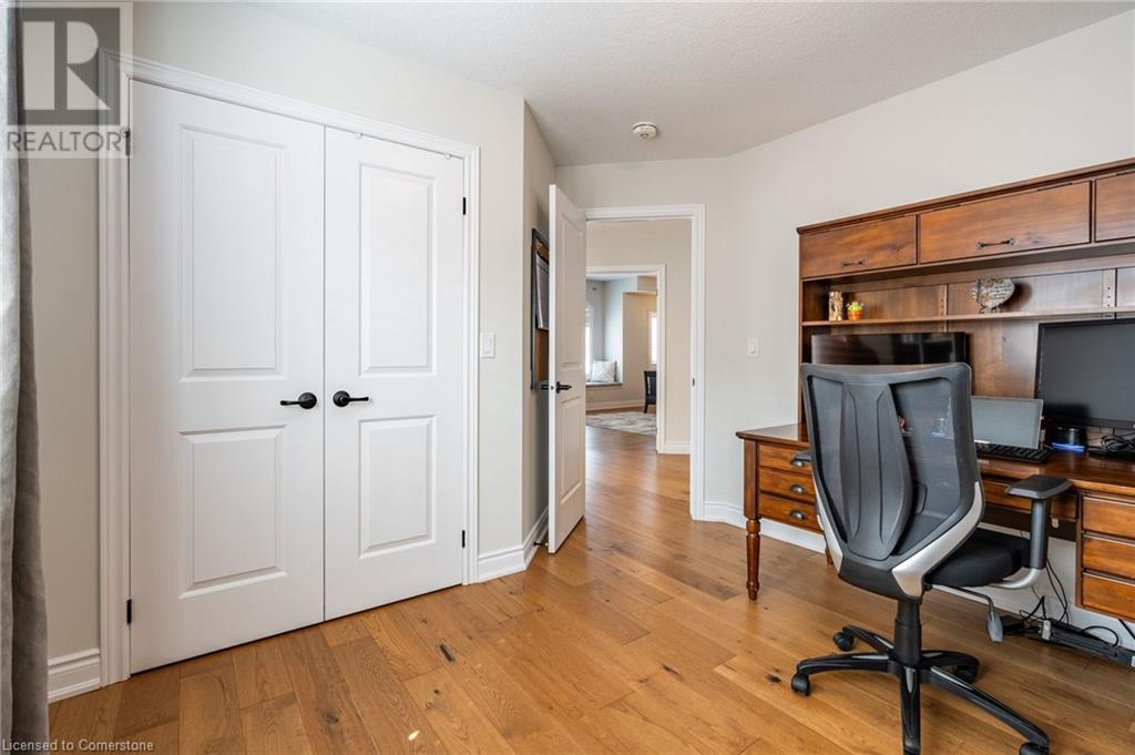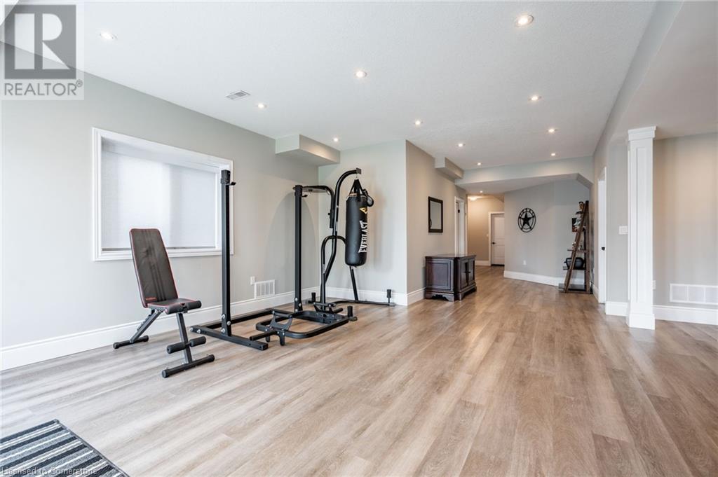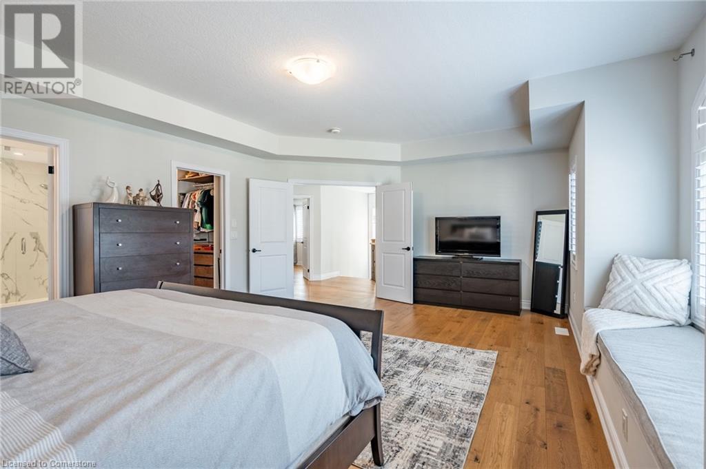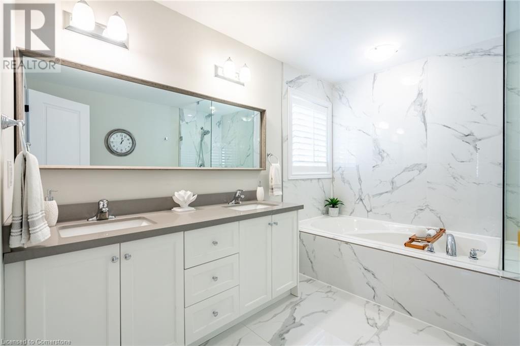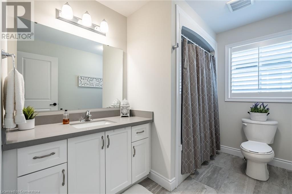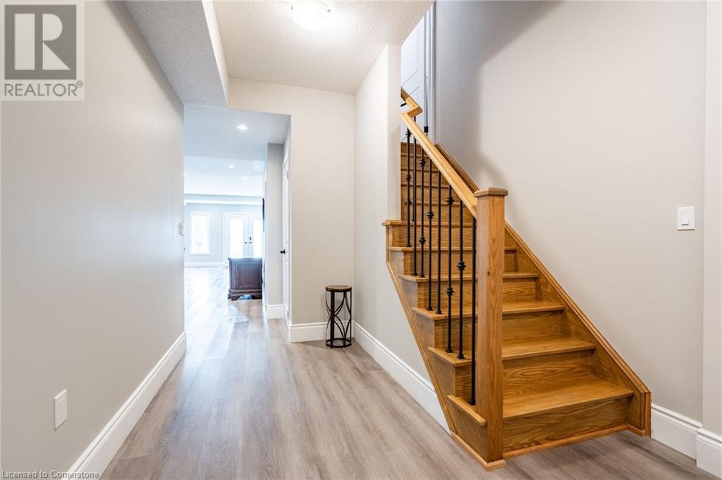 Welcome to 23 Deerfield Lane, nestled amongst luxury homes of distinction in a prestigious gated enclave in the Meadowlands of Ancaster. Offering over 3,700 sqft of beautiful living space with a perfect blend of elegance and serenity, backing onto lush greenspace and water pond. Boasting 4 beds, 4.5 baths, hardwood and porcelain throughout, fully finished basement with walk-out to private yard. The open-concept main level features wall-to-wall windows, breathtaking gourmet kitchen with stainless steel appliances, bright breakfast area with access to deck, large living room with 10 ft coffered ceiling and gas fireplace, formal dining room, powder room, laundry and mudroom with inside garage entry. Upper level offers a large primary suite with 5-piece spa bath and walk-in closet. 2 bedrooms with Jack-and-Jill bathroom access, plus a 4th spacious bedroom and a 4-piece main bath. The finished basement offers 9 ft ceilings, a 3-piece bath and a private walk-out entry, ideal for a potential in-law suite or tenant. Minutes to all amenities including great schools, parks, shopping, restaurants and easy highway access. (id:55009)
