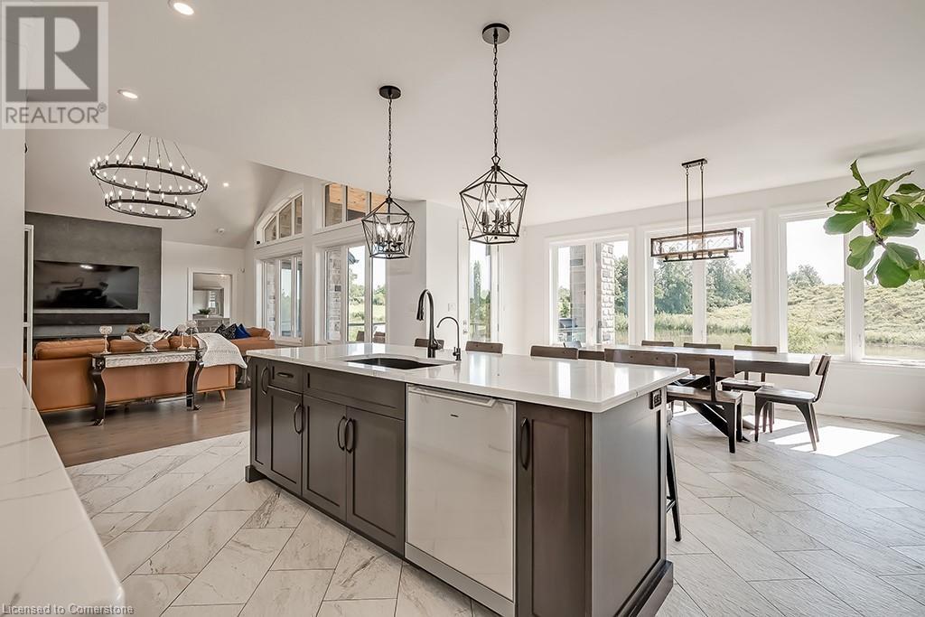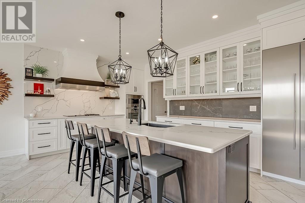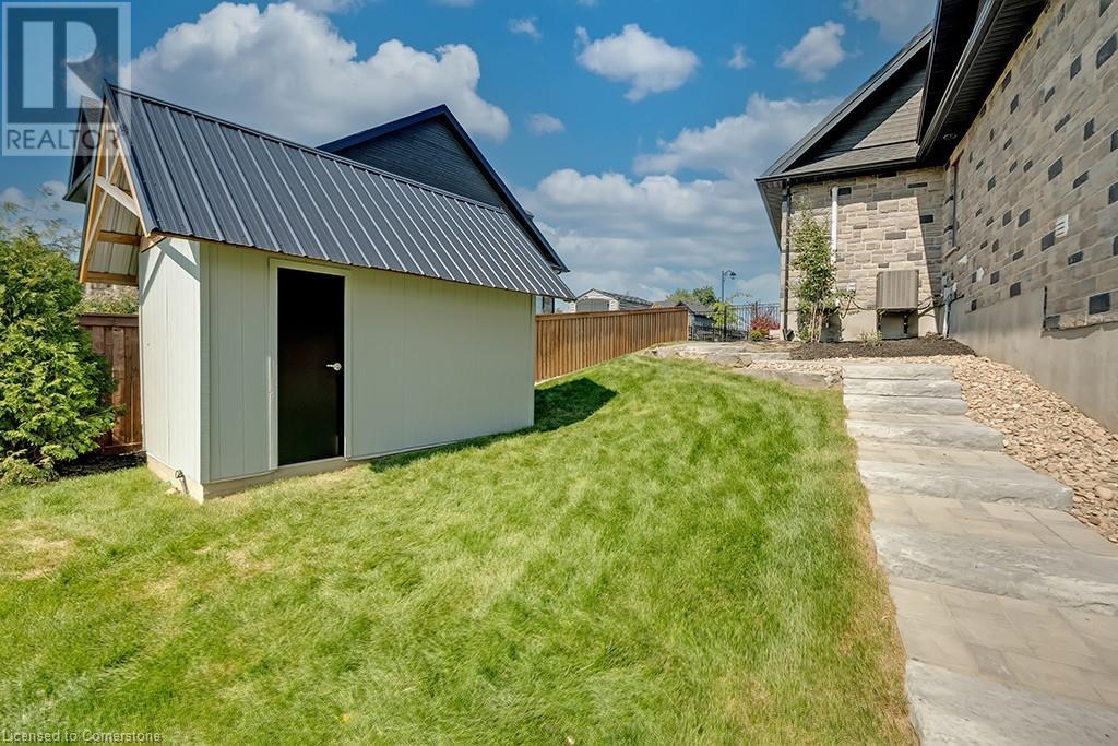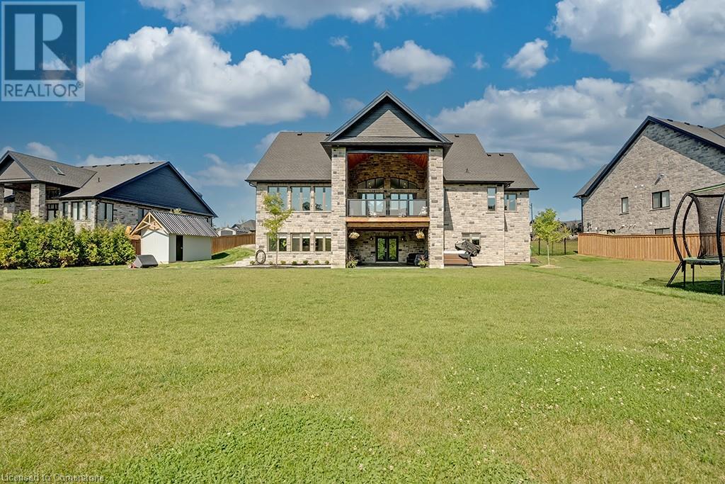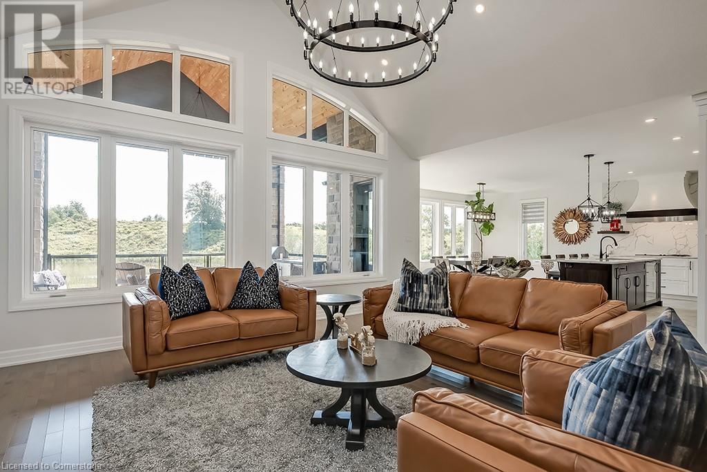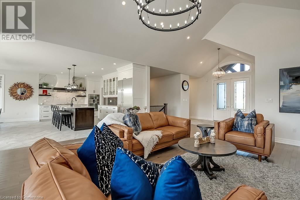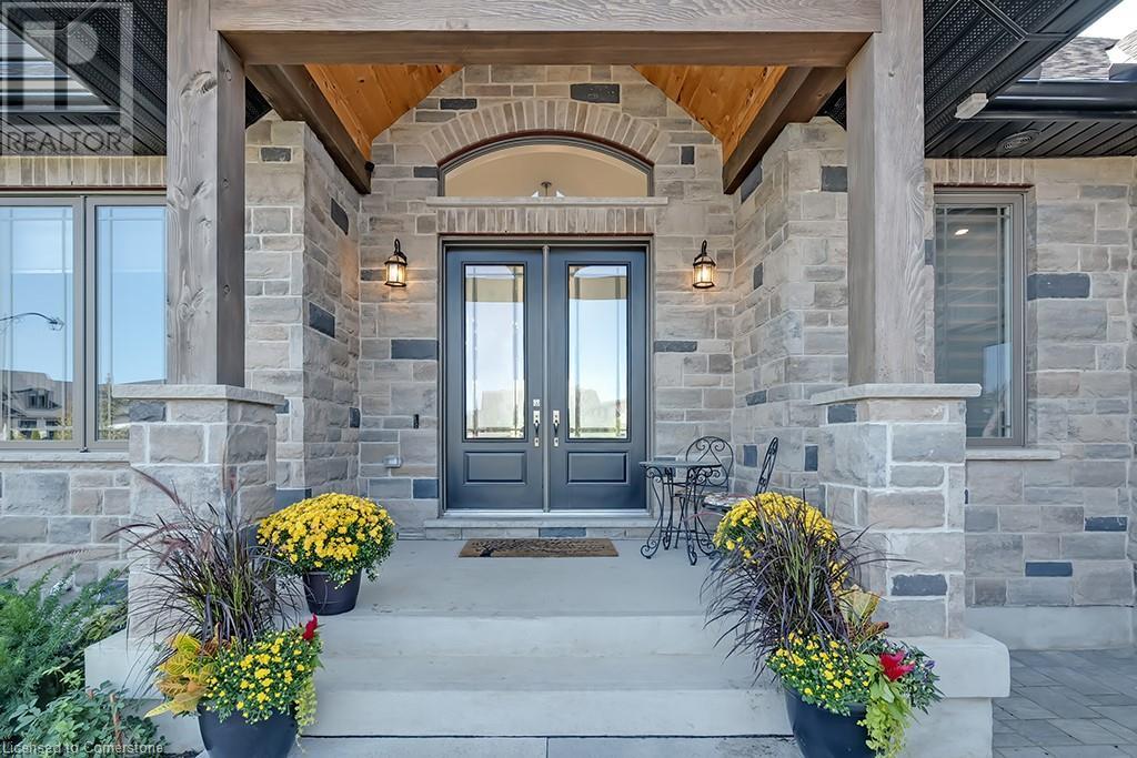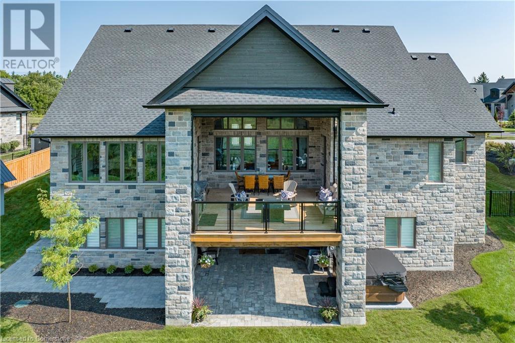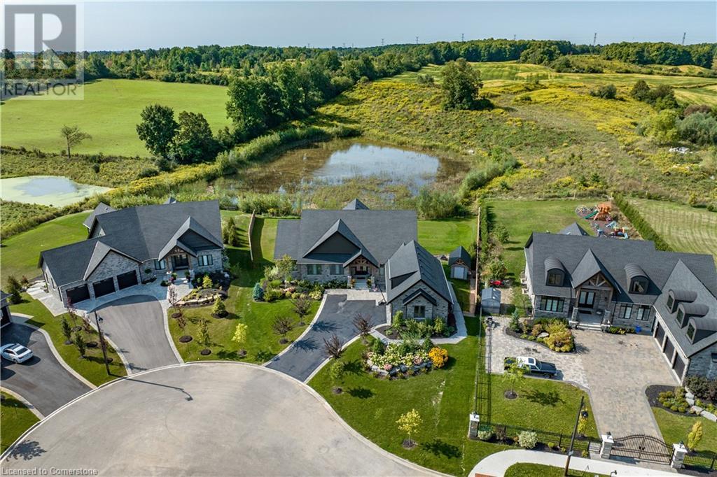 Amazing custom-built bungalow on a private pie shaped lot (over ½ an acre!) overlooking a picturesque pond/greenspace! This sprawling home boasts over 5100 square feet of top-quality finishes throughout including a finished WALK OUT lower level! This perfect home features 4+1 bedrooms, 3.5 bathrooms and an oversized triple car garage! The main entry boasts a vaulted foyer which leads to a stunning family room with soaring 15 ft ceilings and a stunning linear gas fireplace. The family room leads to the gourmet kitchen with top-of-the line Gaggenau appliances, an oversized island, quartz counter tops and a quartz backsplash. The kitchen also has a servery and access to the incredible porch with built-in BBQ / kitchen & motorized screens! The primary bedroom includes a spa-like 5-piece ensuite with heated tiles, a walk-in closet with custom organizer and access to the private porch! The main level includes 3 other bedrooms (one currently being used as an office) and a powder room, 4-piece main bath and a large mud/laundry room with garage access. The finished lower level features a wet bar, large rec room with a gas fireplace, spacious bedroom (currently set up as home gym) a den/office and a walkout to a large stone patio with a hot tub. The landscaped exterior includes a fenced yard, large custom shed and plenty of parking! This home is situated close to all amenities, schools, parks and a public transportation. Amazing premium lot completely surrounded by nature! (id:55009)