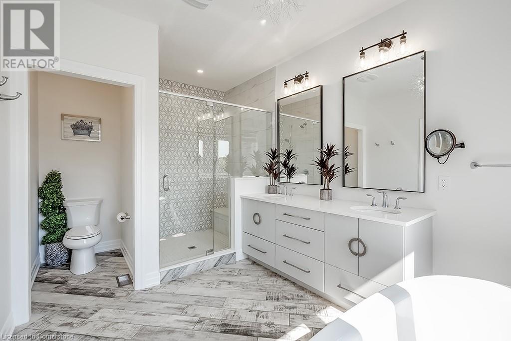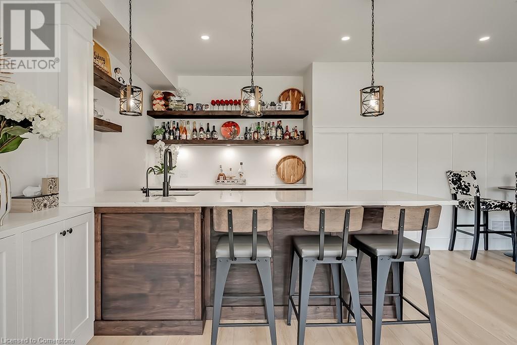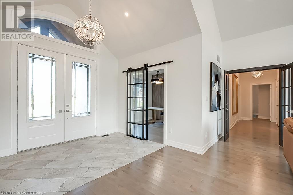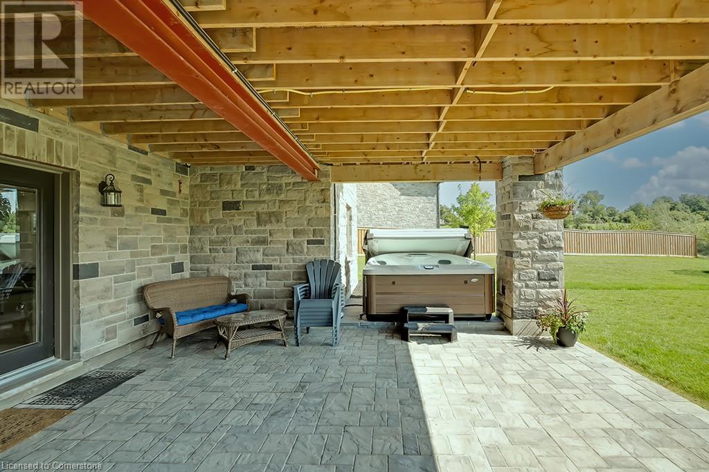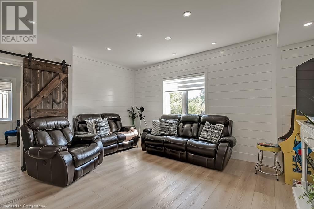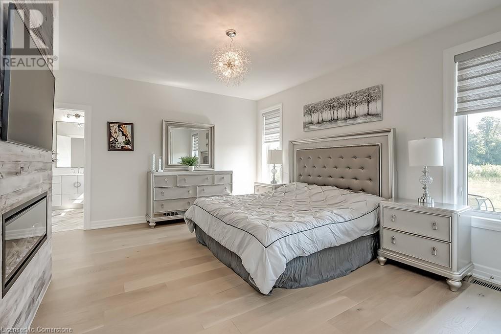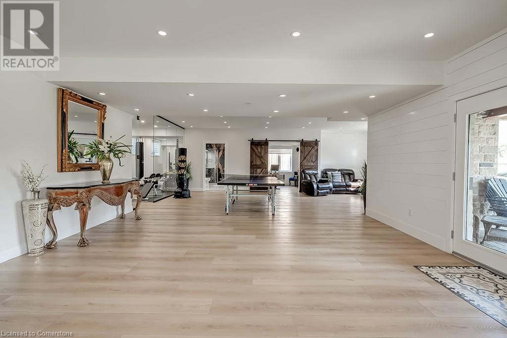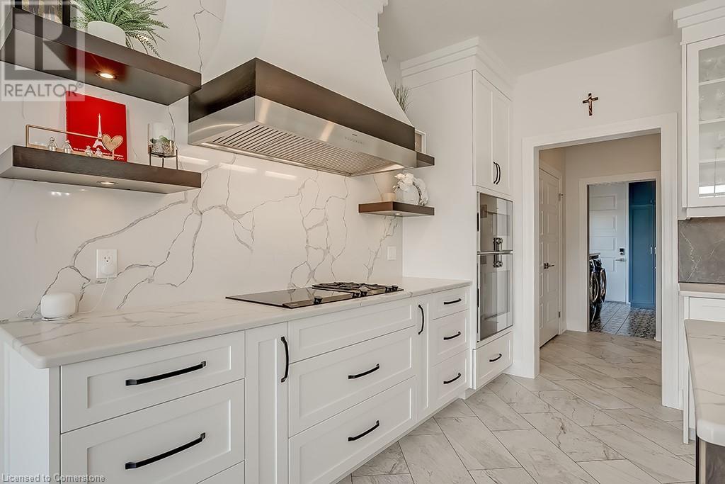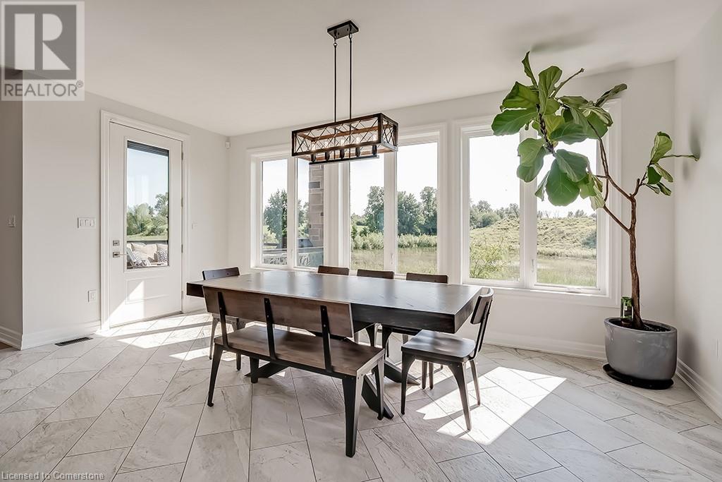 Amazing custom-built bungalow on a private pie shaped lot (over ½ an acre!) overlooking a picturesque pond/greenspace! This sprawling home boasts over 5100 square feet of top-quality finishes throughout including a finished WALK OUT lower level! This perfect home features 4+1 bedrooms, 3.5 bathrooms and an oversized triple car garage! The main entry boasts a vaulted foyer which leads to a stunning family room with soaring 15 ft ceilings and a stunning linear gas fireplace. The family room leads to the gourmet kitchen with top-of-the line Gaggenau appliances, an oversized island, quartz counter tops and a quartz backsplash. The kitchen also has a servery and access to the incredible porch with built-in BBQ / kitchen & motorized screens! The primary bedroom includes a spa-like 5-piece ensuite with heated tiles, a walk-in closet with custom organizer and access to the private porch! The main level includes 3 other bedrooms (one currently being used as an office) and a powder room, 4-piece main bath and a large mud/laundry room with garage access. The finished lower level features a wet bar, large rec room with a gas fireplace, spacious bedroom (currently set up as home gym) a den/office and a walkout to a large stone patio with a hot tub. The landscaped exterior includes a fenced yard, large custom shed and plenty of parking! This home is situated close to all amenities, schools, parks and a public transportation. Amazing premium lot completely surrounded by nature! (id:55009)