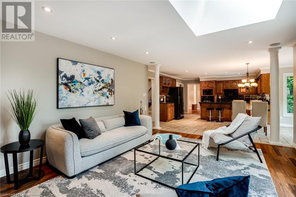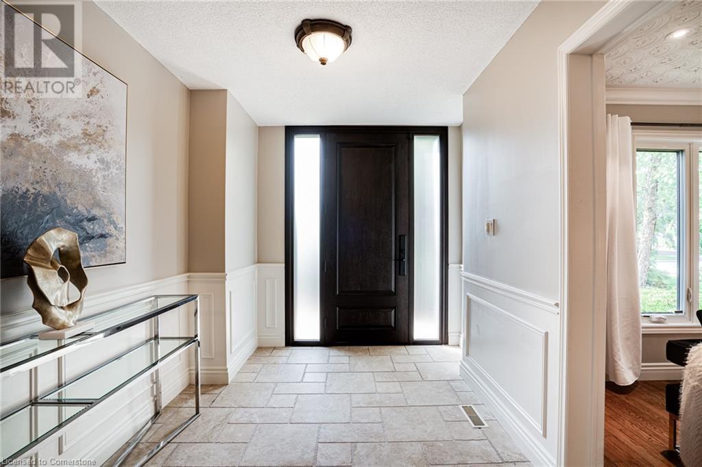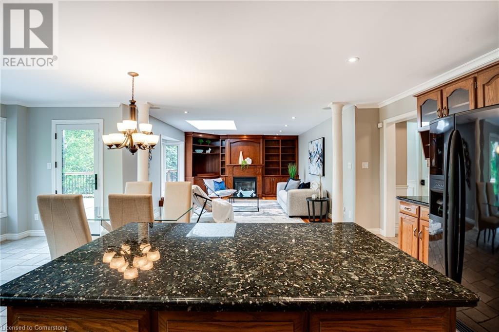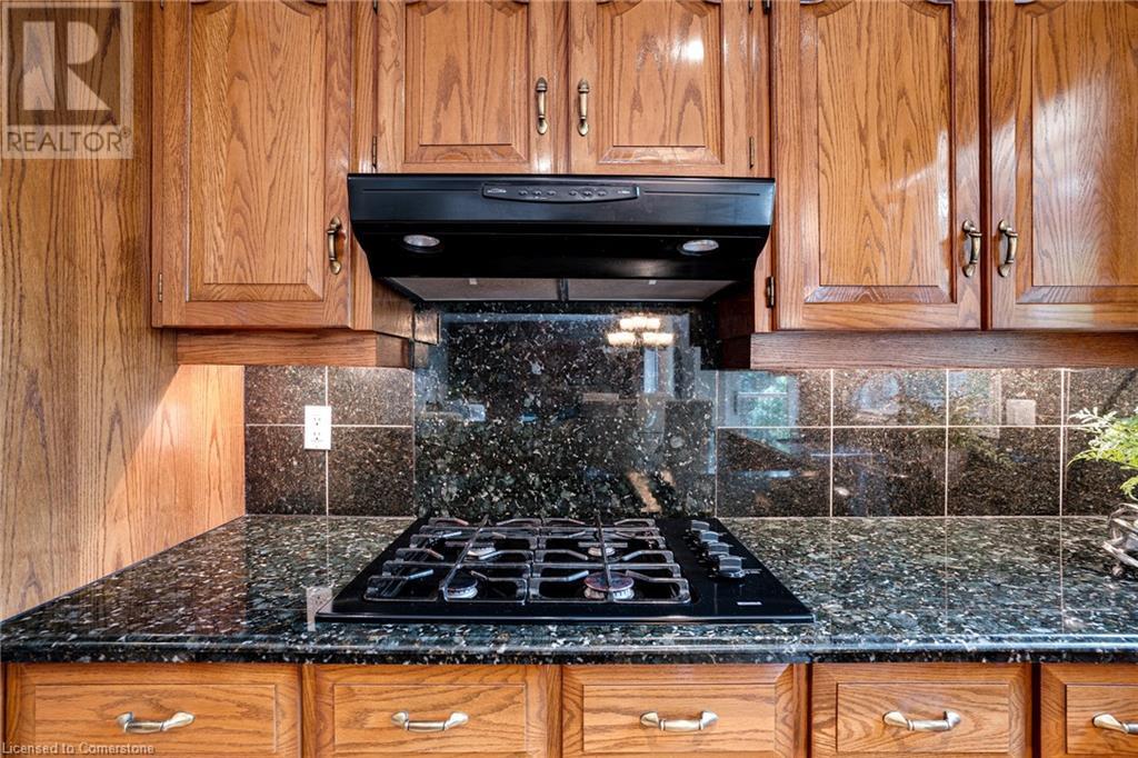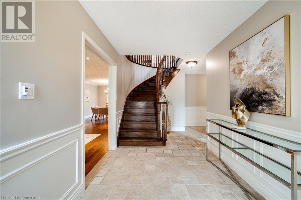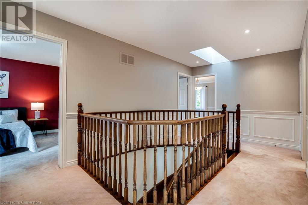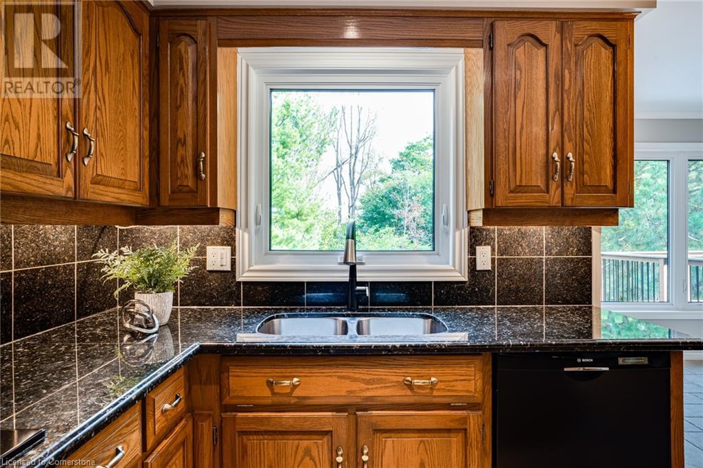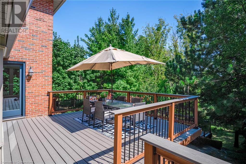 This amazing Tyandaga, rarely offered Ravine Estate home, offers over 4400 Sq. Ft. of finished living space. Enter your private retreat though the new custom front door. The main floor office is located away from the family room and kitchen and is ideal for work from home. The formal living room looks out onto the profess. landscaped gardens. Hardwood floors and stone tile is the primary flooring on the main level and the family sized kitchen offers an abundance of storage and a huge island with a walk-out to the new composite deck. The spacious family room with a new gas fireplace, custom built-in cabinetry and lovely widow seat, huge skylight, overlooking the incredible backyard. The 2nd floor offers 4 spacious bedrooms and the Principal suite offers views of the pool and ravine area, a renovated ensuite bath and walk-in closet with an adjoining 4th bed/den/nursery. 4 Updated baths throughout the incredible home with heated floors in the 2nd floor baths and basement bath. 4 spacious bedrooms on the 2nd floor, there is also a 5th bed. on the walk-out basement level. A Huge recreation room with a gas fireplace and tons of storage. The backyard oasis has heated salt water Inground pool, and hot tub and waterfall, new pool liner(2024), new pool heater(2021), New composite deck(2020), wifi activated pool cleaner, Cabana w/new roof(2022), gas line for BBQ, inground sprinkler system, newer windows, new doors(2020). An entertainment paradise! (id:55009)