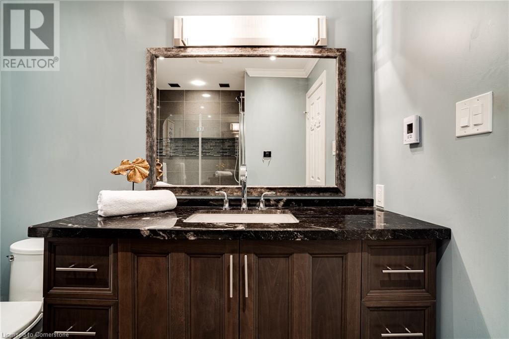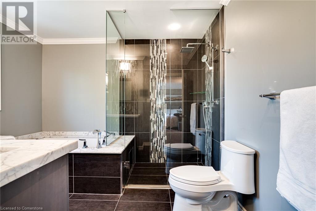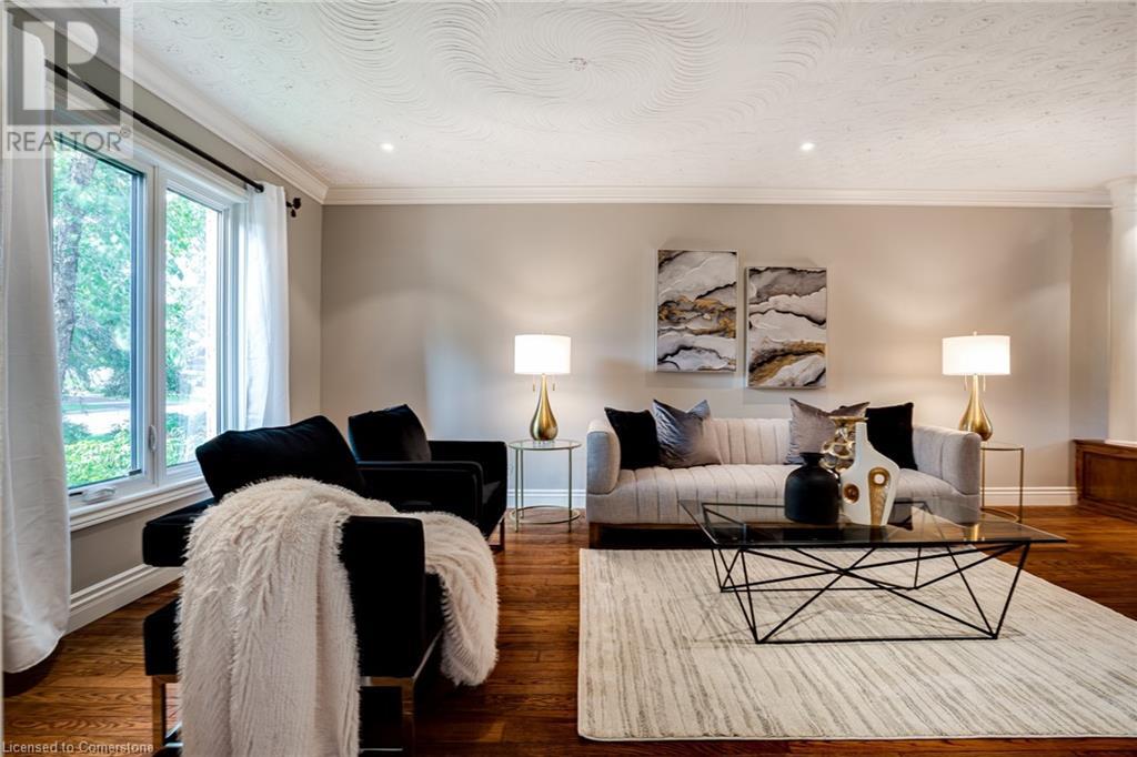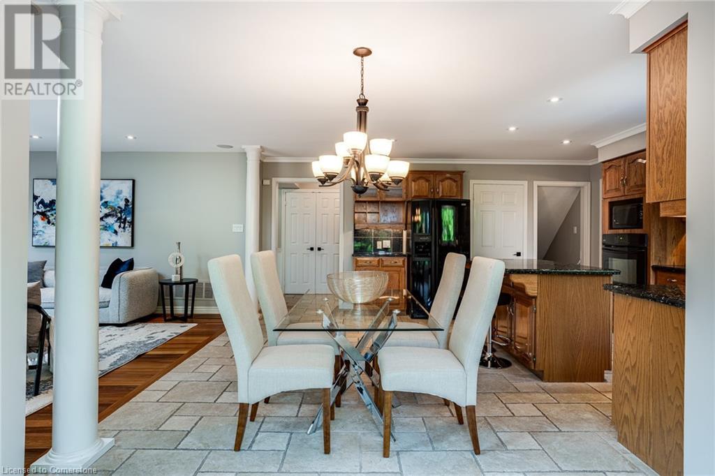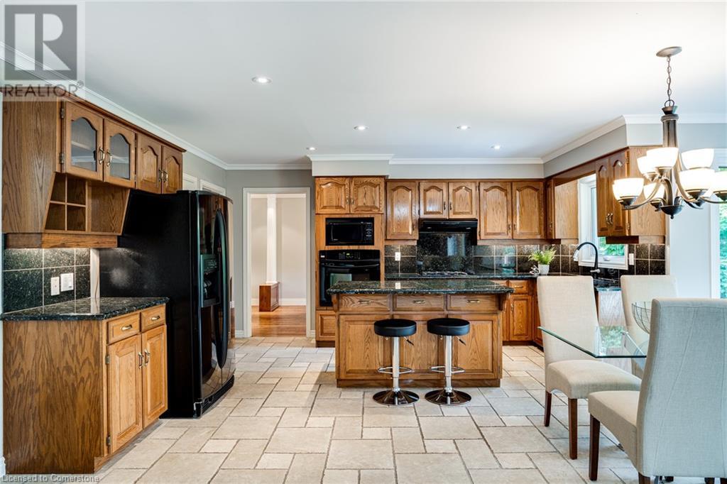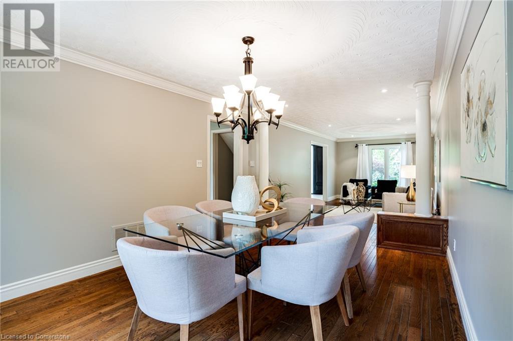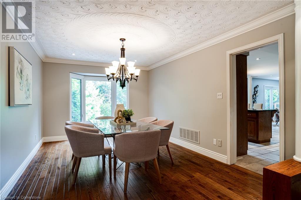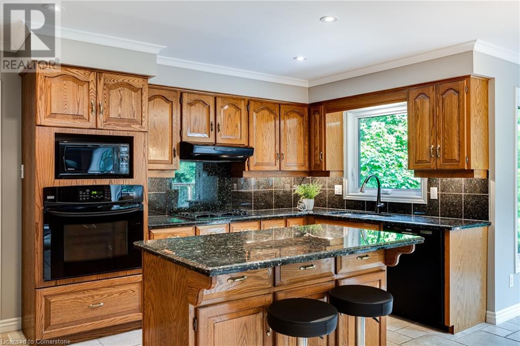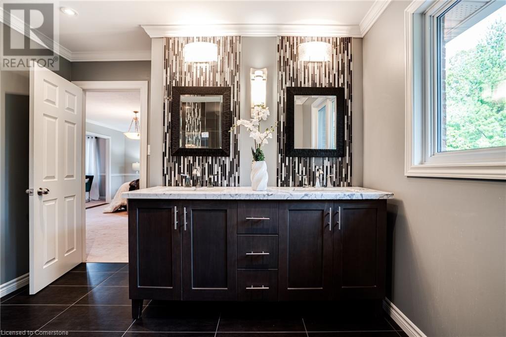 This amazing Tyandaga, rarely offered Ravine Estate home, offers over 4400 Sq. Ft. of finished living space. Enter your private retreat though the new custom front door. The main floor office is located away from the family room and kitchen and is ideal for work from home. The formal living room looks out onto the profess. landscaped gardens. Hardwood floors and stone tile is the primary flooring on the main level and the family sized kitchen offers an abundance of storage and a huge island with a walk-out to the new composite deck. The spacious family room with a new gas fireplace, custom built-in cabinetry and lovely widow seat, huge skylight, overlooking the incredible backyard. The 2nd floor offers 4 spacious bedrooms and the Principal suite offers views of the pool and ravine area, a renovated ensuite bath and walk-in closet with an adjoining 4th bed/den/nursery. 4 Updated baths throughout the incredible home with heated floors in the 2nd floor baths and basement bath. 4 spacious bedrooms on the 2nd floor, there is also a 5th bed. on the walk-out basement level. A Huge recreation room with a gas fireplace and tons of storage. The backyard oasis has heated salt water Inground pool, and hot tub and waterfall, new pool liner(2024), new pool heater(2021), New composite deck(2020), wifi activated pool cleaner, Cabana w/new roof(2022), gas line for BBQ, inground sprinkler system, newer windows, new doors(2020). An entertainment paradise! (id:55009)