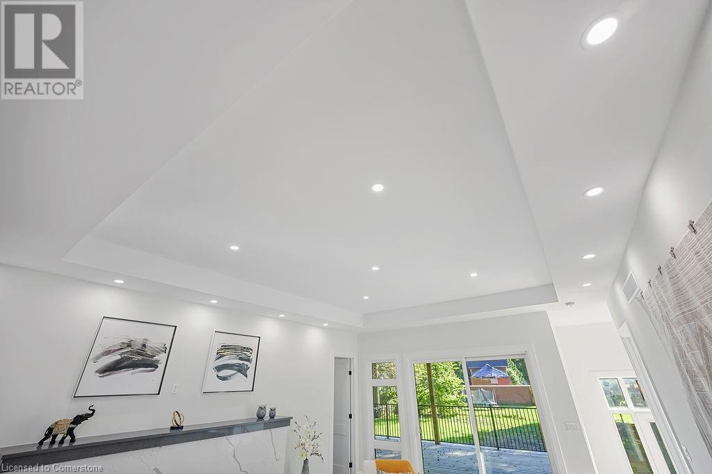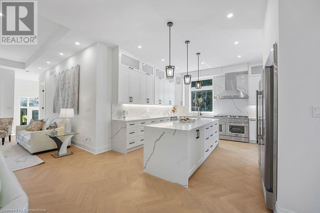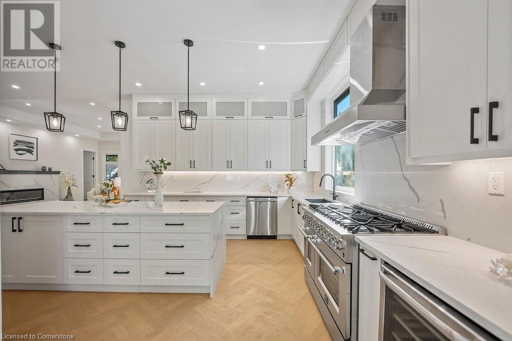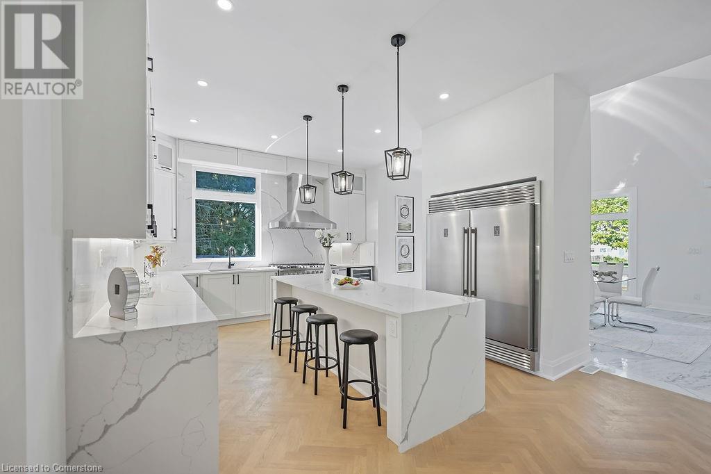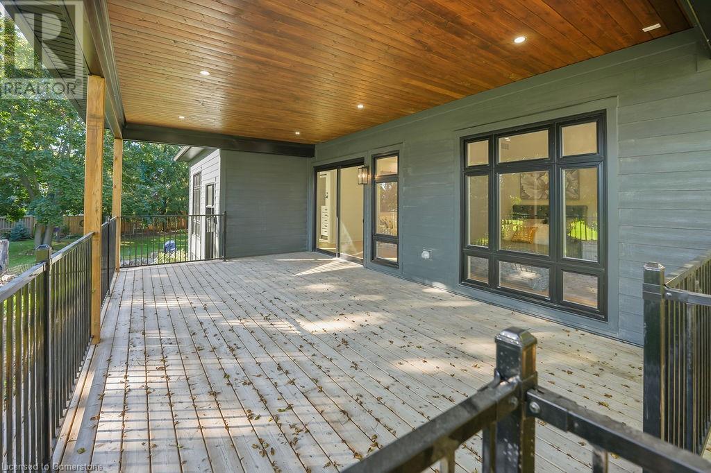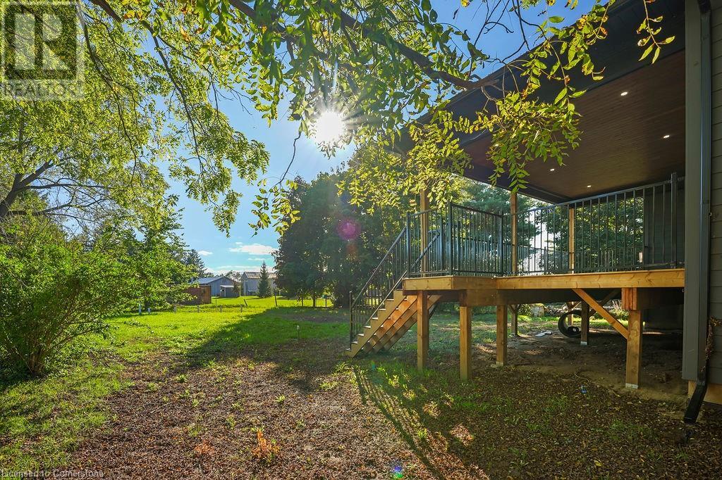 Absolutely stunning! Brand new custom quality bungalow in charming Mt. Pleasant. Modern luxury at it's finest, this 3 bedroom, 4 bath home is enhanced by tasteful upgrades throughout. Step into the foyer, through the 8ft front door onto 32 inch porcelain tiles which flow into a vaulted ceiling dining room, bathed in natural light. 10 ft ceilings. The amazing kitchen boasts an abundance of cabinets, high end FORNO SS appliances including an 8 burner gas stove, wine fridge and touchless faucet. The centre island is topped by a quartz countertop with a waterfall feature. The impressive Great Room is highlighted by a 10 ft wide gas fireplace (with remote) wrapped in quartz. this large living area with coffered ceiling comfortably fits a sitting area and lounge space. The beautiful herringbone maple hardwood flows through into all hallways and bedrooms. Walk onto the expansive covered deck perfect for entertaining. Each bedroom has an ensuite bath which includes a smart, integrated toilet (with remote) LED mirror, glass shower with rainfall showerhead and handheld attachment finished with sleek black fixtures. Huge finished basement with 9 ft ceilings, many large windows and 2 separate entrances. Spacious triple car garage features 17 ft ceiling, wall mounted wifi smart garage door openers and a 4th door to backyard. Ideal for a home business or serious hobbyist. Behind the superior finishes construction details include 50 year shingles and a raised basement with upgraded drainage system. Constructed with care by a Tarion licensed custom builder. 7 year warranty. This magnificent home sits on an estate sized lot, moments from an elementary school, churches, parks, hiking/biking trails and popular Devlin's Bistro and Windmill Country Market. Come for a visit, it feels like home. (id:55009)