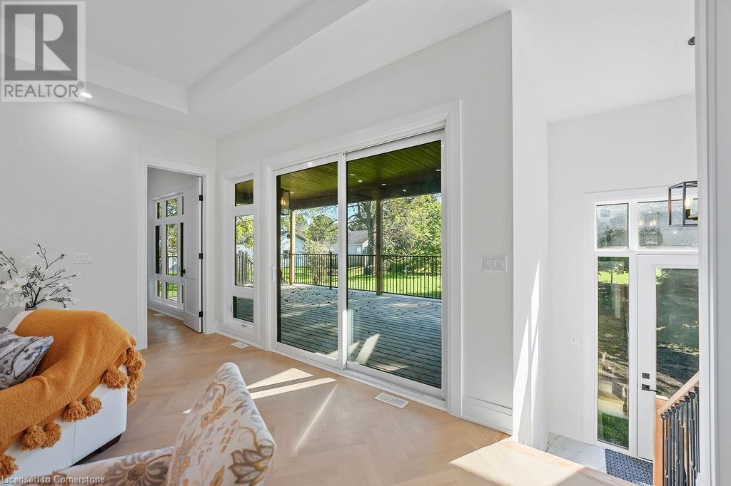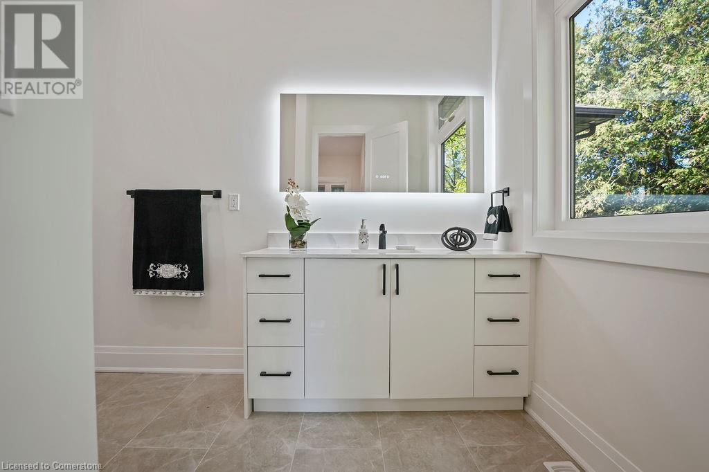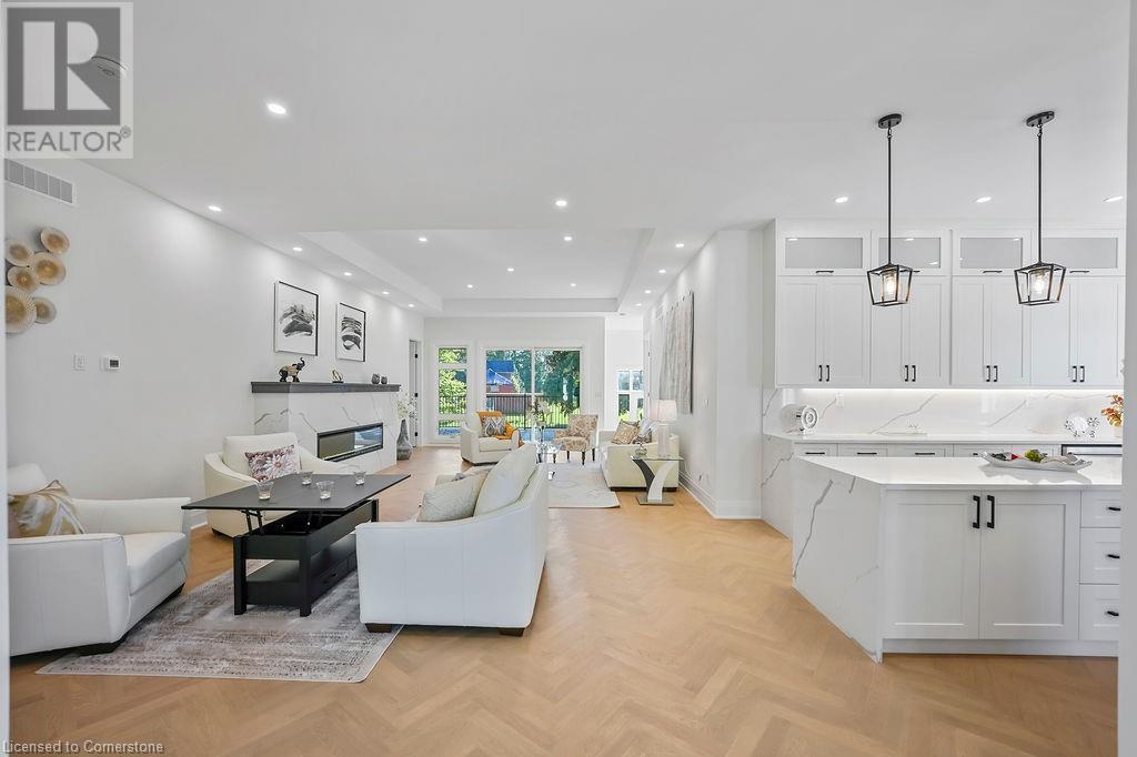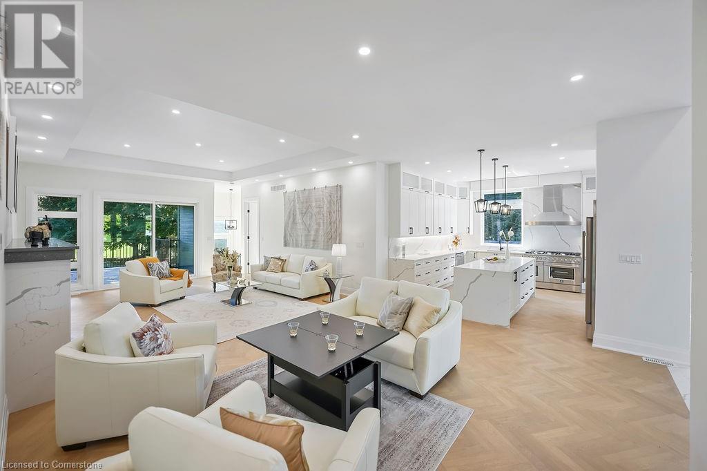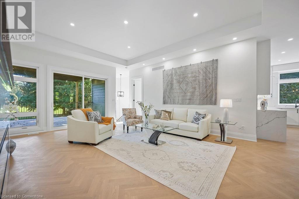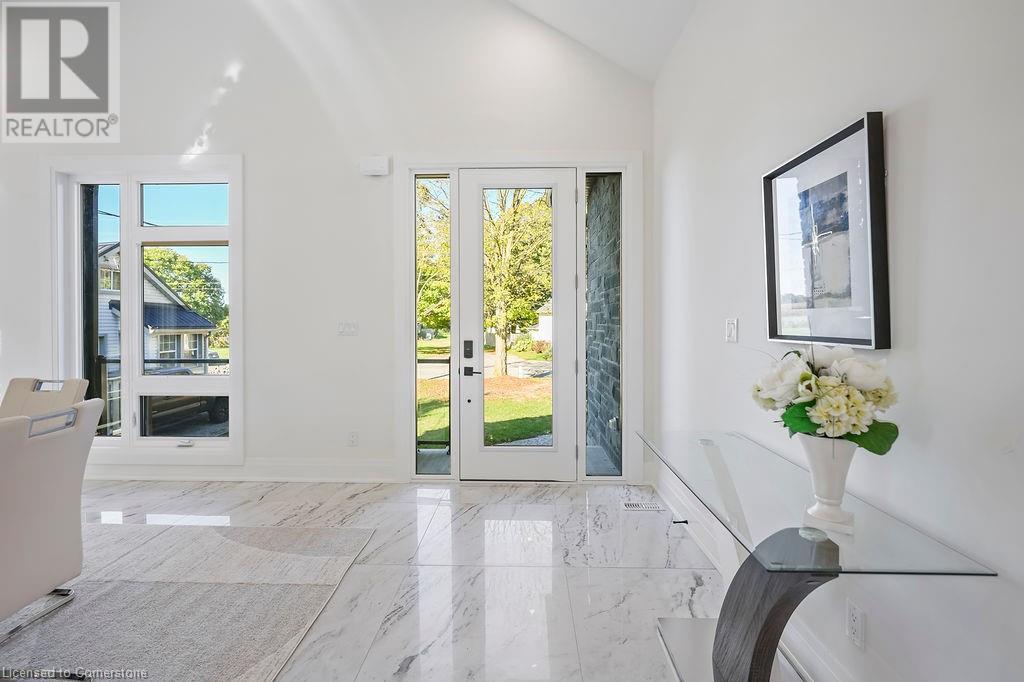 Absolutely stunning! Brand new custom quality bungalow in charming Mt. Pleasant. Modern luxury at it's finest, this 3 bedroom, 4 bath home is enhanced by tasteful upgrades throughout. Step into the foyer, through the 8ft front door onto 32 inch porcelain tiles which flow into a vaulted ceiling dining room, bathed in natural light. 10 ft ceilings. The amazing kitchen boasts an abundance of cabinets, high end FORNO SS appliances including an 8 burner gas stove, wine fridge and touchless faucet. The centre island is topped by a quartz countertop with a waterfall feature. The impressive Great Room is highlighted by a 10 ft wide gas fireplace (with remote) wrapped in quartz. this large living area with coffered ceiling comfortably fits a sitting area and lounge space. The beautiful herringbone maple hardwood flows through into all hallways and bedrooms. Walk onto the expansive covered deck perfect for entertaining. Each bedroom has an ensuite bath which includes a smart, integrated toilet (with remote) LED mirror, glass shower with rainfall showerhead and handheld attachment finished with sleek black fixtures. Huge finished basement with 9 ft ceilings, many large windows and 2 separate entrances. Spacious triple car garage features 17 ft ceiling, wall mounted wifi smart garage door openers and a 4th door to backyard. Ideal for a home business or serious hobbyist. Behind the superior finishes construction details include 50 year shingles and a raised basement with upgraded drainage system. Constructed with care by a Tarion licensed custom builder. 7 year warranty. This magnificent home sits on an estate sized lot, moments from an elementary school, churches, parks, hiking/biking trails and popular Devlin's Bistro and Windmill Country Market. Come for a visit, it feels like home. (id:55009)
