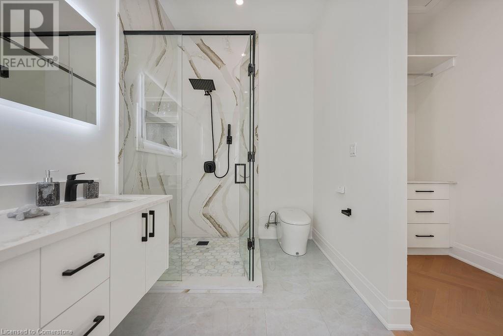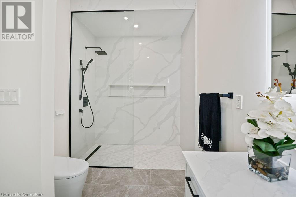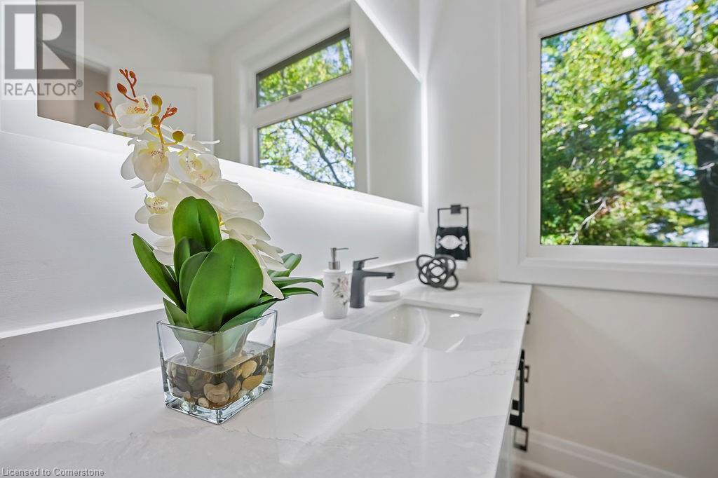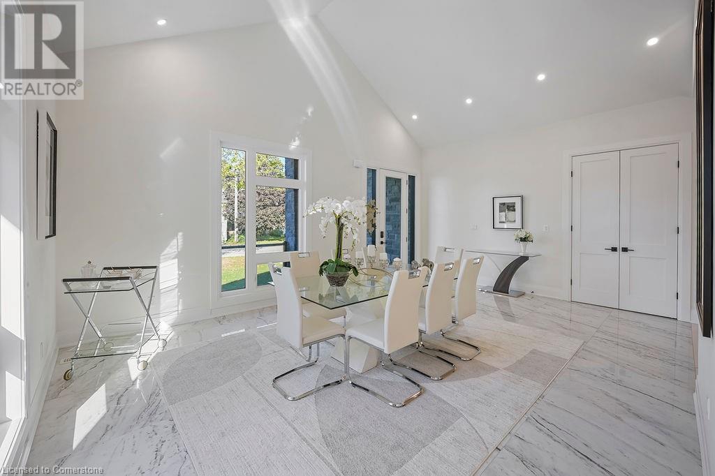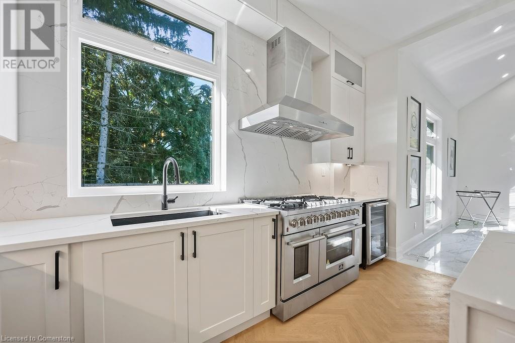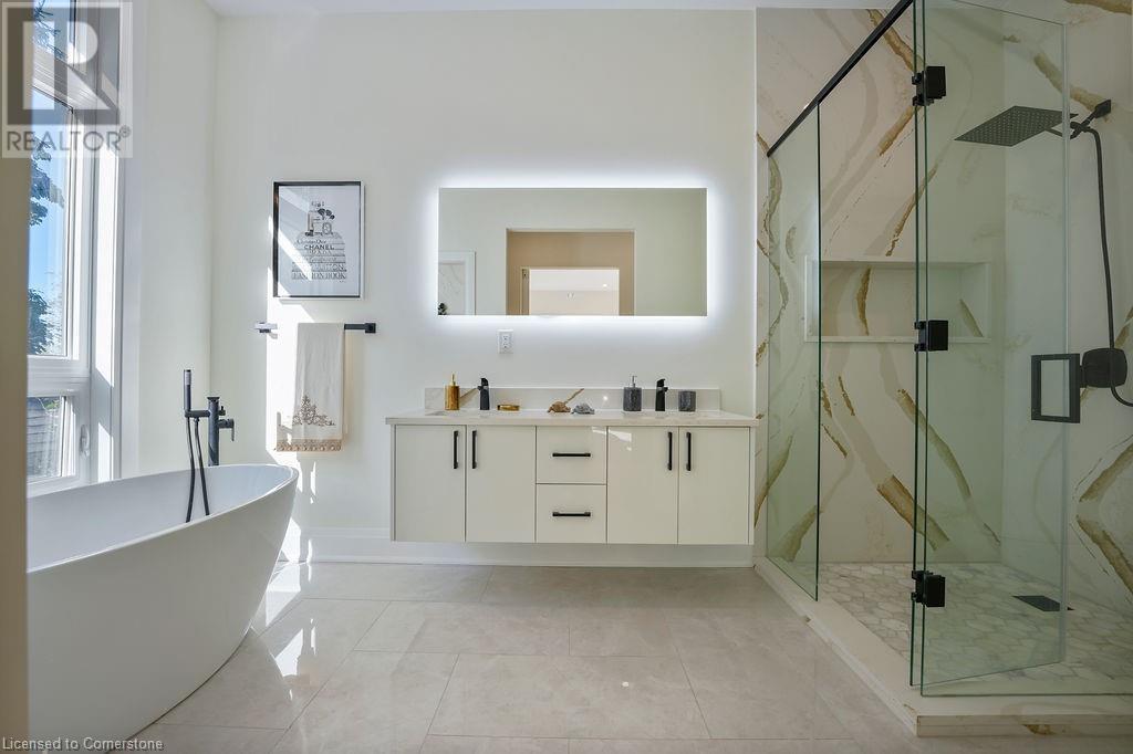 Absolutely stunning! Brand new custom quality bungalow in charming Mt. Pleasant. Modern luxury at it's finest, this 3 bedroom, 4 bath home is enhanced by tasteful upgrades throughout. Step into the foyer, through the 8ft front door onto 32 inch porcelain tiles which flow into a vaulted ceiling dining room, bathed in natural light. 10 ft ceilings. The amazing kitchen boasts an abundance of cabinets, high end FORNO SS appliances including an 8 burner gas stove, wine fridge and touchless faucet. The centre island is topped by a quartz countertop with a waterfall feature. The impressive Great Room is highlighted by a 10 ft wide gas fireplace (with remote) wrapped in quartz. this large living area with coffered ceiling comfortably fits a sitting area and lounge space. The beautiful herringbone maple hardwood flows through into all hallways and bedrooms. Walk onto the expansive covered deck perfect for entertaining. Each bedroom has an ensuite bath which includes a smart, integrated toilet (with remote) LED mirror, glass shower with rainfall showerhead and handheld attachment finished with sleek black fixtures. Huge finished basement with 9 ft ceilings, many large windows and 2 separate entrances. Spacious triple car garage features 17 ft ceiling, wall mounted wifi smart garage door openers and a 4th door to backyard. Ideal for a home business or serious hobbyist. Behind the superior finishes construction details include 50 year shingles and a raised basement with upgraded drainage system. Constructed with care by a Tarion licensed custom builder. 7 year warranty. This magnificent home sits on an estate sized lot, moments from an elementary school, churches, parks, hiking/biking trails and popular Devlin's Bistro and Windmill Country Market. Come for a visit, it feels like home. (id:55009)