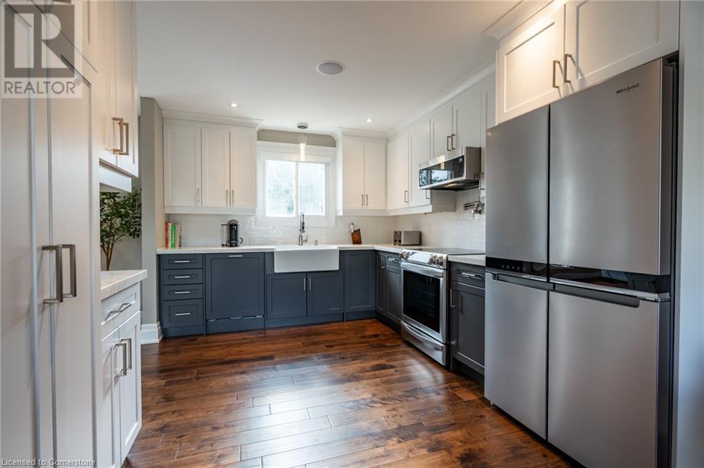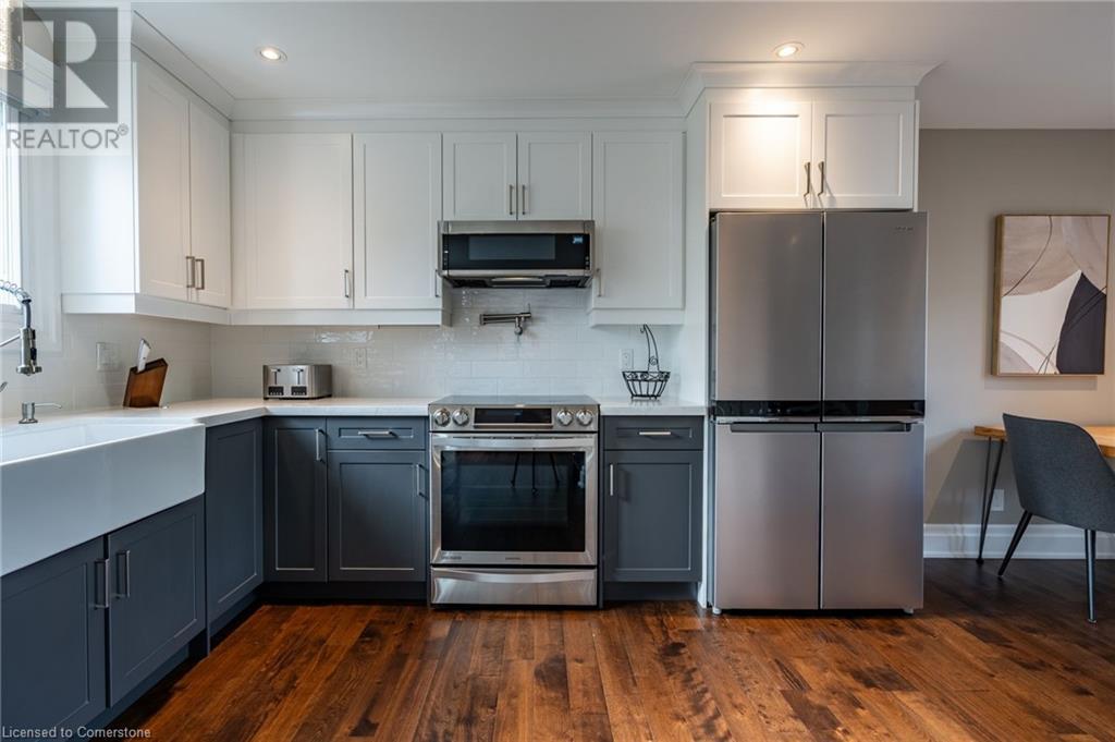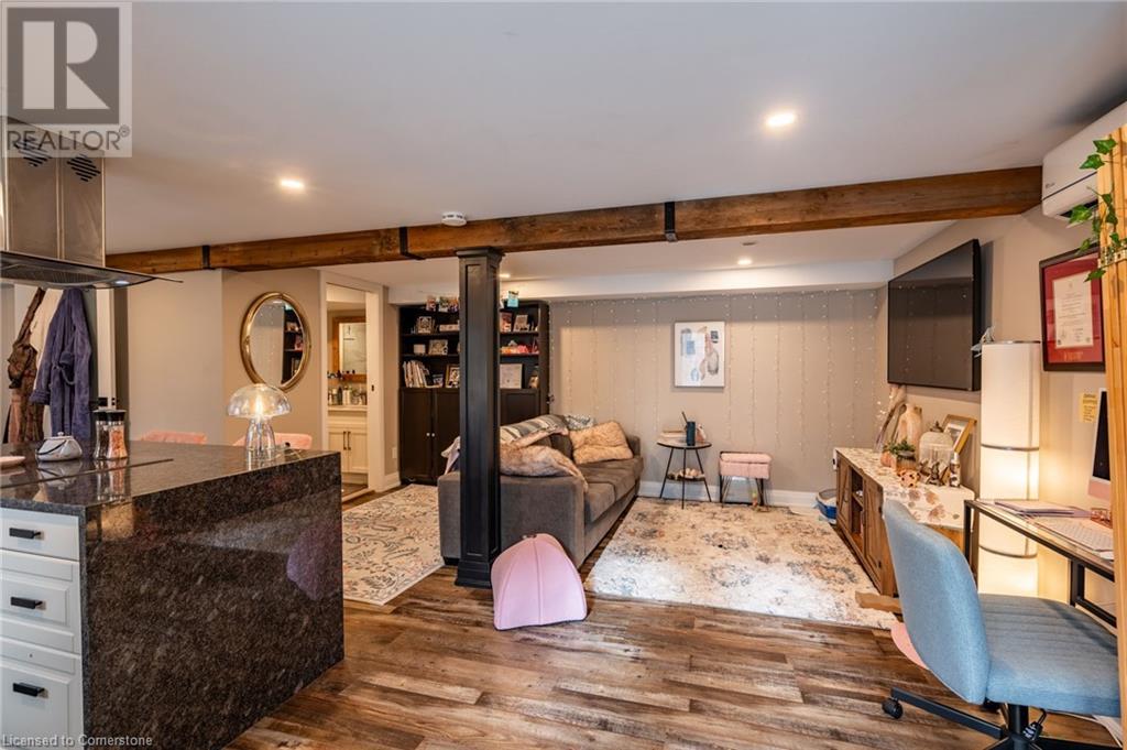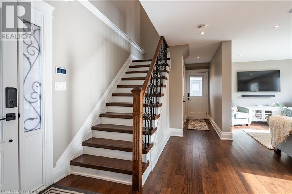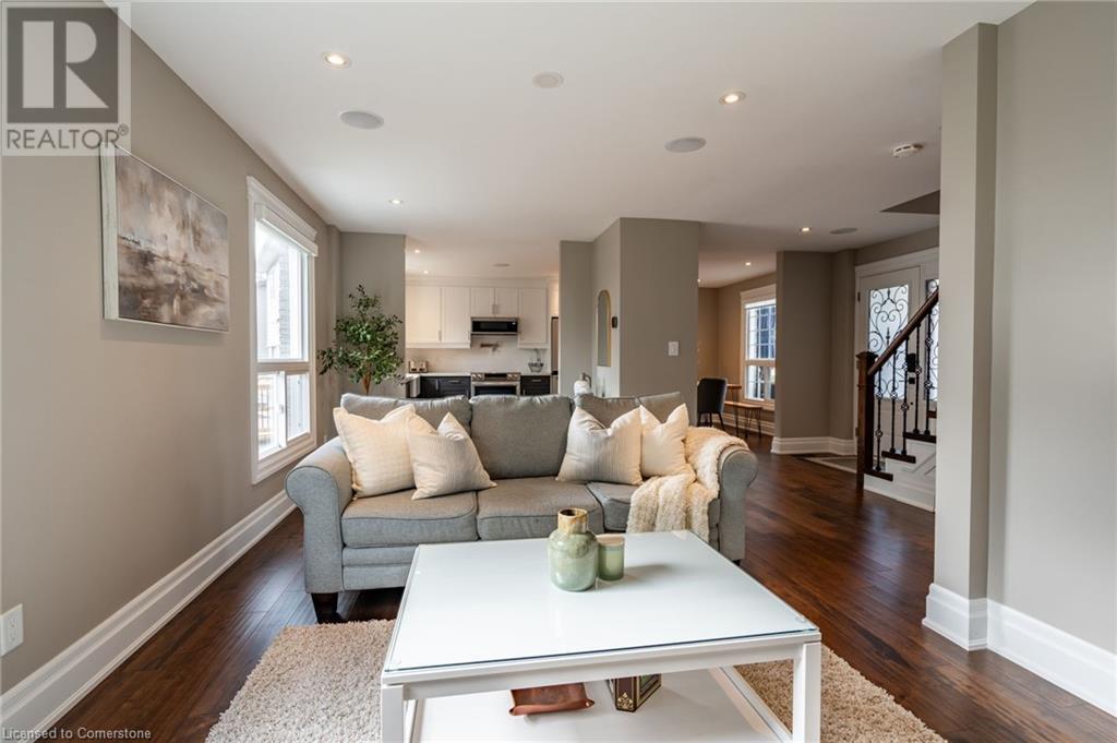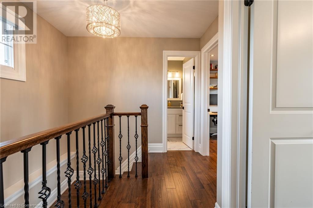 Nestled in the desirable Brant Hills neighbourhood, this fabulous home features 3+1 bedrooms, 2+1 bathrooms, 2 kitchens, and extensive valuable upgrades throughout! Designed with quality craftsmanship, solid hardwood maple flooring, and clever features such as a ceiling speaker system with Alexa voice control, smart-controlled lighting, window coverings, and more. Elevated curb appeal and an oversized porch welcome you into the front foyer. The gourmet eat-in kitchen is beautifully equipped with two-tone cabinetry, quartz countertops, a pot filler and stainless steel appliances. The bright living room is the perfect spot for relaxing and features large windows overlooking the backyard. Completing the main level is in-suite laundry, a powder room and access to the side yard. The second level features the private primary suite with gorgeous built-in closets, two additional bedrooms, and a spa-like 4-piece bathroom with a heated towel rack. Fully renovated, the lower level is accessed through French doors, allowing a great amount of natural light to flow in. The modern kitchen boasts ample cabinetry, stainless steel appliances and a large centre island. This suite also includes a spacious living room, a bedroom with ample closet space, and a 3-piece bathroom complete with in-suite laundry. Offering plenty of surprises, including a full irrigation system, hidden storage underneath the stairs, a fully insulated double garage, a retractable hose central vacuum system….the list goes on. This home is a must-see! Situated near the breathtaking Escarpment, renowned golf courses, scenic parks and trails, with convenient access to the QEW, 407, Highway 5, and more! (id:55009)