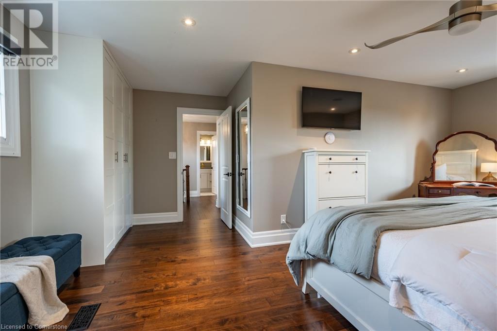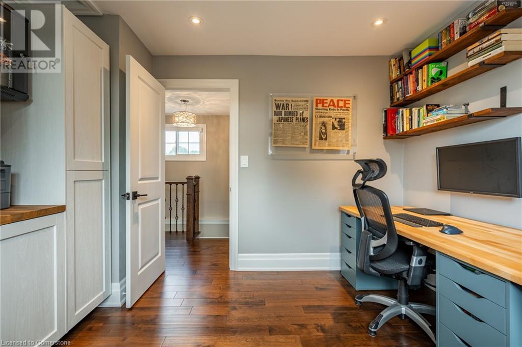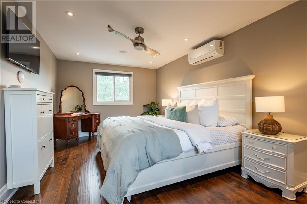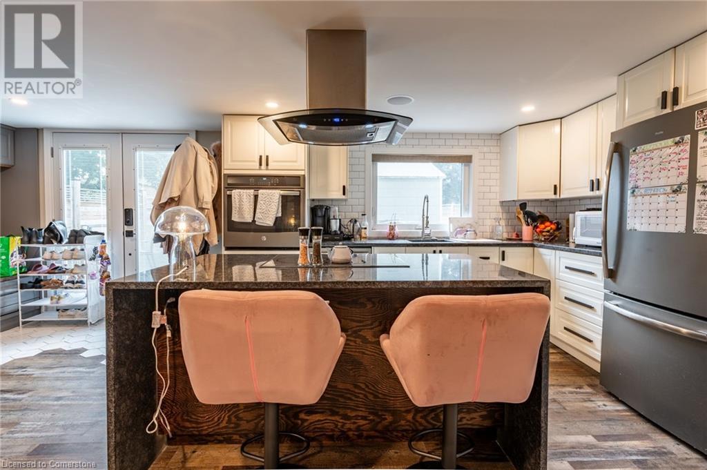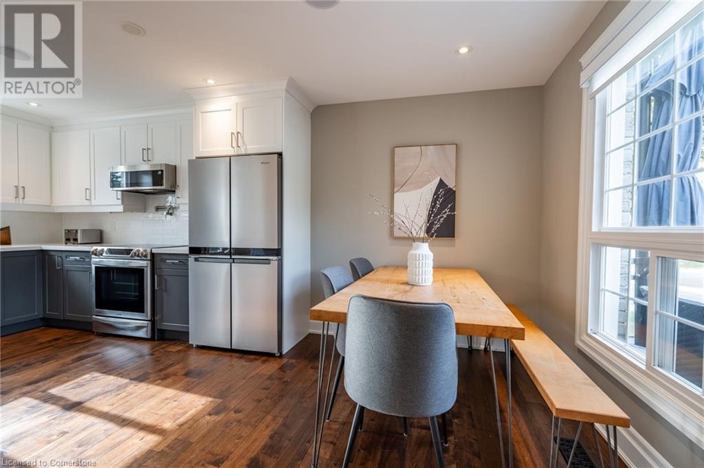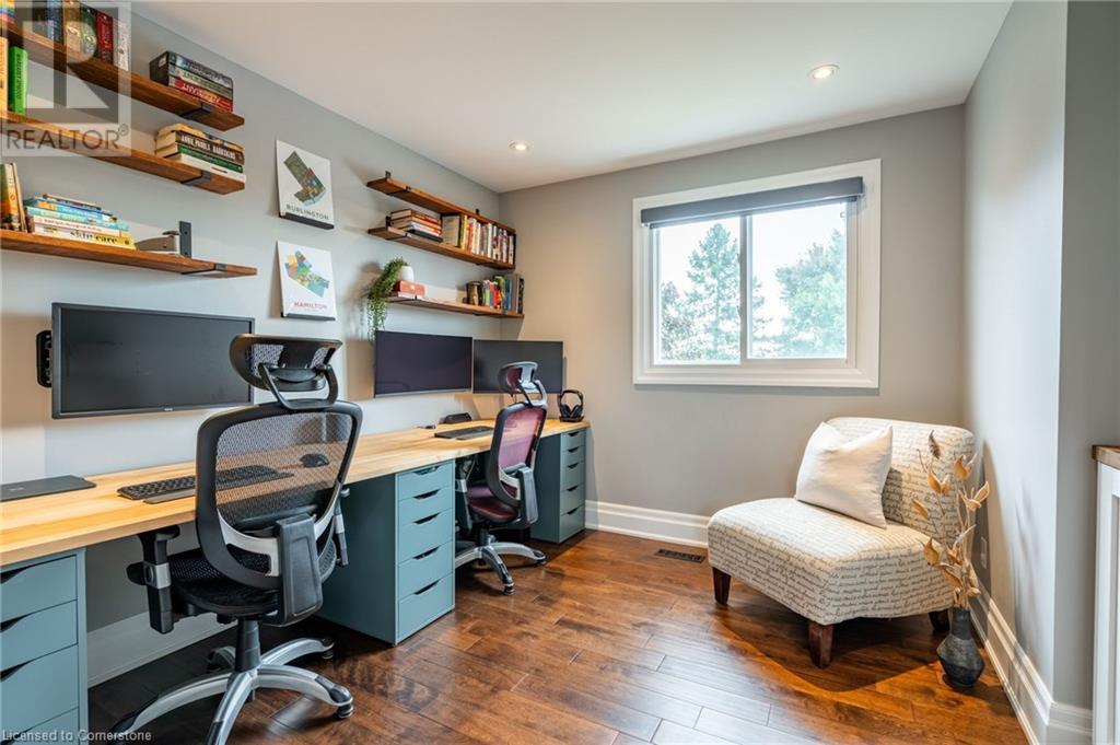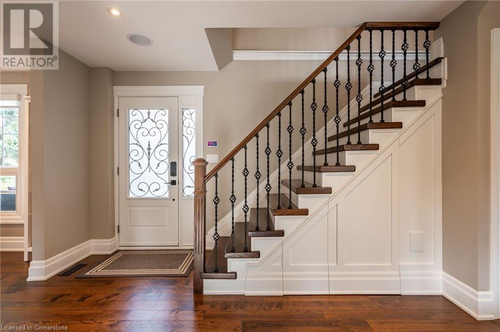 Nestled in the desirable Brant Hills neighbourhood, this fabulous home features 3+1 bedrooms, 2+1 bathrooms, 2 kitchens, and extensive valuable upgrades throughout! Designed with quality craftsmanship, solid hardwood maple flooring, and clever features such as a ceiling speaker system with Alexa voice control, smart-controlled lighting, window coverings, and more. Elevated curb appeal and an oversized porch welcome you into the front foyer. The gourmet eat-in kitchen is beautifully equipped with two-tone cabinetry, quartz countertops, a pot filler and stainless steel appliances. The bright living room is the perfect spot for relaxing and features large windows overlooking the backyard. Completing the main level is in-suite laundry, a powder room and access to the side yard. The second level features the private primary suite with gorgeous built-in closets, two additional bedrooms, and a spa-like 4-piece bathroom with a heated towel rack. Fully renovated, the lower level is accessed through French doors, allowing a great amount of natural light to flow in. The modern kitchen boasts ample cabinetry, stainless steel appliances and a large centre island. This suite also includes a spacious living room, a bedroom with ample closet space, and a 3-piece bathroom complete with in-suite laundry. Offering plenty of surprises, including a full irrigation system, hidden storage underneath the stairs, a fully insulated double garage, a retractable hose central vacuum system….the list goes on. This home is a must-see! Situated near the breathtaking Escarpment, renowned golf courses, scenic parks and trails, with convenient access to the QEW, 407, Highway 5, and more! (id:55009)