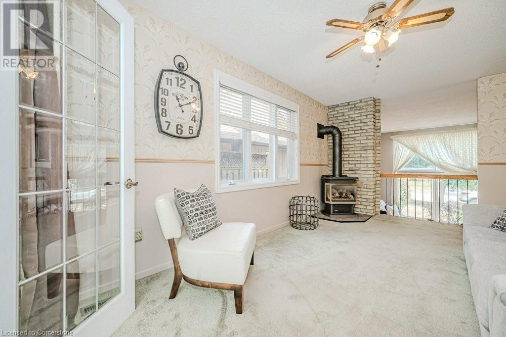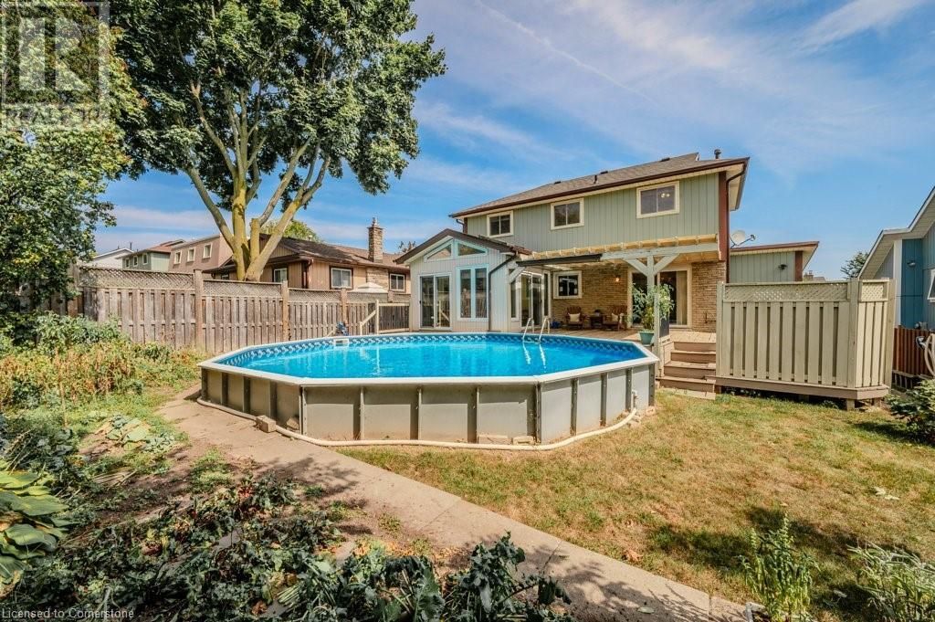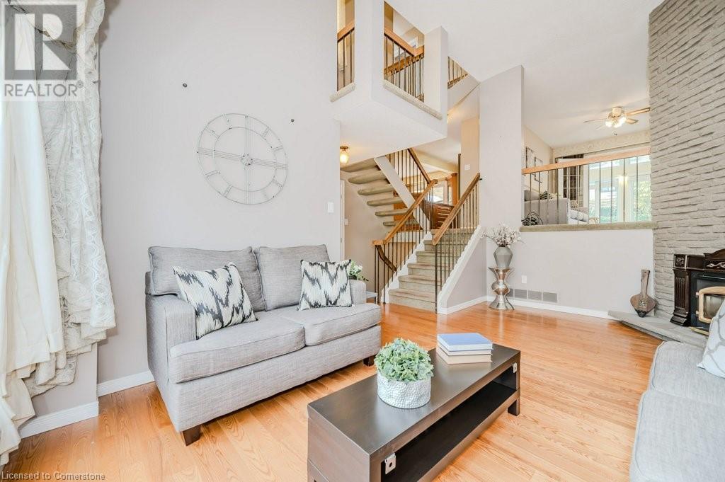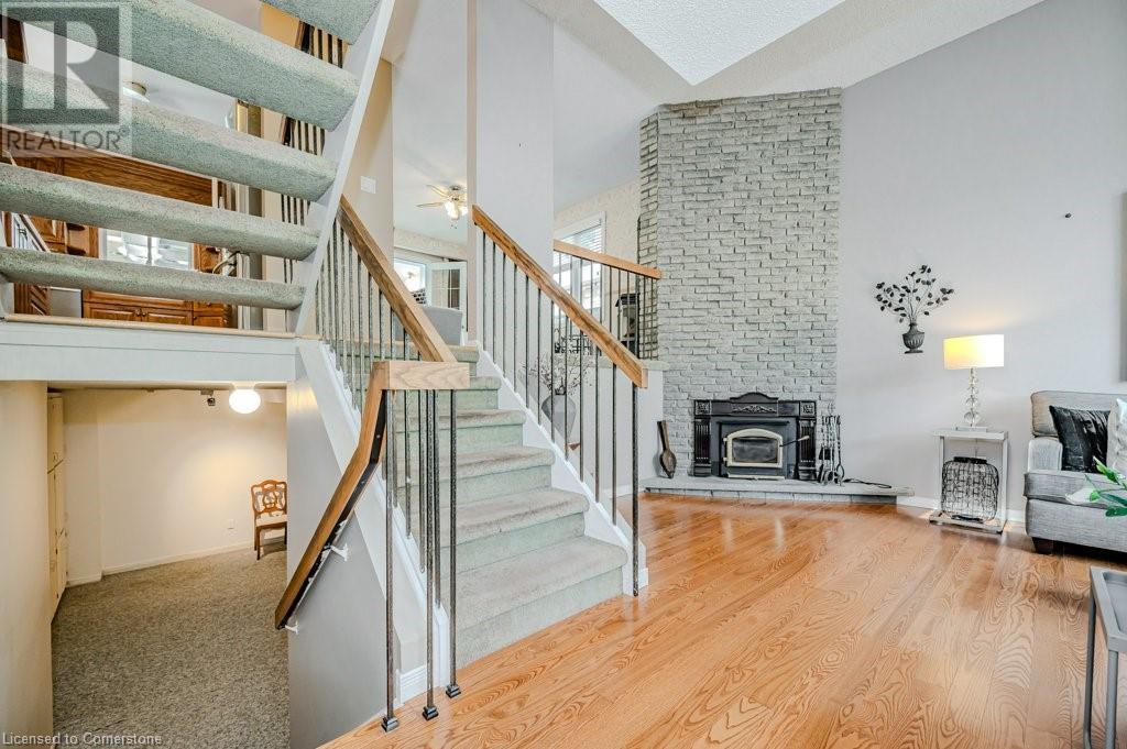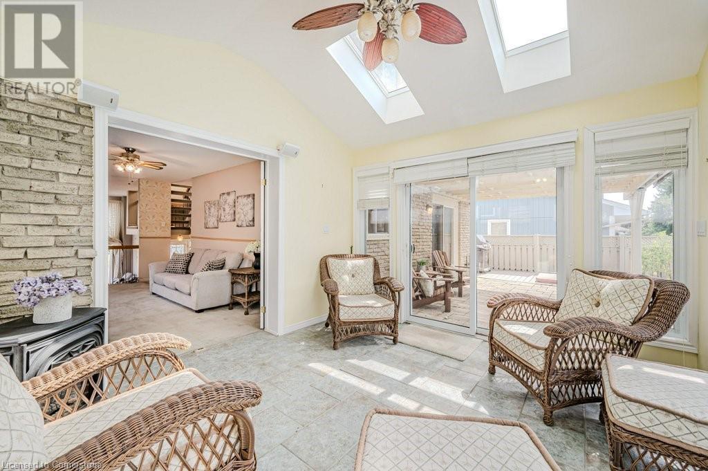 This well loved Brant Hills home is ready to make new memories! Unique multi-level layout is perfect for a variety of family lifestyles. The bright front foyer welcomes you to the main floor with oversized hall closet, Living room with vaulted ceilings, wood burning fireplace and floor to ceiling windows. The next level up features a family-sized Kitchen with separate dining area complete with built-in cabinetry and a centre island. Patio doors off the dining area lead to the private back deck and bbq area. The separate Family room with gas fireplace opens up to a fabulous year round Sunroom with freestanding gas stove, skylights, and double patio doors leading to the deck and yard. The upper level features 4 spacious bedrooms and two full Bathrooms. The Primary bedroom with it’s own private 3 piece ensuite includes a walk-in closet with built in cabinets and shelving. All bedrooms feature hardwood flooring. The lower level of the home has a finished Rec Room with its own gas fireplace and plenty of storage space. Outside you’ll find a backyard with spacious deck leading to an on-ground pool perfect for summer enjoyment with additional play space. Located close to schools, highways and shopping this home is ready for it’s new family. (id:55009)
