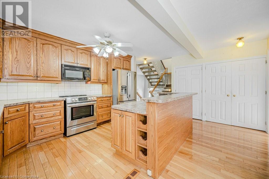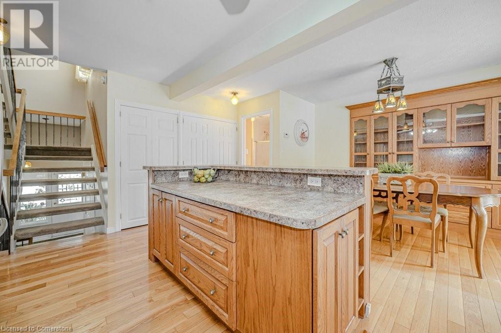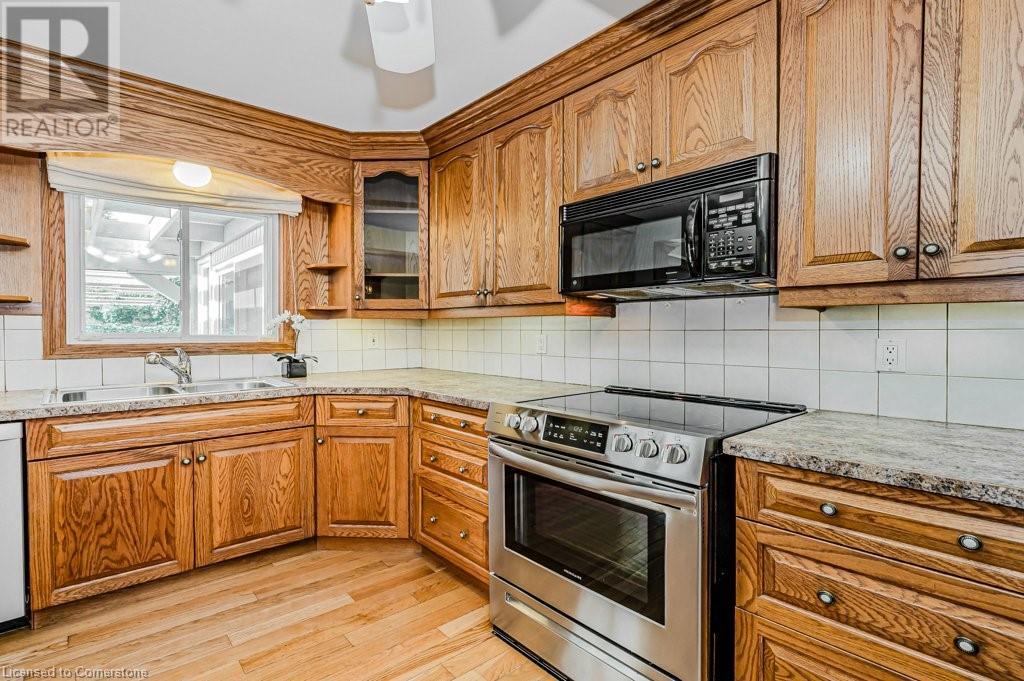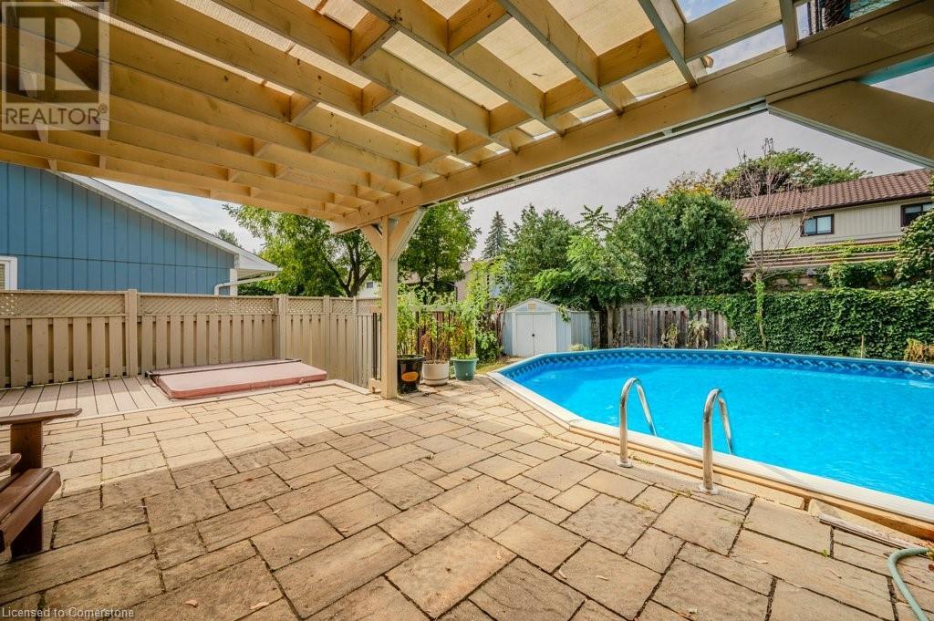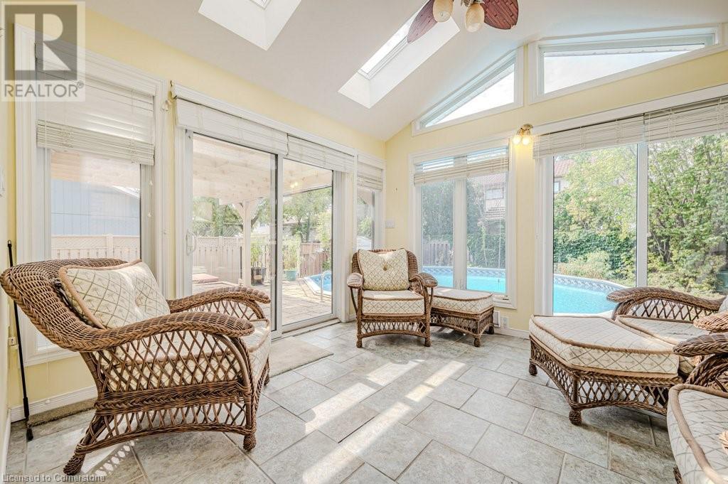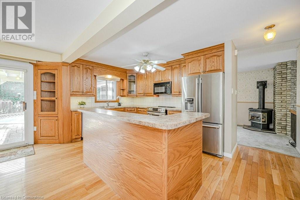 This well loved Brant Hills home is ready to make new memories! Unique multi-level layout is perfect for a variety of family lifestyles. The bright front foyer welcomes you to the main floor with oversized hall closet, Living room with vaulted ceilings, wood burning fireplace and floor to ceiling windows. The next level up features a family-sized Kitchen with separate dining area complete with built-in cabinetry and a centre island. Patio doors off the dining area lead to the private back deck and bbq area. The separate Family room with gas fireplace opens up to a fabulous year round Sunroom with freestanding gas stove, skylights, and double patio doors leading to the deck and yard. The upper level features 4 spacious bedrooms and two full Bathrooms. The Primary bedroom with it’s own private 3 piece ensuite includes a walk-in closet with built in cabinets and shelving. All bedrooms feature hardwood flooring. The lower level of the home has a finished Rec Room with its own gas fireplace and plenty of storage space. Outside you’ll find a backyard with spacious deck leading to an on-ground pool perfect for summer enjoyment with additional play space. Located close to schools, highways and shopping this home is ready for it’s new family. (id:55009)