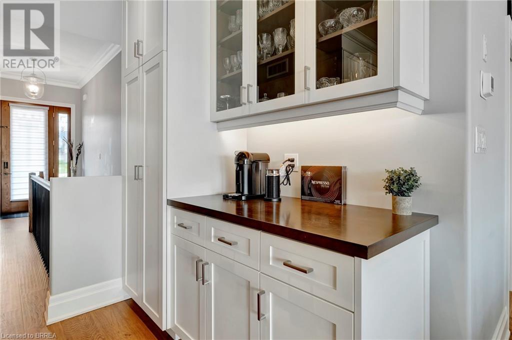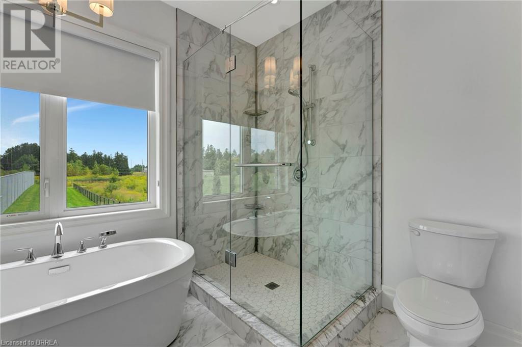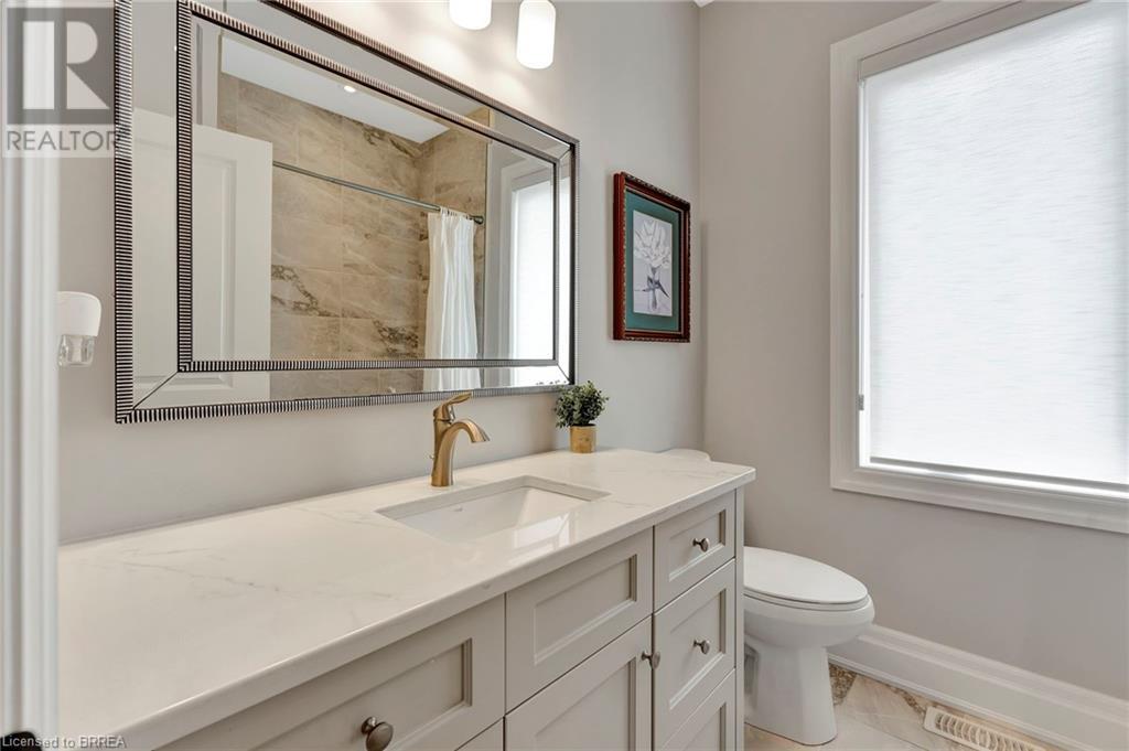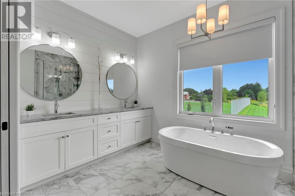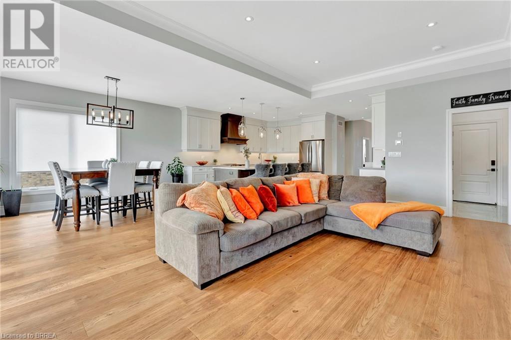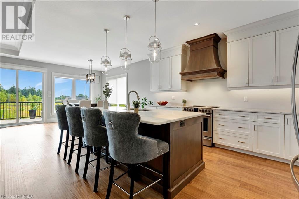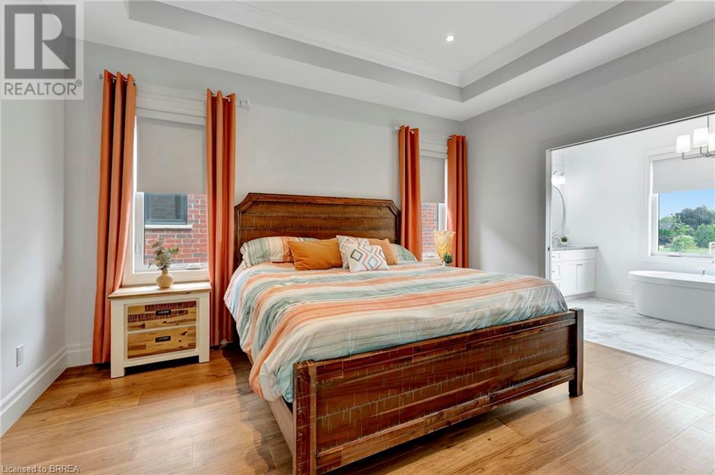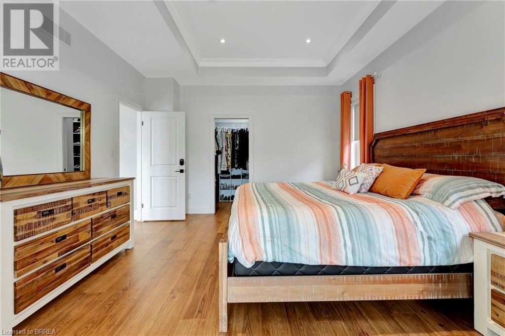 Welcome to 24 Whiting Drive in the picturesque town of Paris, ON. Immerse yourself in a sophisticated neighborhood designed for upscale family living. This meticulously crafted home seamlessly blends contemporary design with opulent comfort. Every detail has been thoughtfully attended to in this immaculate property, featuring multiple elegant upgrades such as gleaming hardwood floors, dazzling pot lights, exquisite crown molding, stunning tray ceilings, and two impressive stone-surround gas fireplaces. Step inside this turnkey dream home to discover a light and airy open-concept kitchen, dining area, and living room that make entertaining a delight. The custom kitchen showcases luxurious quartz countertops, stylish shaker-style cabinetry, ambient undermount lighting, a large central island, a custom coffee bar, and high-end stainless steel appliances. The main level primary bedroom offers a serene oasis with a spacious walk-in closet and a spa-like ensuite bathroom, complete with dual vanities, a sleek glass shower, and a sumptuous free-standing soaker tub. The beautifully finished lower level provides an expansive living and entertainment area, featuring a stone-surround gas fireplace, pot lights, 9-foot ceilings, cold room, three additional bedrooms, and an elegant four-piece bathroom. The exterior of this home is equally impressive, offering two separate graceful walk-outs to the backyard—one from the dining area leading to a raised deck with a picturesque park view, and a secondary walk-out from the lower level family room leading to a cozy covered patio where you can enjoy tranquil morning sunrises or relaxing shade in the afternoon. This residence is truly a sanctuary, harmoniously combining luxury and an ideal location for relaxation and entertainment. With convenient access to Highway 403, downtown, shopping, schools, and parks, this property offers the perfect blend of serenity and practicality. Don’t miss your chance to make this exquisite home yours. (id:55009)