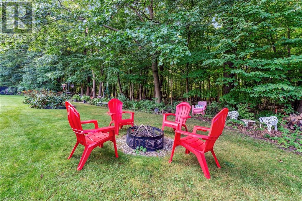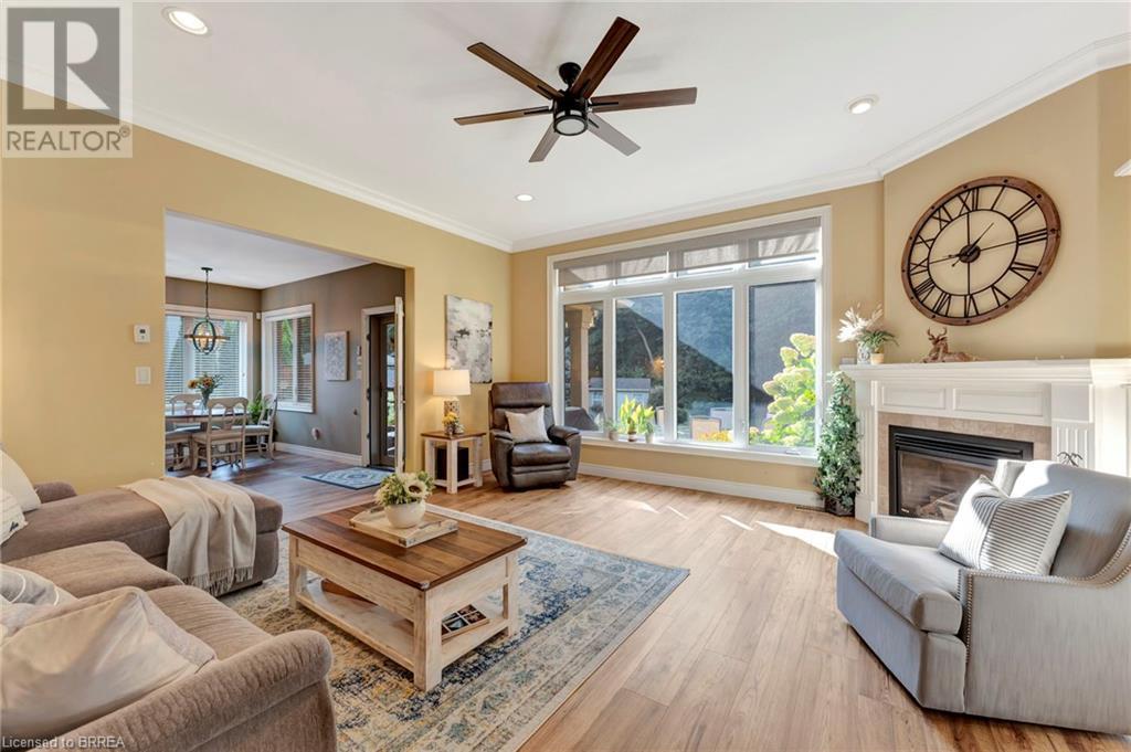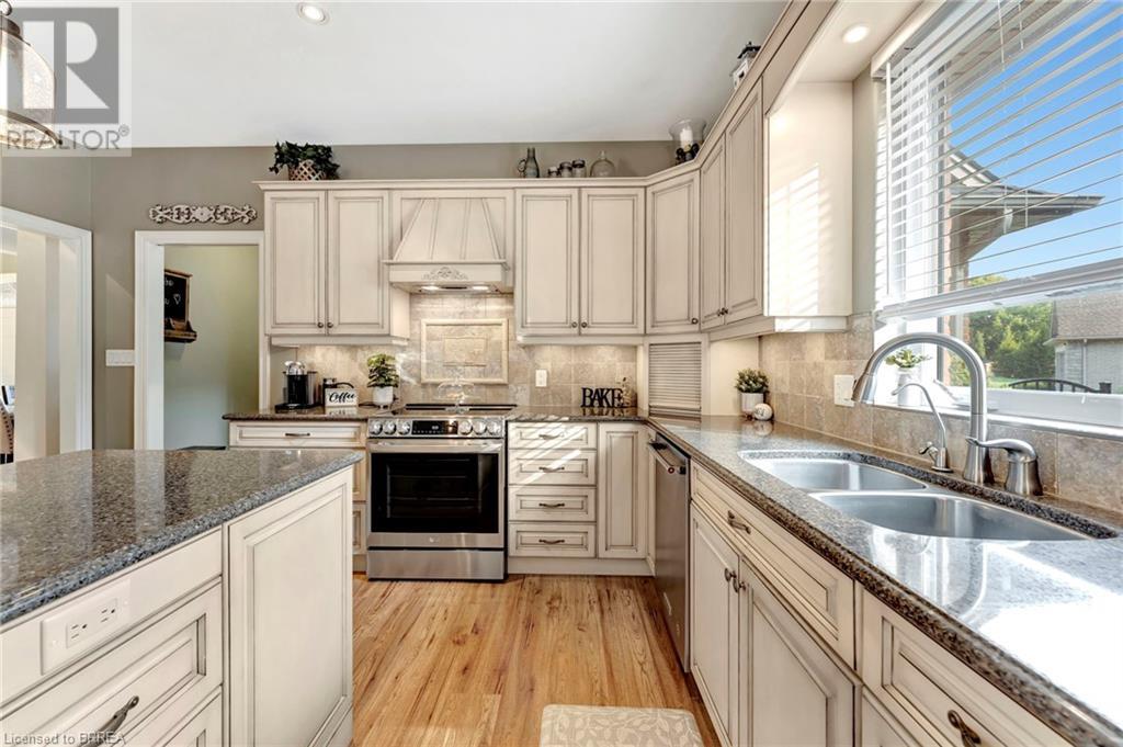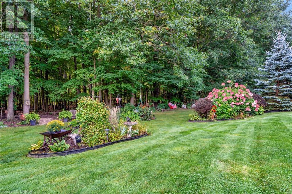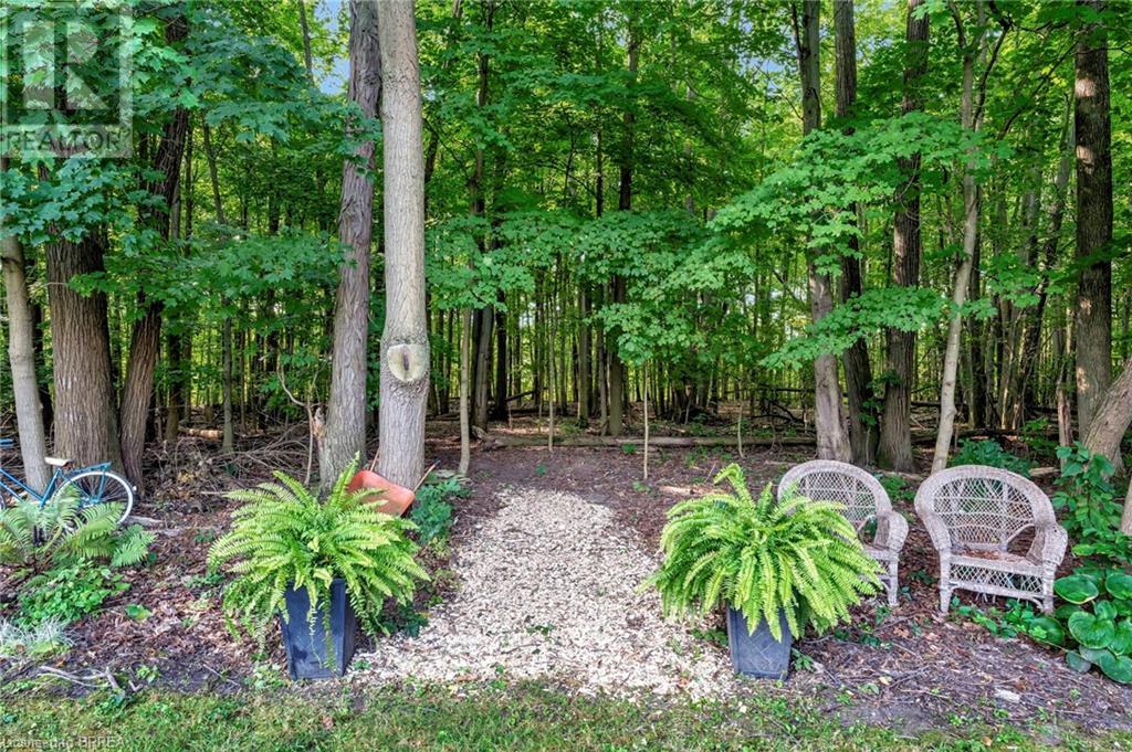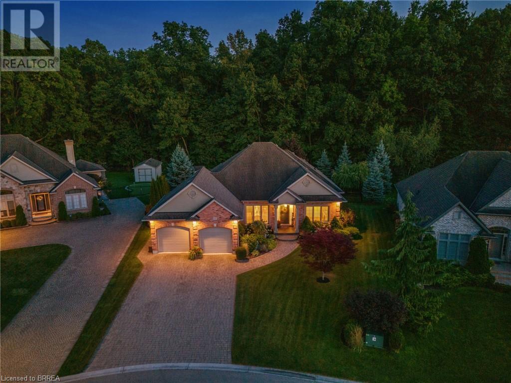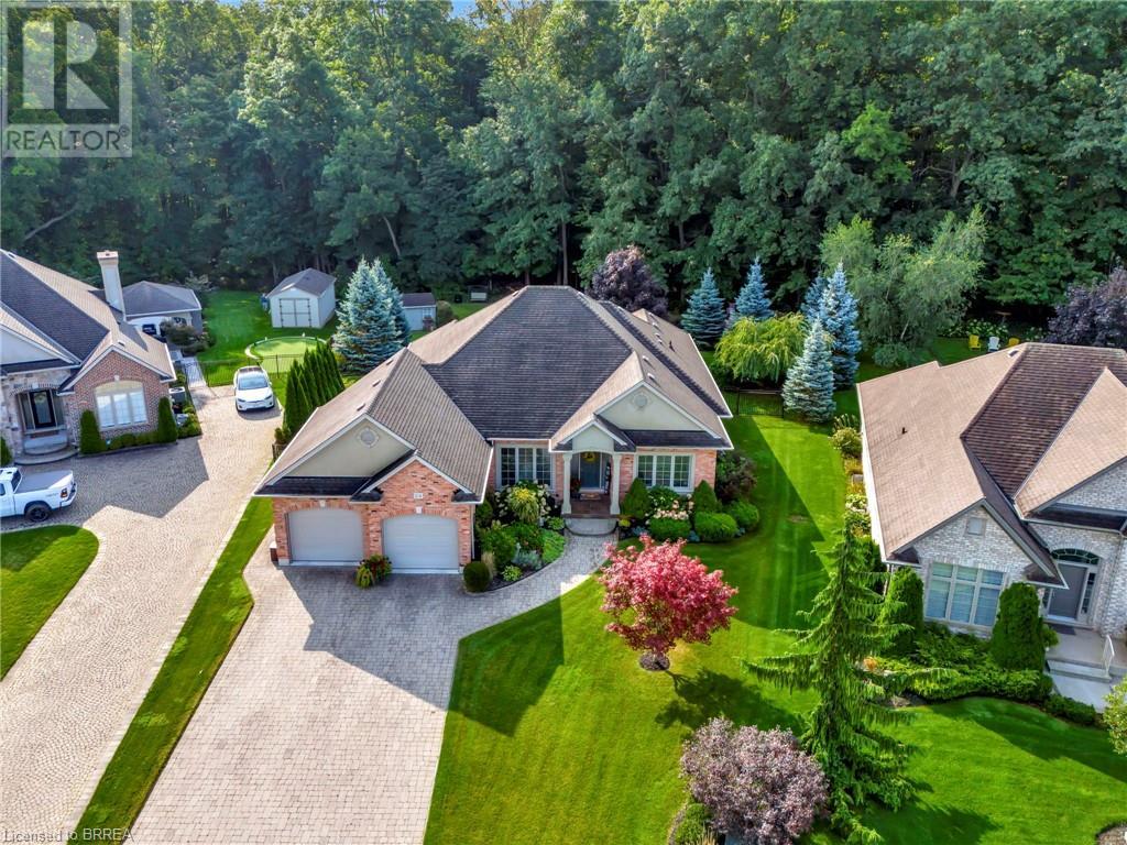 Exquisite Bungalow on an Expansive Lot with a Tranquil, Muskoka-Like Setting! Welcome to this exceptional bungalow, nestled on a generously extended lot with an additional 66 feet into the forest, with no rear neighbors and a serene wooded backdrop. This well maintained property showcases unparalleled attention to detail, complemented by a 7-zone sprinkler system that keeps the lush, green surroundings vibrant. You will be captivated by the stunning curb appeal, featuring an interlocking drive and a beautifully landscaped pathway that gracefully wraps around the property. Step inside to a grand, open-concept foyer with high ceilings and striking details including elegant crown moldings and upgraded fixtures. An tasteful color palette flows throughout, from the dining area into the main living space, where a cozy gas fireplace serves as a focal point, framing the views of the tree-lined gardens. The kitchen boasts granite countertops, a coordinating backsplash, ample storage, newer appliances (fridge, stove, microwave 2021) (washer & dryer 2023) and walk-out access. The covered patio is the perfect setting for alfresco dining & outdoor entertaining. The primary suite features a spa-like 4pc ensuite with a beautifully tiled, glass-enclosed shower and a double vanity, while the 2nd main floor bedroom offers space for family, guests, or a sophisticated home office. The partially finished lower level presents a spacious recreation room, 2 further bedrooms, and a full bathroom, for added versatility. Outside, the landscaped gardens are filled with mature perennials and shaded by towering trees, with a charming pathway that invites you to explore the surrounding natural beauty. Unwind on the covered patio beneath the retractable awning, providing refreshing shade on warm days, or host gatherings with the convenience of a natural gas hookup for your BBQ. Don’t miss your chance to own a peaceful and picturesque home with the finest finishes and details. (id:55009)