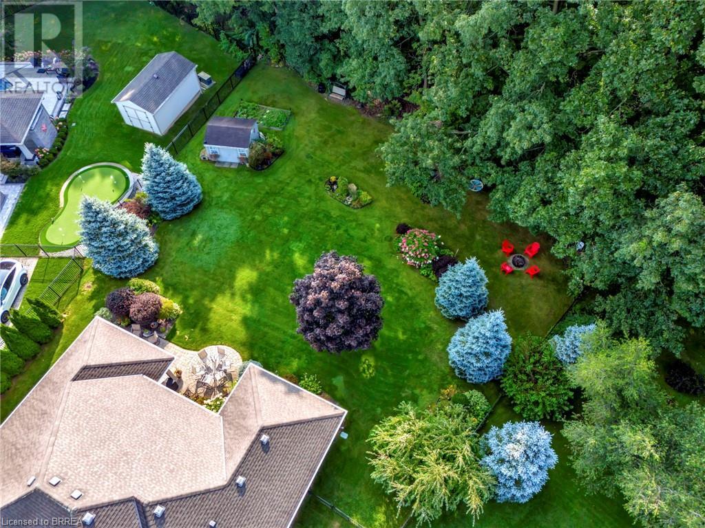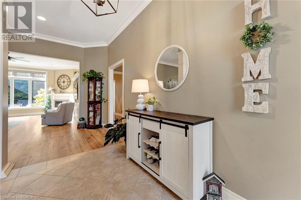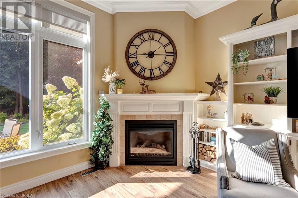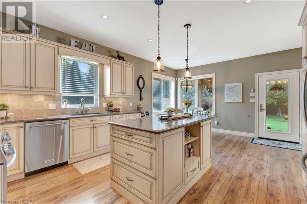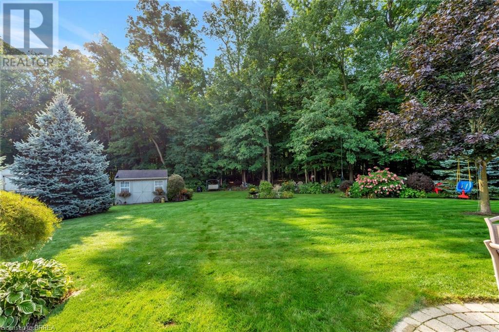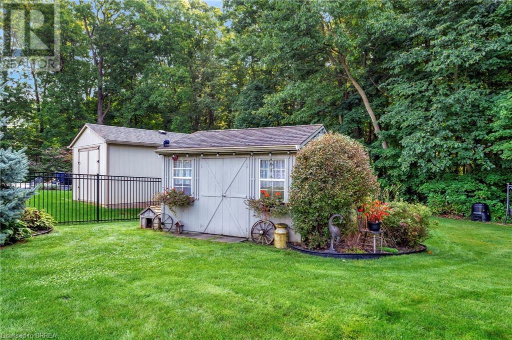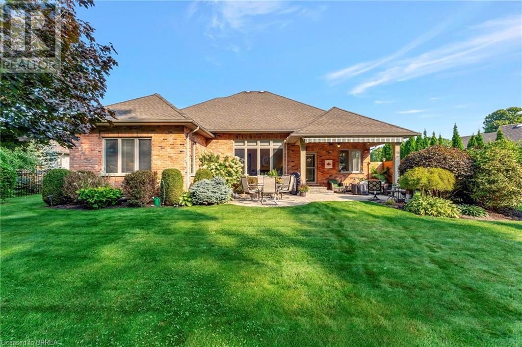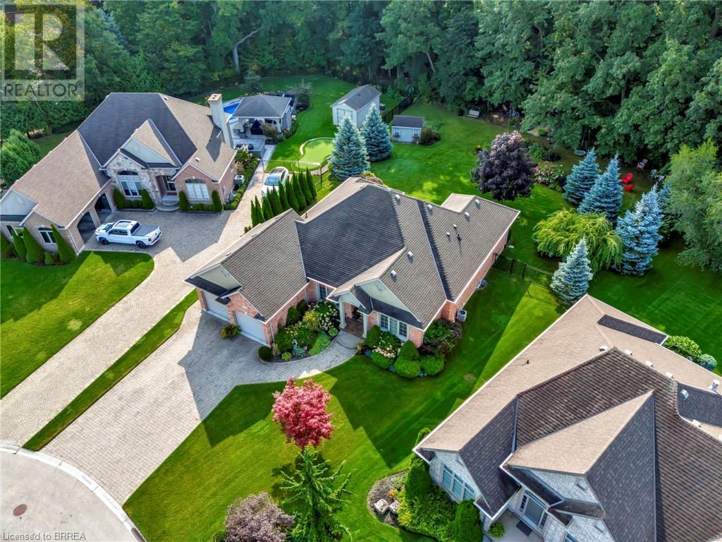 Exquisite Bungalow on an Expansive Lot with a Tranquil, Muskoka-Like Setting! Welcome to this exceptional bungalow, nestled on a generously extended lot with an additional 66 feet into the forest, with no rear neighbors and a serene wooded backdrop. This well maintained property showcases unparalleled attention to detail, complemented by a 7-zone sprinkler system that keeps the lush, green surroundings vibrant. You will be captivated by the stunning curb appeal, featuring an interlocking drive and a beautifully landscaped pathway that gracefully wraps around the property. Step inside to a grand, open-concept foyer with high ceilings and striking details including elegant crown moldings and upgraded fixtures. An tasteful color palette flows throughout, from the dining area into the main living space, where a cozy gas fireplace serves as a focal point, framing the views of the tree-lined gardens. The kitchen boasts granite countertops, a coordinating backsplash, ample storage, newer appliances (fridge, stove, microwave 2021) (washer & dryer 2023) and walk-out access. The covered patio is the perfect setting for alfresco dining & outdoor entertaining. The primary suite features a spa-like 4pc ensuite with a beautifully tiled, glass-enclosed shower and a double vanity, while the 2nd main floor bedroom offers space for family, guests, or a sophisticated home office. The partially finished lower level presents a spacious recreation room, 2 further bedrooms, and a full bathroom, for added versatility. Outside, the landscaped gardens are filled with mature perennials and shaded by towering trees, with a charming pathway that invites you to explore the surrounding natural beauty. Unwind on the covered patio beneath the retractable awning, providing refreshing shade on warm days, or host gatherings with the convenience of a natural gas hookup for your BBQ. Don’t miss your chance to own a peaceful and picturesque home with the finest finishes and details. (id:55009)