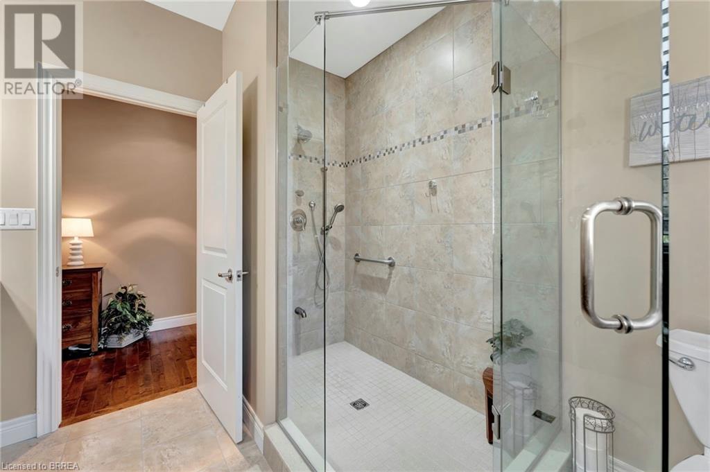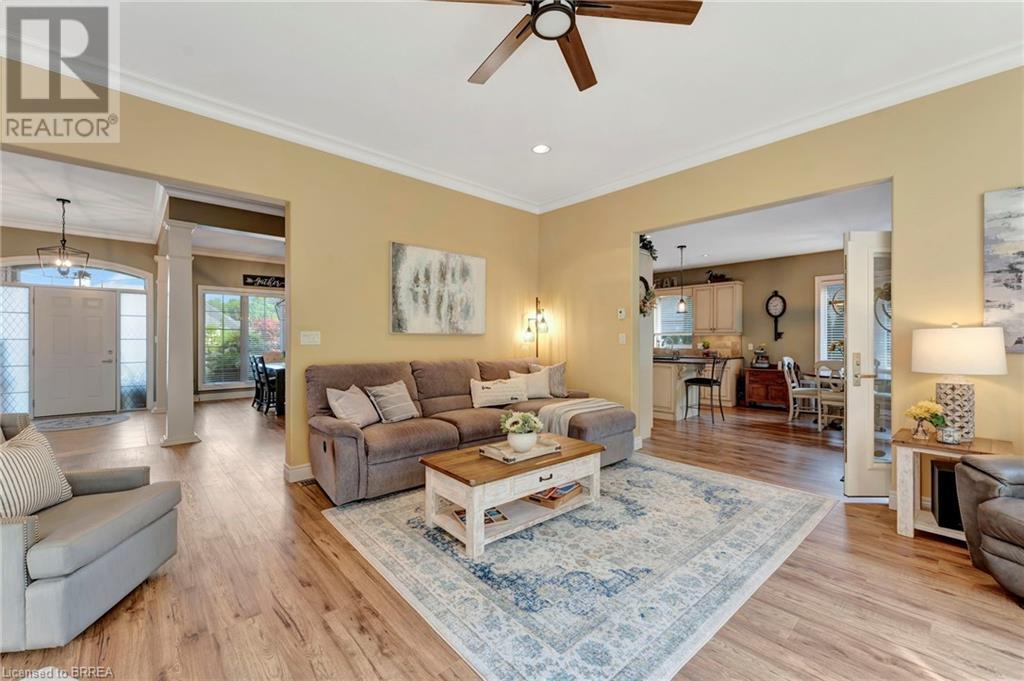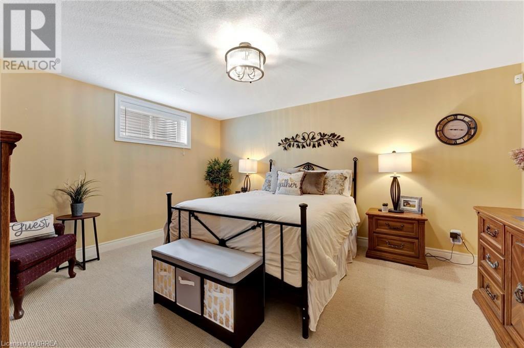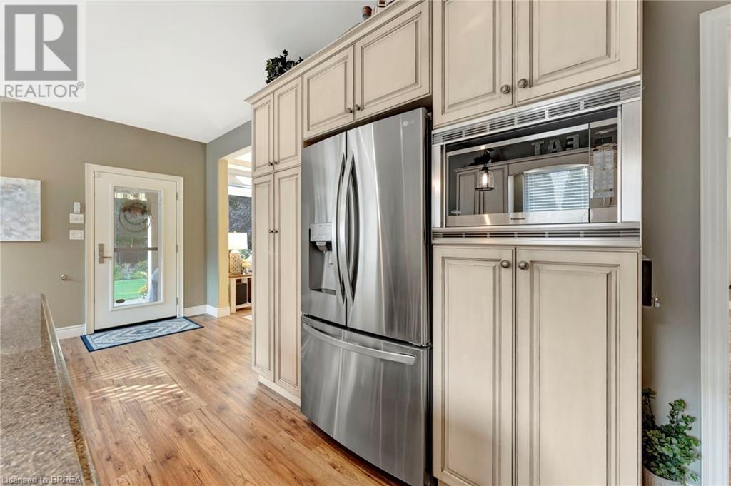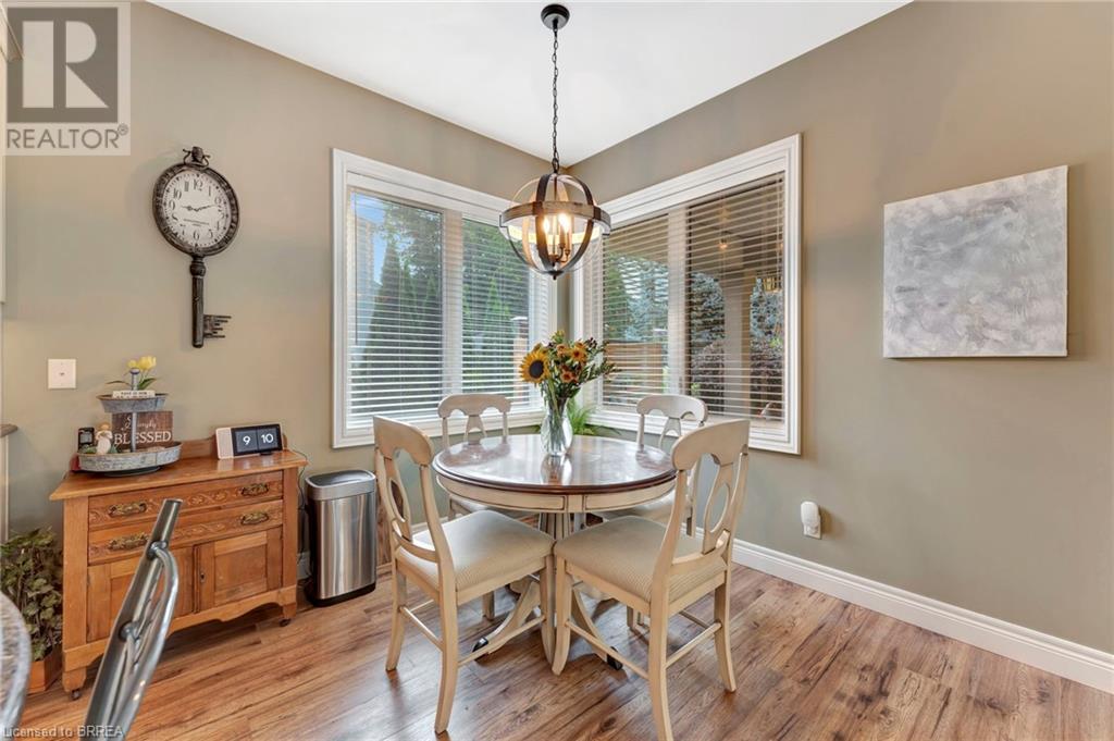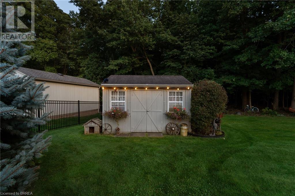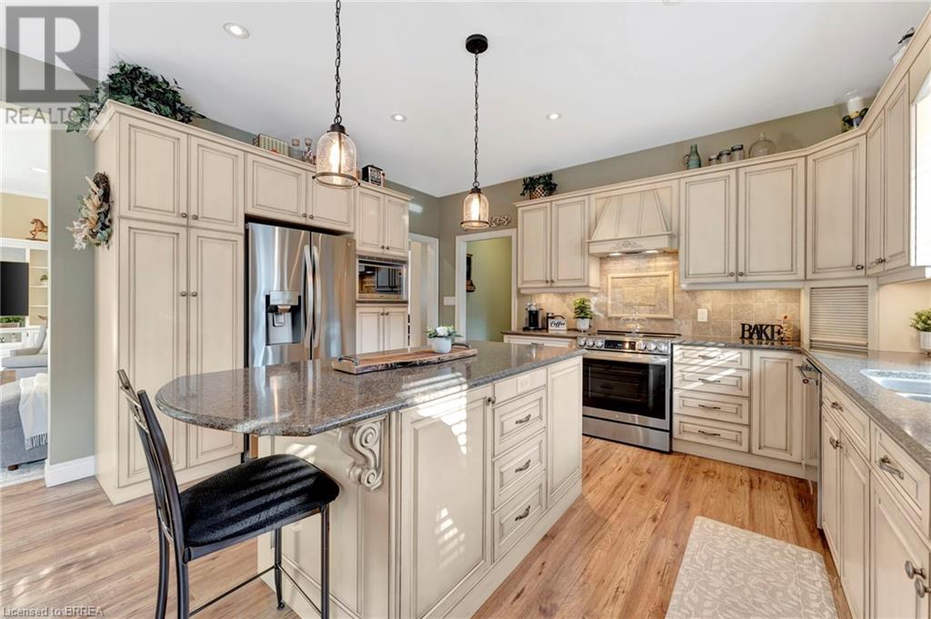 Exquisite Bungalow on an Expansive Lot with a Tranquil, Muskoka-Like Setting! Welcome to this exceptional bungalow, nestled on a generously extended lot with an additional 66 feet into the forest, with no rear neighbors and a serene wooded backdrop. This well maintained property showcases unparalleled attention to detail, complemented by a 7-zone sprinkler system that keeps the lush, green surroundings vibrant. You will be captivated by the stunning curb appeal, featuring an interlocking drive and a beautifully landscaped pathway that gracefully wraps around the property. Step inside to a grand, open-concept foyer with high ceilings and striking details including elegant crown moldings and upgraded fixtures. An tasteful color palette flows throughout, from the dining area into the main living space, where a cozy gas fireplace serves as a focal point, framing the views of the tree-lined gardens. The kitchen boasts granite countertops, a coordinating backsplash, ample storage, newer appliances (fridge, stove, microwave 2021) (washer & dryer 2023) and walk-out access. The covered patio is the perfect setting for alfresco dining & outdoor entertaining. The primary suite features a spa-like 4pc ensuite with a beautifully tiled, glass-enclosed shower and a double vanity, while the 2nd main floor bedroom offers space for family, guests, or a sophisticated home office. The partially finished lower level presents a spacious recreation room, 2 further bedrooms, and a full bathroom, for added versatility. Outside, the landscaped gardens are filled with mature perennials and shaded by towering trees, with a charming pathway that invites you to explore the surrounding natural beauty. Unwind on the covered patio beneath the retractable awning, providing refreshing shade on warm days, or host gatherings with the convenience of a natural gas hookup for your BBQ. Don’t miss your chance to own a peaceful and picturesque home with the finest finishes and details. (id:55009)