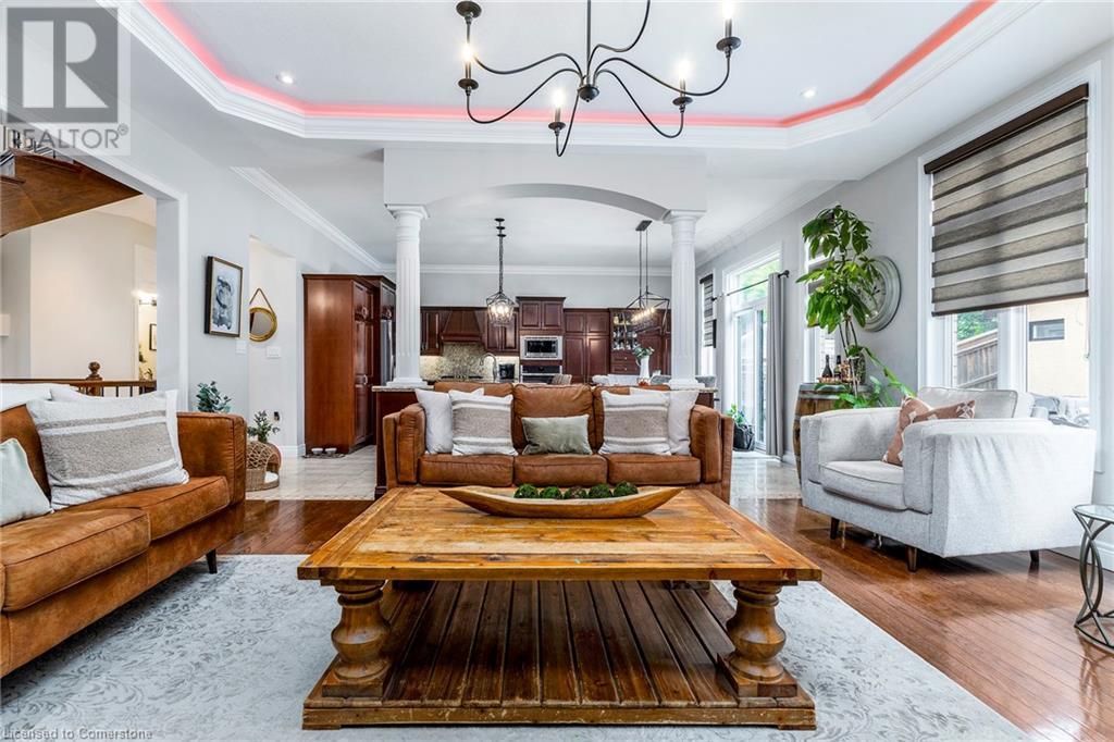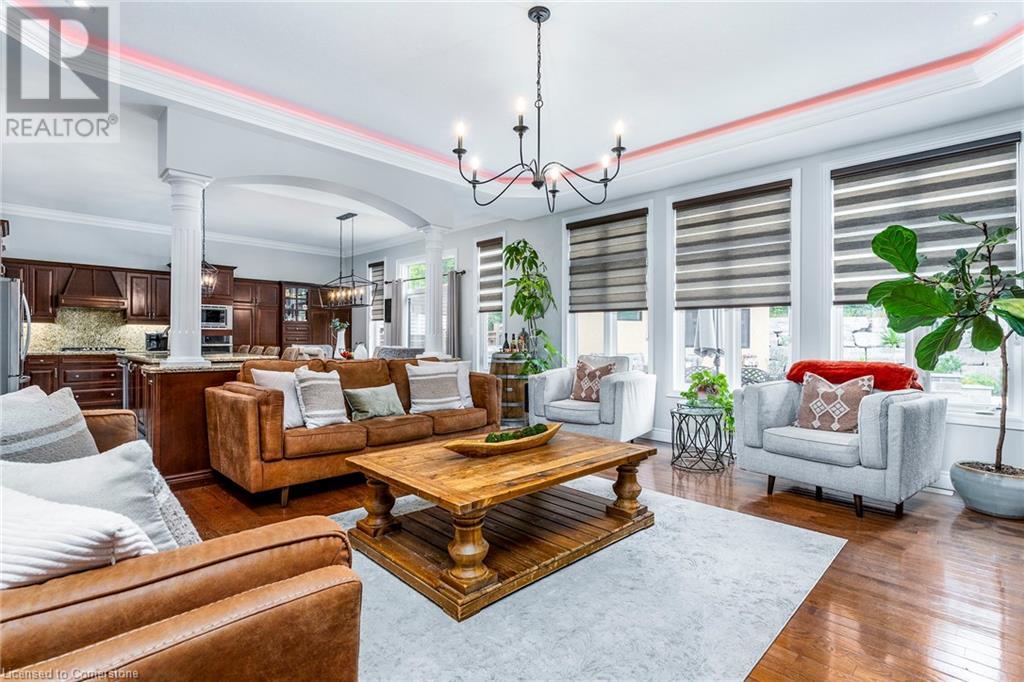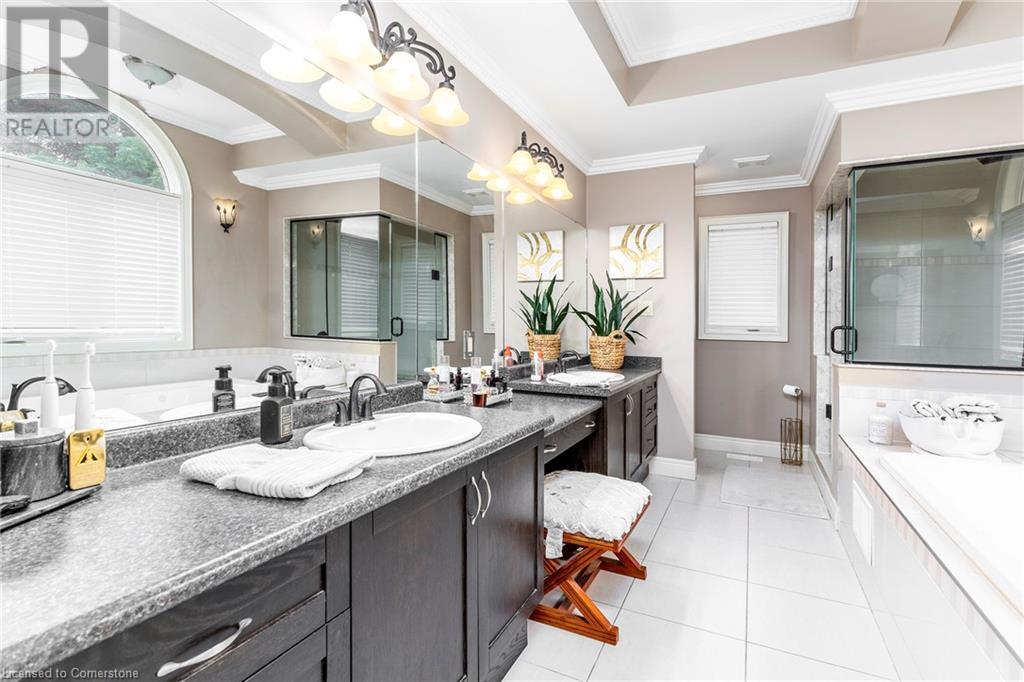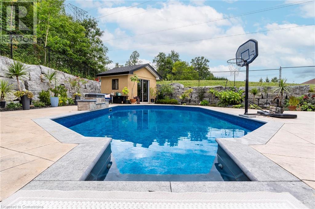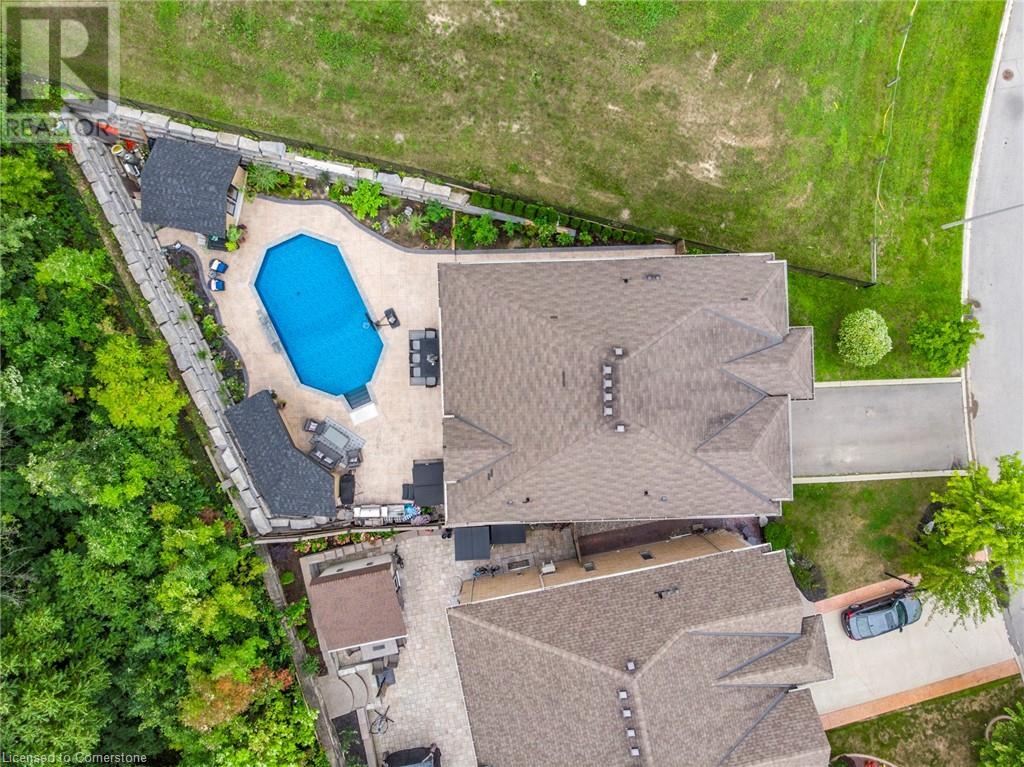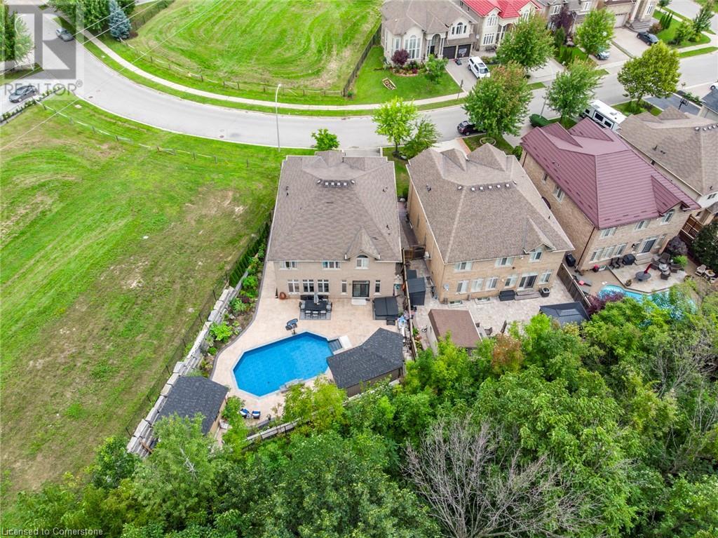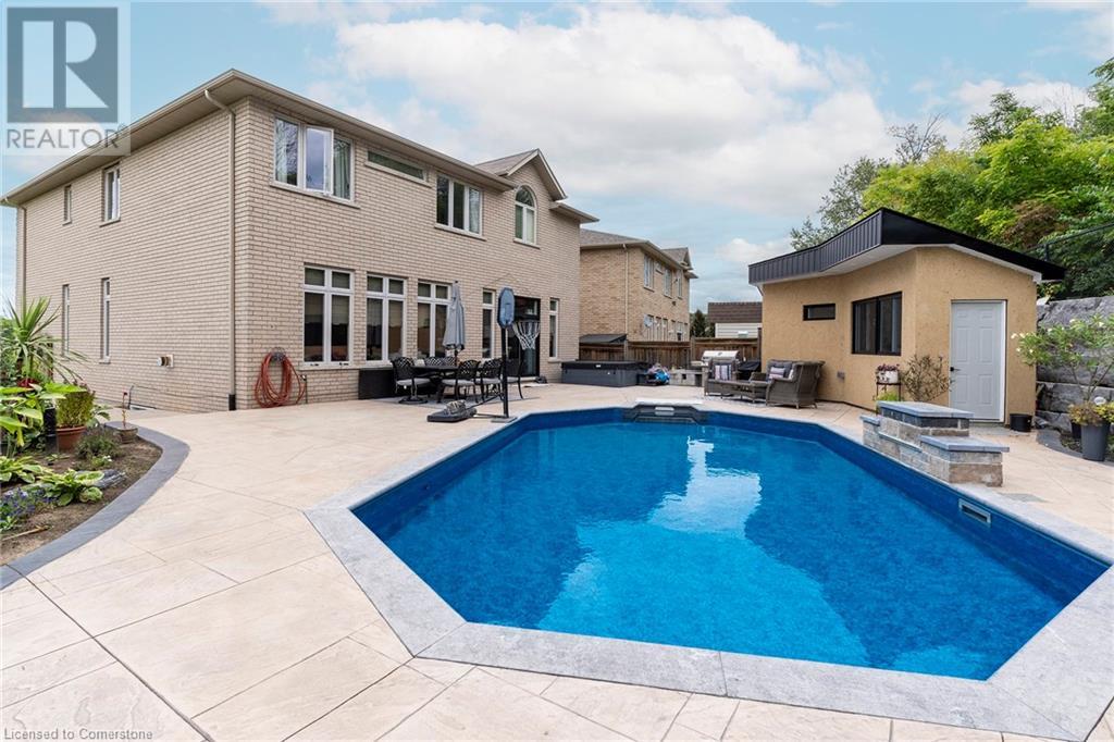Quality, Custom Built, 3524 sq ft, 4+1, 5 bath two storey home with finished bsmt. on a premium conservation lot with no rear or side neighbours. Built by Scarlett homes it features their noteworthy built in bookcases, custom millwork and cabinetry. Oversized windows and coffered ceilings, The 10 ft. ceilings and the open concept design bring a large-scale feeling to the main floor with warm features of gas fireplaces and lots of window light. Open entrance and spiral staircase with wrought iron spindles accompany a living and dining room, large custom kitchen with island and large eating area overlooking the newly landscaped backyard oasis. The family room next to the kitchen allows for great entertaining and flow. Both overlook the newly landscaped back yard oasis. Featuring not only a heated salt water inground pool but also a secondary pool building with bath and shower features. Everything done with high quality, design and care. MUST SEE!! (id:55009)
