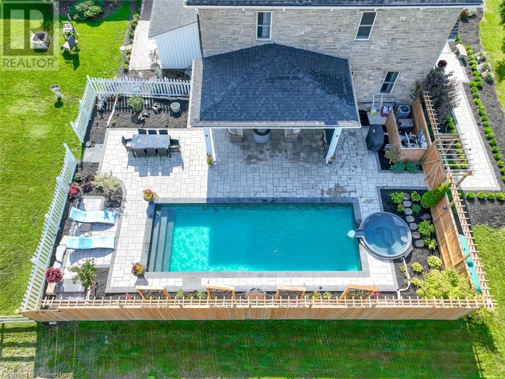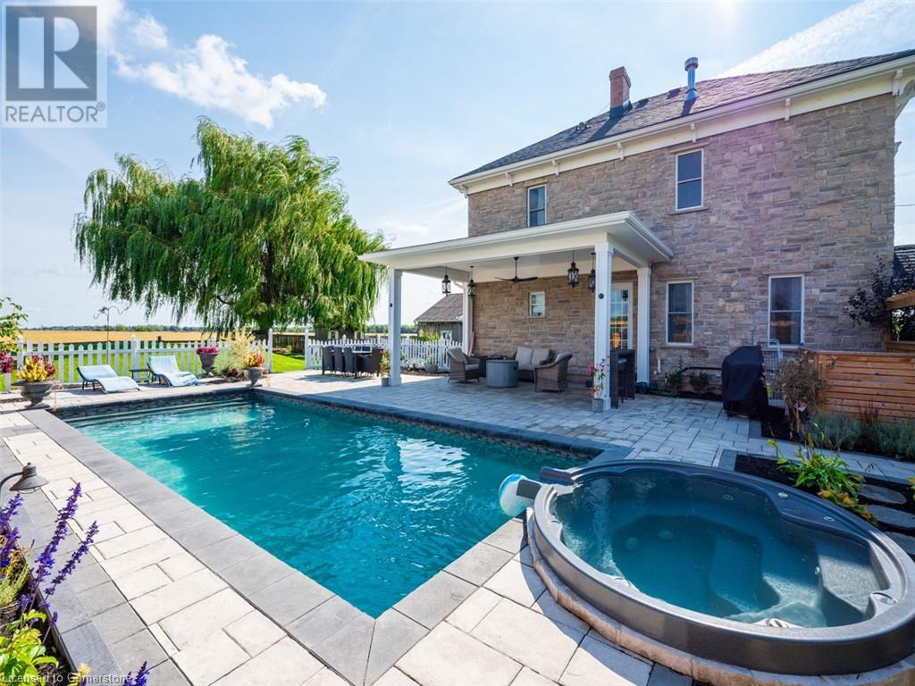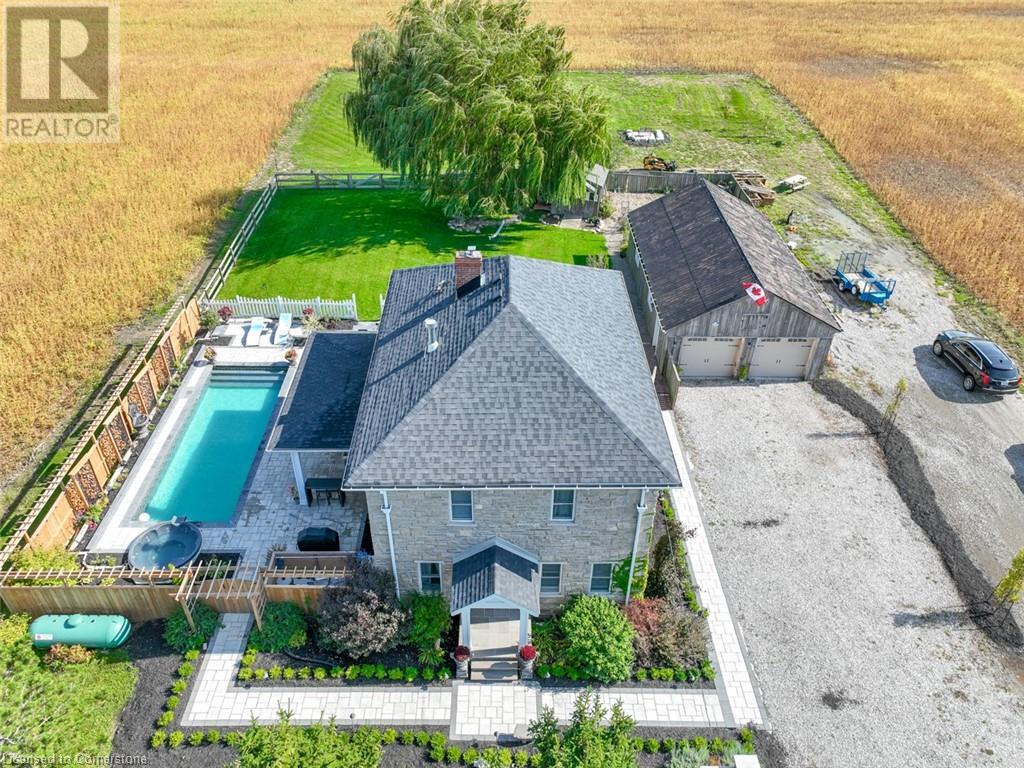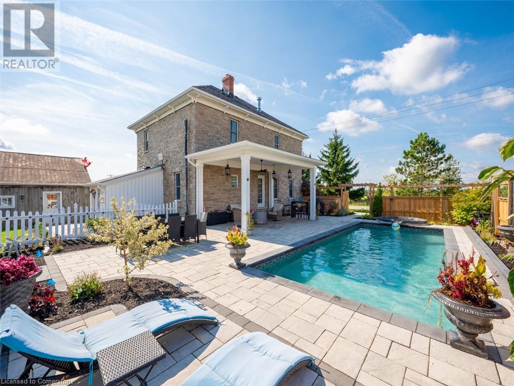 Stunning country oasis minutes from town...numerous updates over the last 8 years has turned this country farmhouse into a country paradise with spacious patio and pergola area with inground pool and hot tub. Inside most everything has been updated from the bathrooms to the kitchen, appliances, beautiful 2-sided gas fireplace in living room and dining room, upstairs are 3 generous sized bedrooms, 5 piece bath and additional sitting/tv/gaming area. Main floor has living room, dining room, country kitchen and overflow bedroom/ Office. Plenty of storage room in the basement and huge 24 ft x 39 ft detached garage. (id:55009)