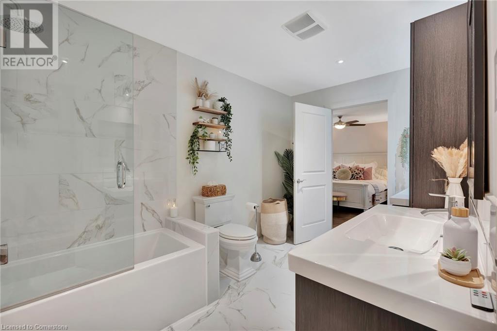 Welcome home to 240 Parkside Drive. This truly unique property sits on an expansive 105x188 lot and is just steps away from shopping, restaurants, and Memorial Park. The fully renovated bungalow has been tastefully designed and offers over 1600sqft of above grade living space with an open concept floor plan. The eat-in kitchen includes quartz countertops, stainless steel appliances and a breakfast bar. The spacious primary bedroom boasts a dream walk in closet with an island, ensuite privileges, and French doors leading to your private deck with hot tub area overlooking your secluded backyard oasis. The fully finished basement provides an additional 2 bedrooms, full bathroom, recreational room, and over sized laundry. Your dream backyard is complete with composite deck and interlock patio to enjoy a peaceful backyard, perfect for outdoor living and entertaining. A separate entrance on the back of the home currently leads to a home salon but can easily be converted to a spacious mudroom. Additionally, the heated, detached 4 car garaged features a studio loft above with its own entrance. Perfect for a home office, fitness space, or potential multigenerational living- the possibilities are endless! The large driveway extends to the back of the property allowing for plenty of parking. Upgrades include Windows (2017), Roof (2017), spray foam insulation, working well, and professionally landscaped yard. This rare offering is one that is sure to impress! (id:55009)