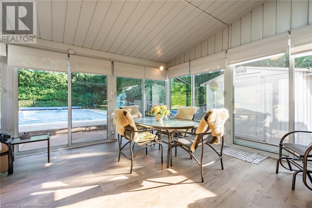 This fantastic bungalow has been lovingly maintained by the original owner. This property features an oversized lot with a large in-ground pool and a three-season sunroom. When you step inside this residence, you know you’re in a home that has been cherished and loved over the years. The living room features hardwood floors and a wood burning fireplace. The eat-in kitchen has plenty of storage and views of the pool. You can easily open up the kitchen to the living room to create an open concept floor plan. The primary bedroom has a large walk-in closet which was previously the third bedroom – you can easily change it back to a bedroom! A full bathroom and second bedroom complete the main level. You’ll love the sun-soaked sunroom with brand new vinyl plank flooring (2024) -a great bonus space! The fully finished basement has a large recreation room, a third bedroom, a full bathroom, and a great laundry room. You’ll find plenty of storage in the basement as well. Head out to the backyard for summer swims and BBQ’s. This backyard has tons of privacy with mature cedars. Great location just steps to everything you need. Don’t be TOO LATE*! *REG TM. RSA. (id:55009)
