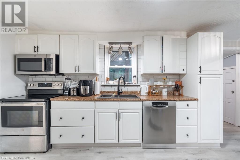Move in ready 2 bed, 1.5 bath home, on massive 40 x 122 foot deep yard with detached block garage, parking for up to 8 cars, covered gazebo perfect for summer entertaining, Updates include luxury vinyl & laminate flooring, stainless steel fridge, stove, dishwasher, over the range microwave, tiled back splash, 2022 bathroom including bathtub, vanity, toilet, tile backsplash, painted neutral throughout, shingles, roof plywood 2023, gas furnace 2022 (set up for central AC unit), owned water heater, walk to downtown, public transit at the door & more! (id:55009)