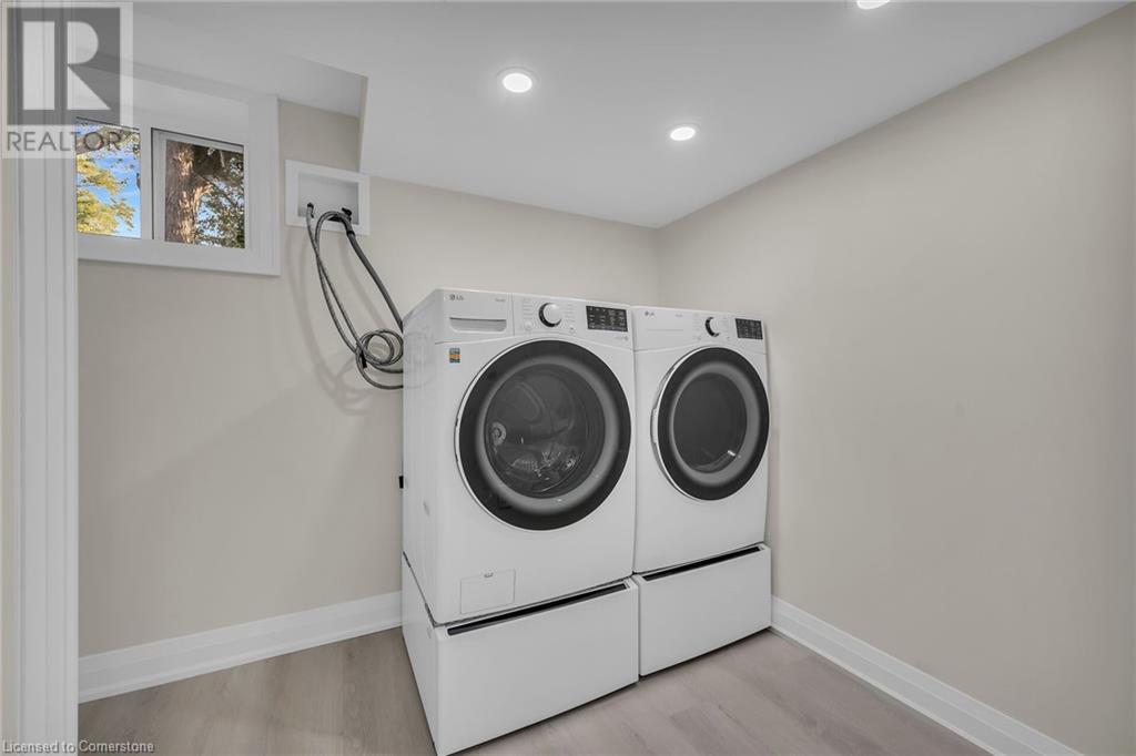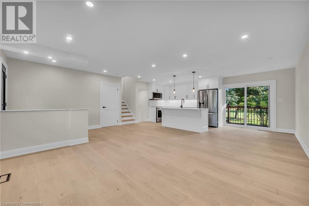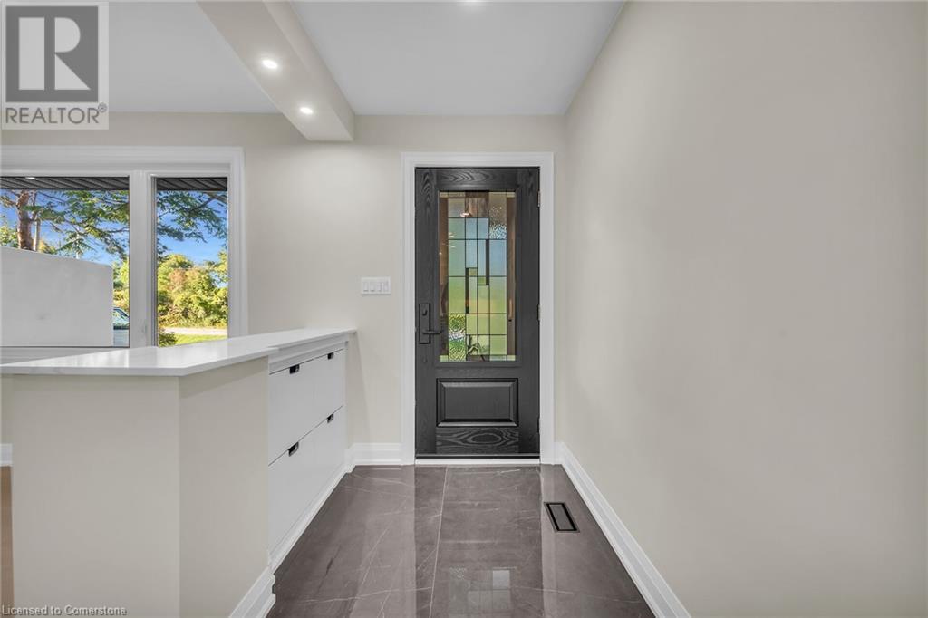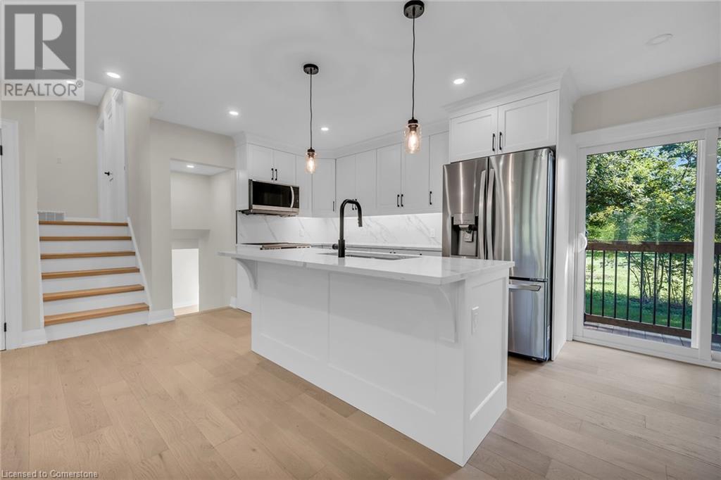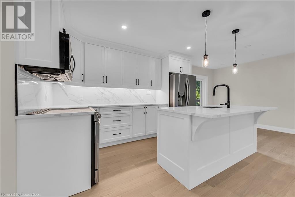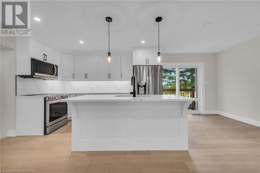 FULLY Renovated side split family home with Approx. 2000 SF of finished living space. Situated on almost 1 acre of lush greenery and fruit trees, surrounded by an orchard and tall trees offering plenty of privacy and shade, plus lots of room to add a workshop, pool, and a large garden. Interior finishes include light oak engineered hardwood throughout, timeless white shaker cabinets and crisp black hardware, quartz counters, and contemporary single panel shaker doors with new trim throughout. Both bathrooms were redone in a similar modern aesthetic. Note that all of the new LG Appliances are included with the home. The extensive renovations also included a new double garage, a new porch entrance, stamped concrete front walkway & back patio, all new windows & doors - including a fiberglass multi point lock front door, roof, furnace, and so much more! This home is located close to many local wineries and restaurants, and is less than 5 mins to the QEW, 10 mins to Vineland & Beamsville, and only 20 mins to Niagara Falls. A must see! RSA (id:55009)
