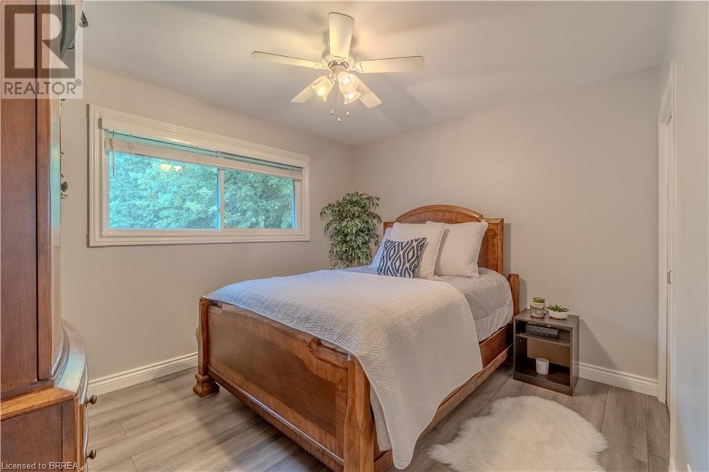 Tucked away on a peaceful dead-end street, this stunning 5-bedroom bungalow offers the perfect blend of country living in the city. Nestled on nearly half an acre with no rear neighbors and surrounded by mature trees, this home is ideal for multi-generational living with its versatile in-law suite. The main floor boasts an inviting open-concept design, featuring four bedrooms, including a master suite that doubles as a sunroom, complete with its own heating and cooling unit. The main bathroom has been beautifully renovated in 2024, adding a touch of modern luxury. The in-law suite offers privacy and convenience with its own entrance, a full kitchen, a bedroom, and an office or den, making it perfect for extended family or guests. Shared laundry, accessible to both the upper and lower units, is conveniently located in the utility room just outside the lower unit. The massive double garage is a car enthusiast's dream, with insulation, epoxy floors, a hoist, and a heater, ensuring year-round comfort. The outdoor space is a tranquil retreat, perfect for those who appreciate peace and serenity. The property, spanning nearly half an acre (150' x 120'), features a large deck for relaxation and two storage sheds for all your outdoor essentials. This move-in-ready home comes with numerous updates, including a new furnace and central air system (2022), sump pump (2024), roof shingles, soffits, fascia, and eaves (2019), exterior lighting (2024). The well provides excellent drinking water, enhanced by a new UV system installed in 2023. Both the water heater and water softener are owned, adding to the home’s appeal. All appliances are included, making this home truly turn-key. Located just moments from Highway 8, this property offers a convenient commute to Hamilton and Ancaster. Perhaps 26 Davies Street, Cambridge, will be your new address! (id:55009)