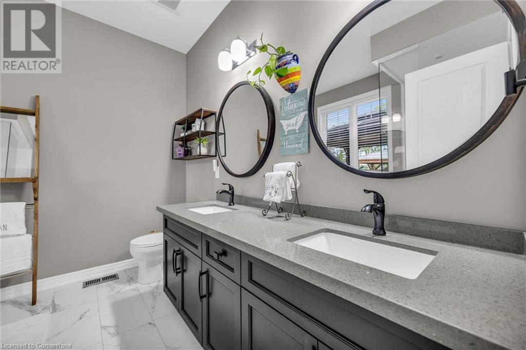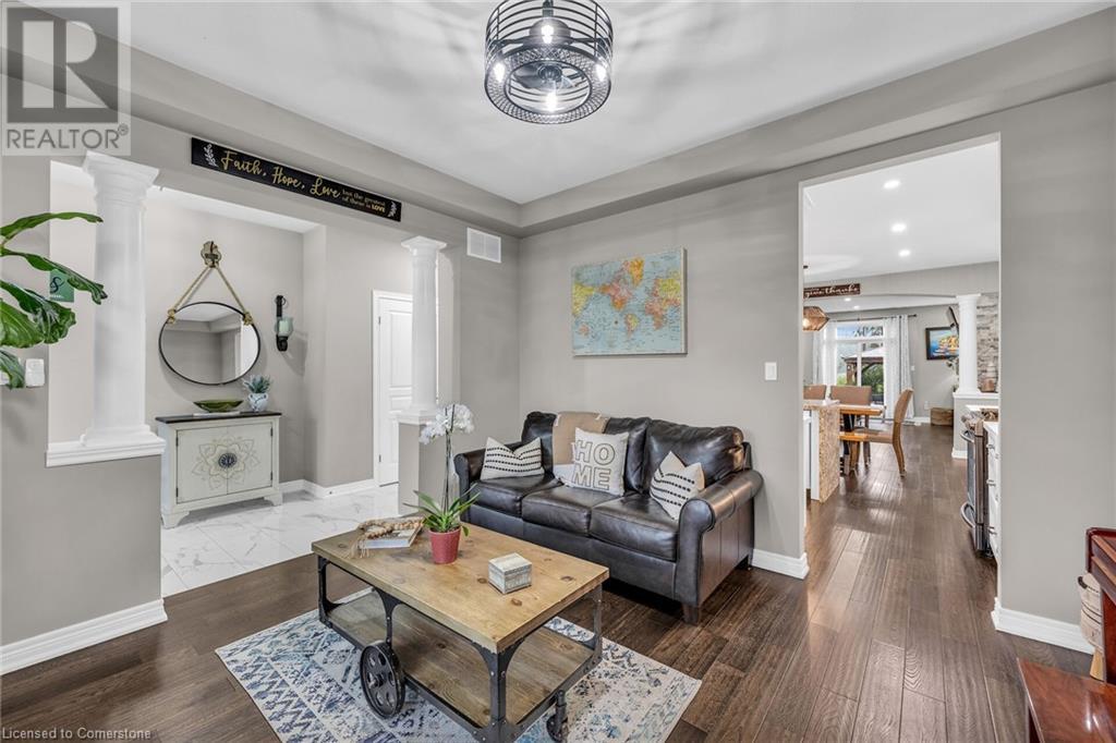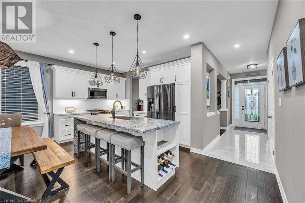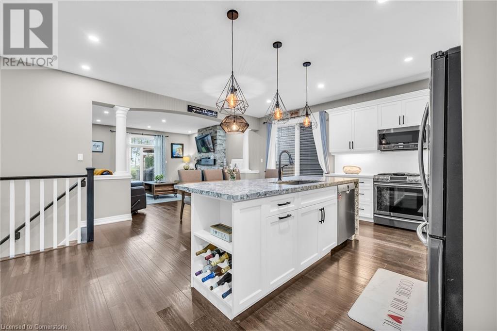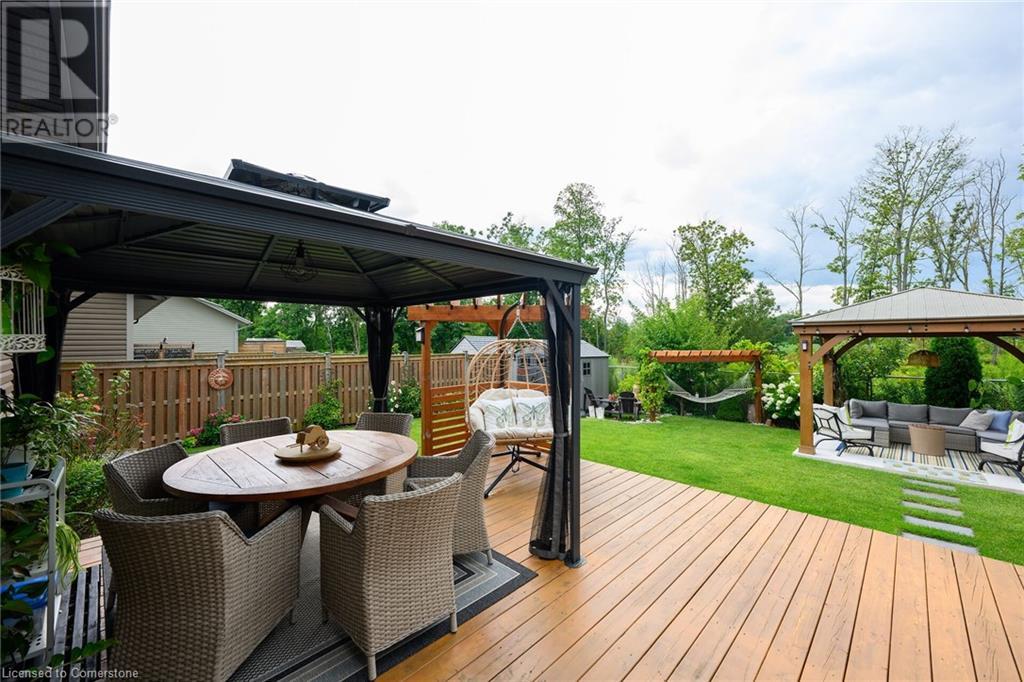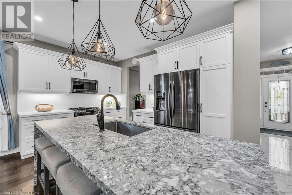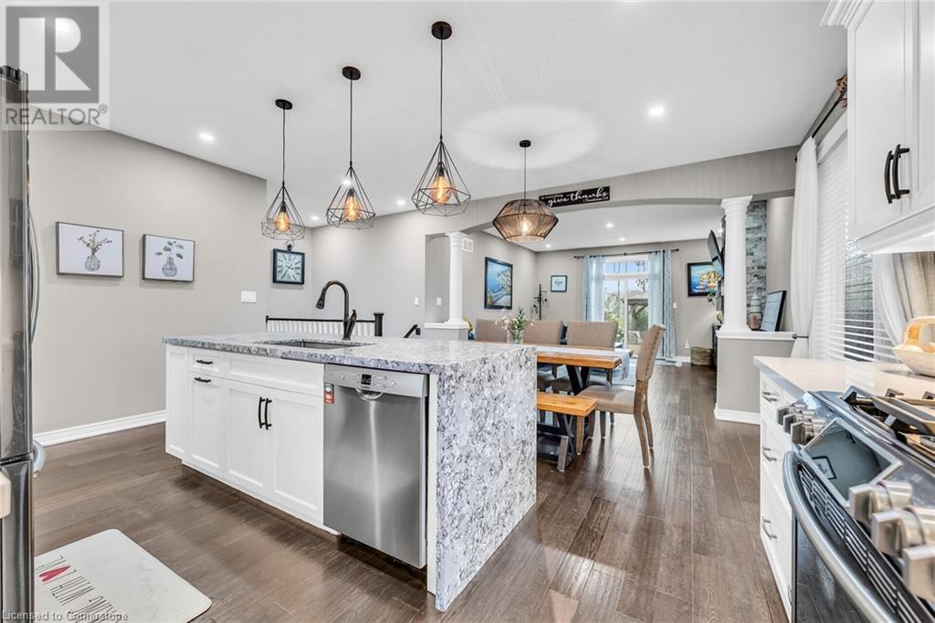 Welcome to your dream home—an exquisite Executive Bungalow nestled against a serene backdrop of lush green space. This meticulously designed 2-bedroom & den, 2-bathroom family home is move-in ready & features an array of premium upgrades. From the moment you arrive, the home’s captivating curb appeal & beautifully landscaped gardens set the stage for an extraordinary living experience. A custom open-concept kitchen with timeless black and white waterfall design, large center island with an integrated sink, abundant cabinetry & high-end finishes. The dining room flows seamlessly into the expansive living area, bathed in natural light from the walk-out deck. The master suite offers breathtaking views of the pristine backyard. The home boasts exquisite hardwood floors throughout, with newly upgraded hardwood in the bedrooms (2024). Main floor carpet free. Enjoy the convenience of main floor laundry with direct access to the double garage. The lower level presents a blank canvas, ready to be tailored to your desires—whether it's a home theater, personal gym, or additional living space. Venture outside to your private, fully-fenced backyard oasis, complete with spacious deck, perfect for unwinding in the tranquility of the surrounding greenspace. Located in the peaceful community of Smithville, this home offers an unparalleled blend of quiet suburban living with the convenience of nearby amenities, top-rated schools, picturesque parks, shopping, and quick access to major hwys. RSA (id:55009)