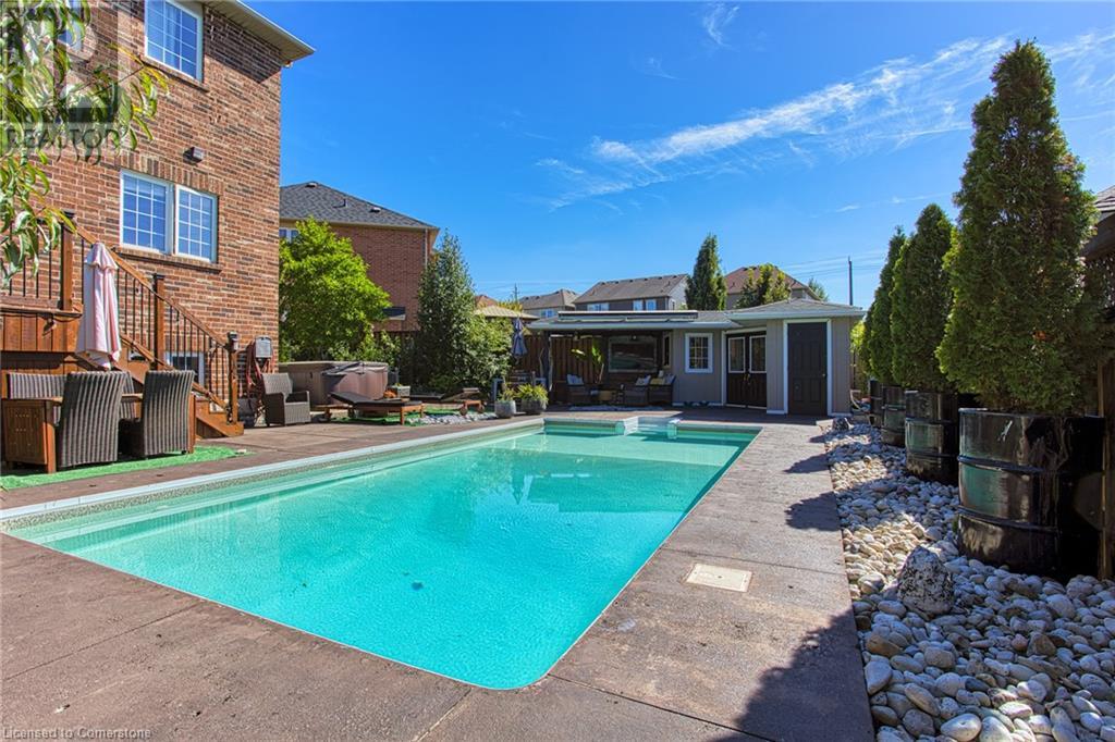 Welcome to 261 Montreal Circle in Stoney Creek, where modern elegance meets exceptional convenience. This bright and airy home is designed to impress, boasting abundant natural light throughout its spacious layout. The large kitchen is a chef's dream, featuring stunning fixtures and finishes, seamlessly flowing into the open-concept living room, perfect for both everyday living and entertaining. Venture downstairs to discover a dedicated theatre room in the basement, offering the ultimate space for movie nights and relaxation. The upper floor is home to generously sized bedrooms, providing comfort and privacy for the entire family. Each bedroom is thoughtfully designed with ample storage and stylish decor. Step outside into your own private oasis. The in-ground pool is the centerpiece of a resort-like backyard, complete with a covered cabana for shaded lounging and outdoor dining. This backyard paradise is ideal for summer gatherings or simply unwinding after a long day. Location is key, and this location excels in this regard. Enjoy the ease of hwy access and take advantage of the proximity to Costco, Metro, and schools. For nature enthusiasts, the nearby lake offers picturesque views, all within walking distance. Experience the perfect blend of luxury, comfort, and convenience in this stunning Stoney Creek home. 261 Montreal Circle is more than just a place to live—it's a lifestyle waiting to be embraced. Don't miss the chance to make this exceptional property your own. (id:55009)