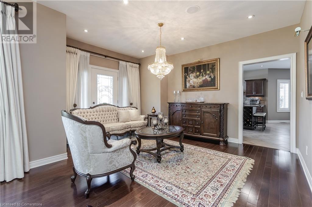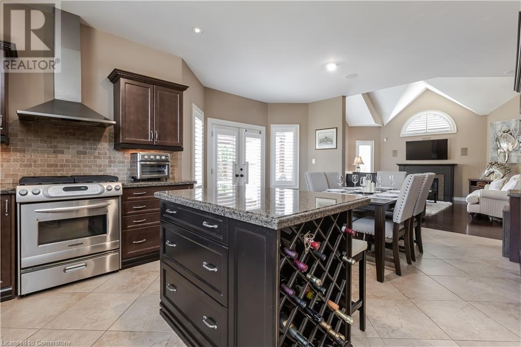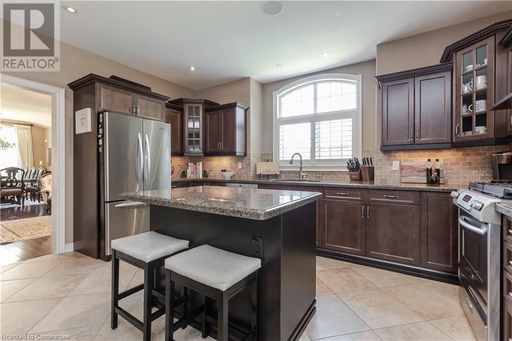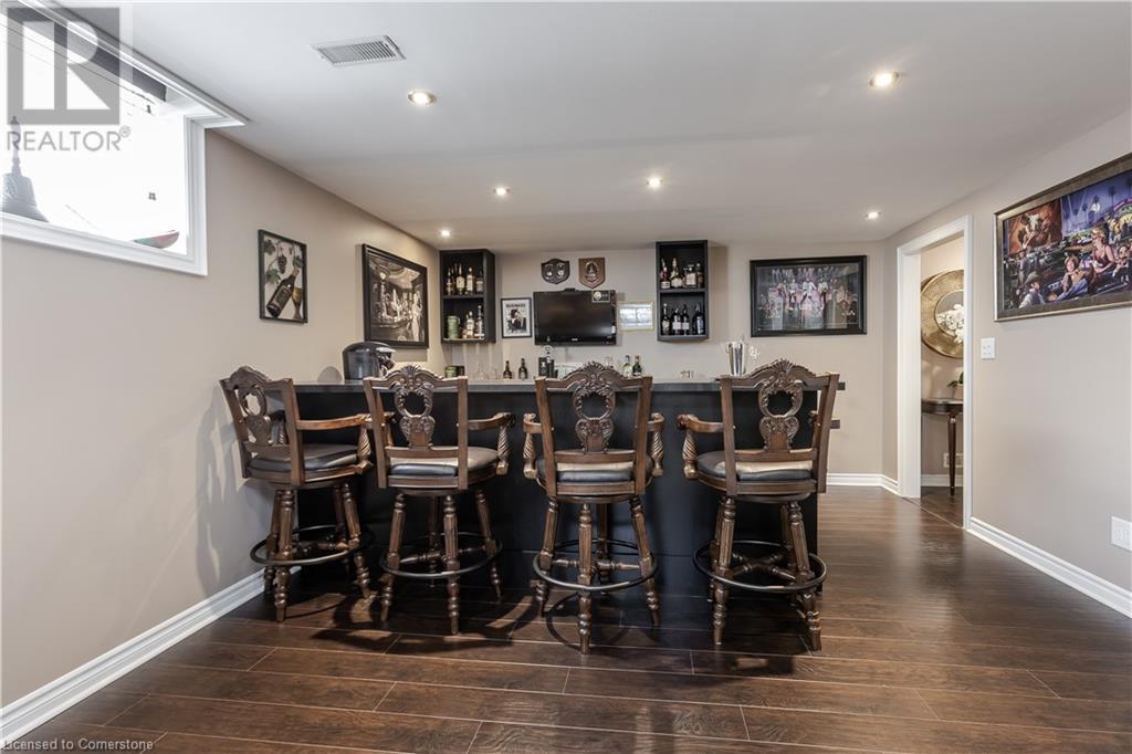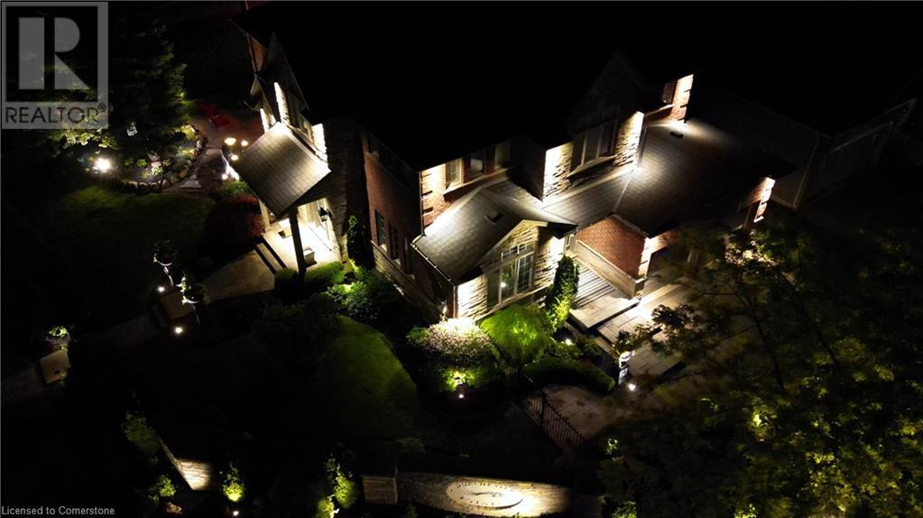 Stunning Grimsby property boasting a brick and stone exterior, complemented by an interlock driveway and lush, professionally landscaped gardens with front and back irrigation. Mature trees provide privacy and tranquility. Step inside to discover 4235SF of total finished living space. The grand entrance features floating stairs, leading to spacious formal dining and living areas with large windows. Find California shutters, hardwood floors & pot lights throughout. Incredible Crestron whole home interior/exterior lighting & speaker system w audio system on main & upper floors. System controls gas fireplace & exterior lamps from wall keypads and handheld devices. The open-concept kitchen is a chef's delight, complete with SS appliances, granite counters & convenient island with breakfast bar. Relax in the inviting great room, highlighted by a gas fireplace and vaulted ceiling. A main floor office & laundry/mudroom offer added convenience. Retreat to the generous primary suite w sitting area, walk-in closet, and spa-like 5pc ensuite with Jacuzzi soaker tub. 3 additional bedrooms & 3pc bathroom complete the upper level. The finished lower level boasts hardwood floors, a full bar, recreation room, 4pc bathroom & spacious bedroom. Updates: A/C (‘20), security system, heated double garage, 200AMP service, on-demand water heater, HVAC, and flood sensors with Wi-Fi compatibility. Don't miss the opportunity to call this meticulously maintained home your own! (id:55009)