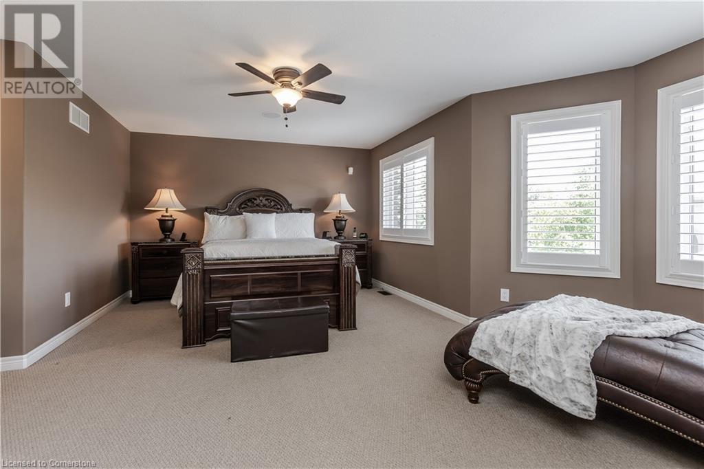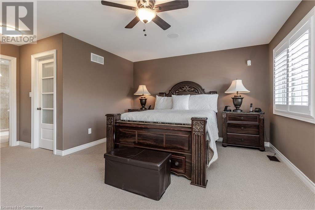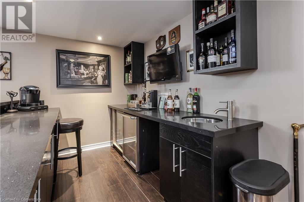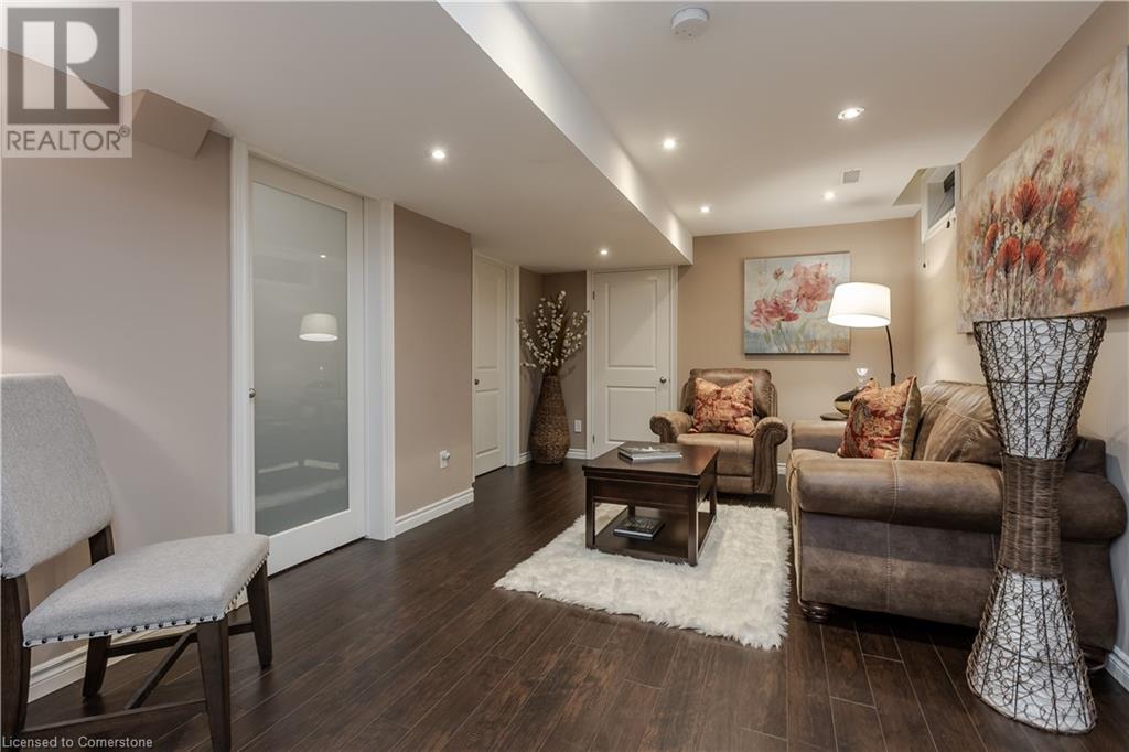 Stunning Grimsby property boasting a brick and stone exterior, complemented by an interlock driveway and lush, professionally landscaped gardens with front and back irrigation. Mature trees provide privacy and tranquility. Step inside to discover 4235SF of total finished living space. The grand entrance features floating stairs, leading to spacious formal dining and living areas with large windows. Find California shutters, hardwood floors & pot lights throughout. Incredible Crestron whole home interior/exterior lighting & speaker system w audio system on main & upper floors. System controls gas fireplace & exterior lamps from wall keypads and handheld devices. The open-concept kitchen is a chef's delight, complete with SS appliances, granite counters & convenient island with breakfast bar. Relax in the inviting great room, highlighted by a gas fireplace and vaulted ceiling. A main floor office & laundry/mudroom offer added convenience. Retreat to the generous primary suite w sitting area, walk-in closet, and spa-like 5pc ensuite with Jacuzzi soaker tub. 3 additional bedrooms & 3pc bathroom complete the upper level. The finished lower level boasts hardwood floors, a full bar, recreation room, 4pc bathroom & spacious bedroom. Updates: A/C (‘20), security system, heated double garage, 200AMP service, on-demand water heater, HVAC, and flood sensors with Wi-Fi compatibility. Don't miss the opportunity to call this meticulously maintained home your own! (id:55009)