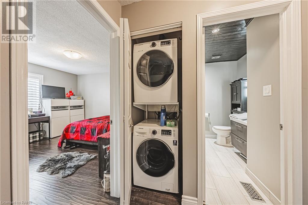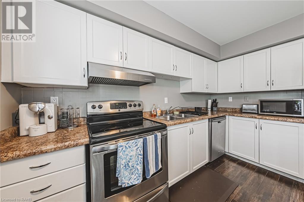 $579.15 MonthlyChic an Sassy !!! This gorgeous, beautifully maintained stacked townhome on South Hamilton Mountain – is move in ready! The open concept second floor is well appointed with beautiful white kitchen cabinetry, stainless steel appliances, a spacious living room/dining room with walkout to a large terrace and 2-piece bathroom. The primary bedroom is unique with its own balcony. The second bedroom is spacious and the perfect retreat. There is a 4-piece and washer/dryer on this level. Carpet free thru-out with rich dark flooring, recently updated Furnace, Air Conditioner and Patio Door. Just a short drive to Ancaster, Stoney Creek, Downtown Hamilton, minutes to the Linc Access, Conveniently located close to parks, trails, schools, library, and shopping. (id:55009)