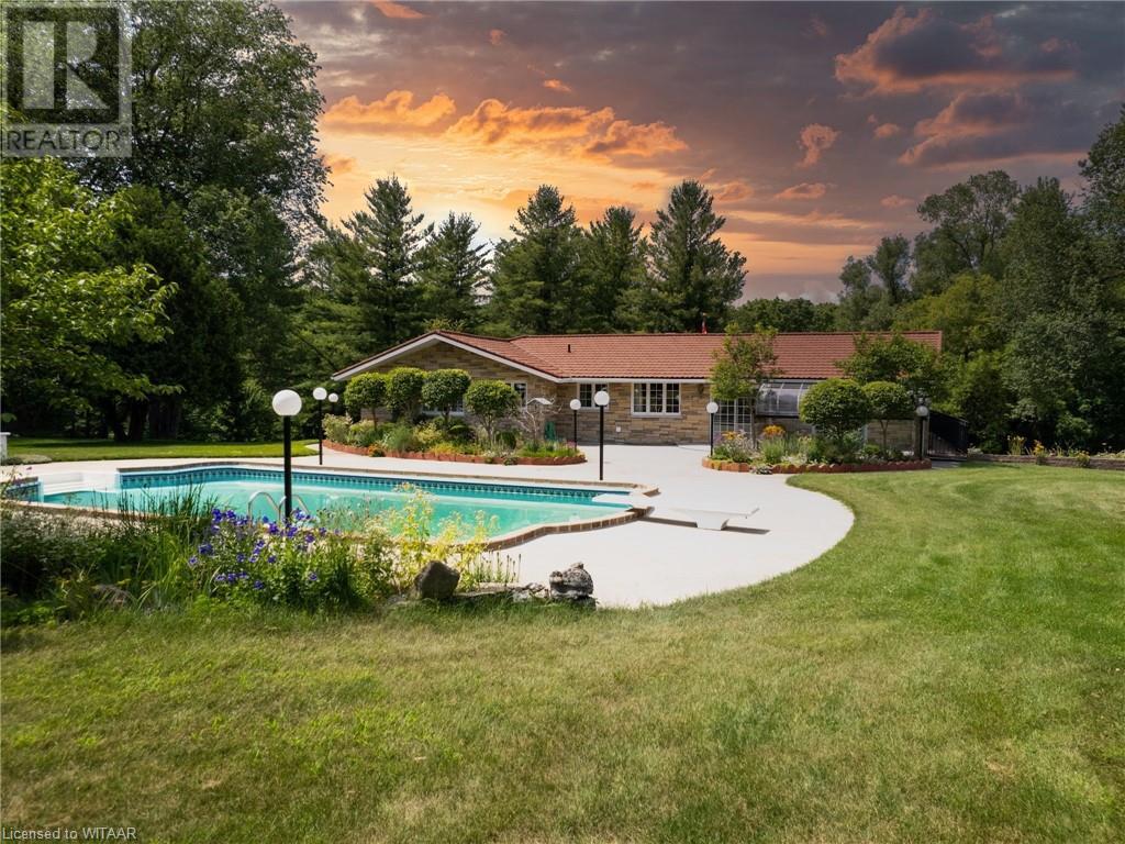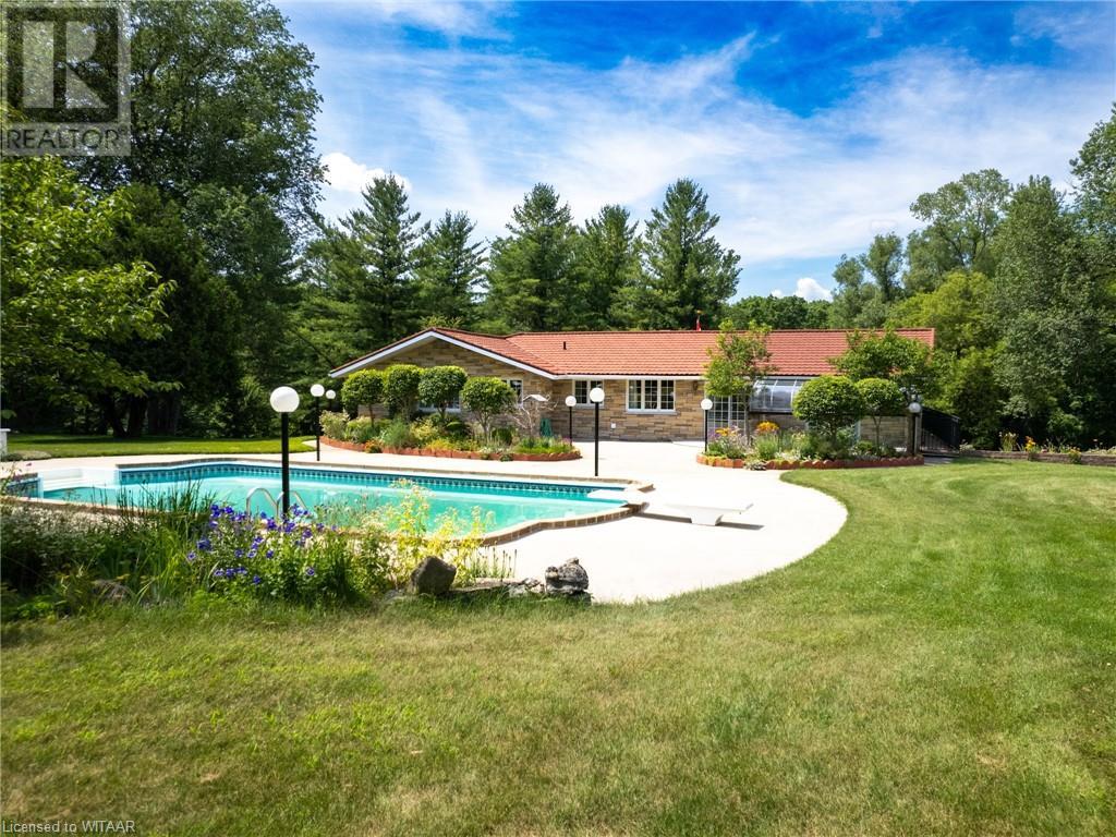 Secluded Paradise on 23 Acres with Scenic Creek Views Escape the everyday with this extraordinary retreat nestled on 23 acres of pristine landscape, bordered by the tranquil Big Otter Creek. Embracing elements of Spanish architecture, this custom-built raised ranch offers over 2800 square feet of living space designed to blend seamlessly with its natural surroundings. The home, artfully built into a hill, boasts picturesque views from every vantage point and features a lifetime metal roof, Angel stone exterior, and a cozy wood fireplace, perfect for serene evenings. Step outside to your private oasis where an inviting inground pool awaits, promising relaxation during summer months. New water filtrations system & new pressure tank. The expansive property is divided into distinct areas including an orchard with various fruit trees, a nut tree grove, and peaceful gathering spots for outdoor enjoyment. Two spacious workshops with hydro offer ample room for hobbies or storage, with the potential to convert one into a horse barn for equestrian enthusiasts. Inside, enjoy year-round comfort with forced air heating/cooling, while a sunroom doubles as a greenhouse, ideal for cultivating plants. The large cantina is a haven for canning and jam-making enthusiasts, providing space for culinary creativity. Nature lovers will delight in the frequent visits from deer, adding to the property's charm. Imagine savoring a fish fry with trout caught from your own creek - a true taste of freshness and serenity. Conveniently located on a paved road with easy access to highways, Woodstock, London, and Toronto, this retreat offers privacy without sacrificing accessibility. Recent updates including new hardwood and tile flooring, appliances, a solar blanket, and a paved main driveway ensure modern comfort and efficiency. Whether seeking a private sanctuary, a retreat, or a haven for rescued animals, this property offers endless possibilities. (id:55009)