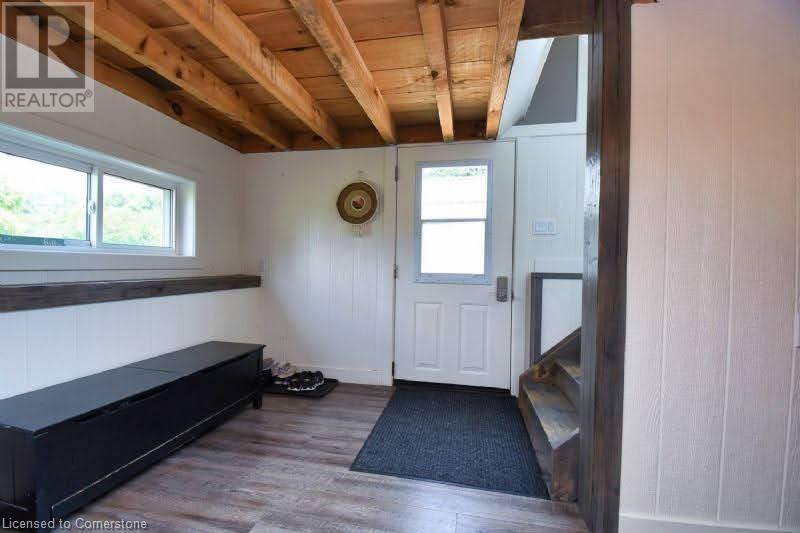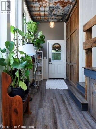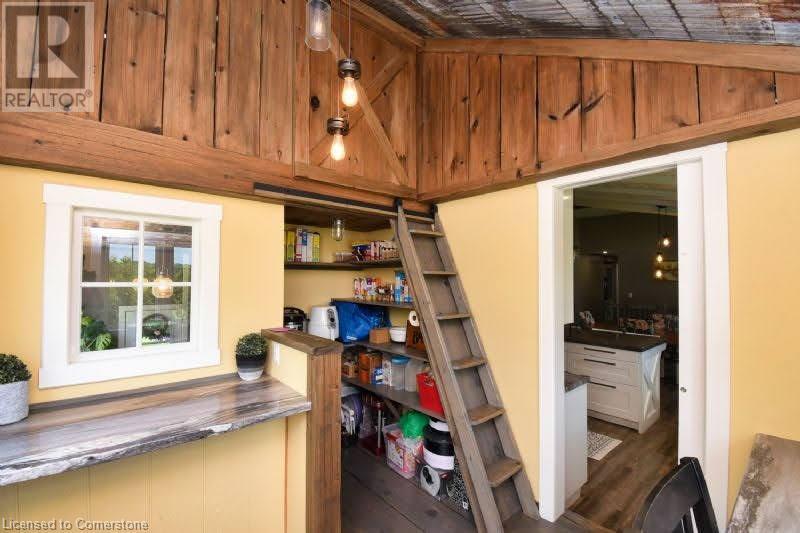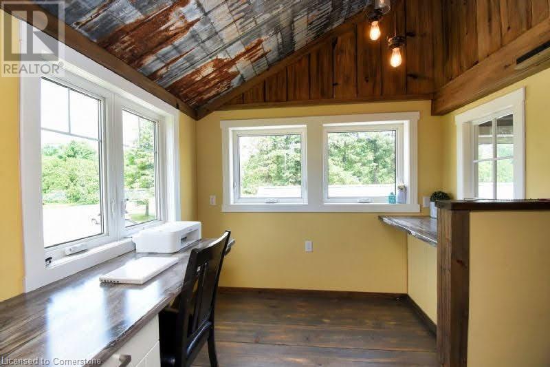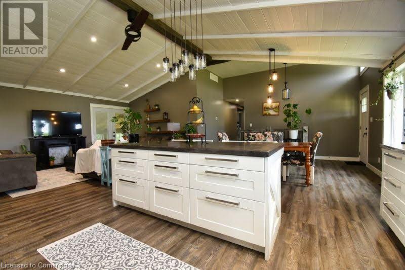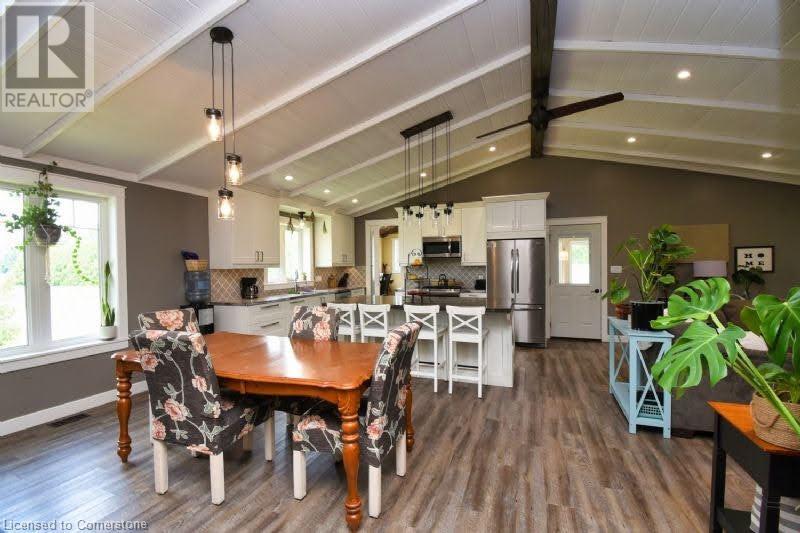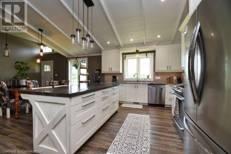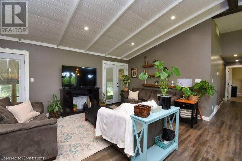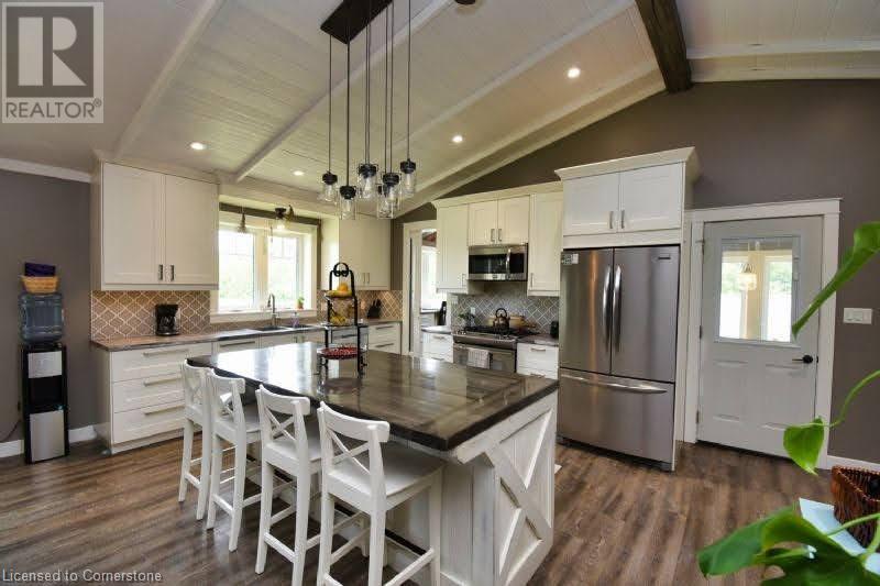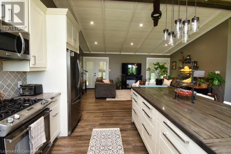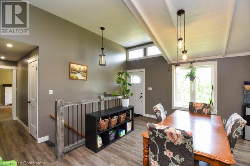 Country dreams do come true with this awe-inspiring modern farmhouse and nearly 1.5 acres of lush landscape! Unforgettable rustic charm and modern updates coalesce in this unique and beautiful raised ranch. On main level you will find and open concept with cathedral ceilings and updated kitchen, office/pantry with large loft, 3 bedrooms, 4Pc bath, master ensuite with dual walk in closet and laundry room. The finished basement has a fourth bedroom with 2 pc ensuite, large family den, decked out theatre room and and extra sizeable room currently being used as a toy room. Barn doors and pocket doors used all throughout the home add charm and an abundance of hidden storage. A cozy wood stove sufficiently heats the home in colder months for significant energy savings. Outside head through the large covered back porch to the little side greenhouse with views to the deck and saltwater pool. Low maintenance, lush perennial gardens surround the house as well as a wide range of established edible fruit trees, bushes and vines. The second driveway leads to the large barn with a front heated shop and storfront , ideal for home based and retail business and/or rental income opportunities. Attached to barn is a lean to with a large covered chicken coop and run and 2 large fenced areas, one used last season for a large organic garden with amended rich loamy soil. All of this in a prime location on Hwy 24, 10 mins to multiple beaches, 15 mins to Simcoe. Don't wait, book a viewing today! (id:55009)