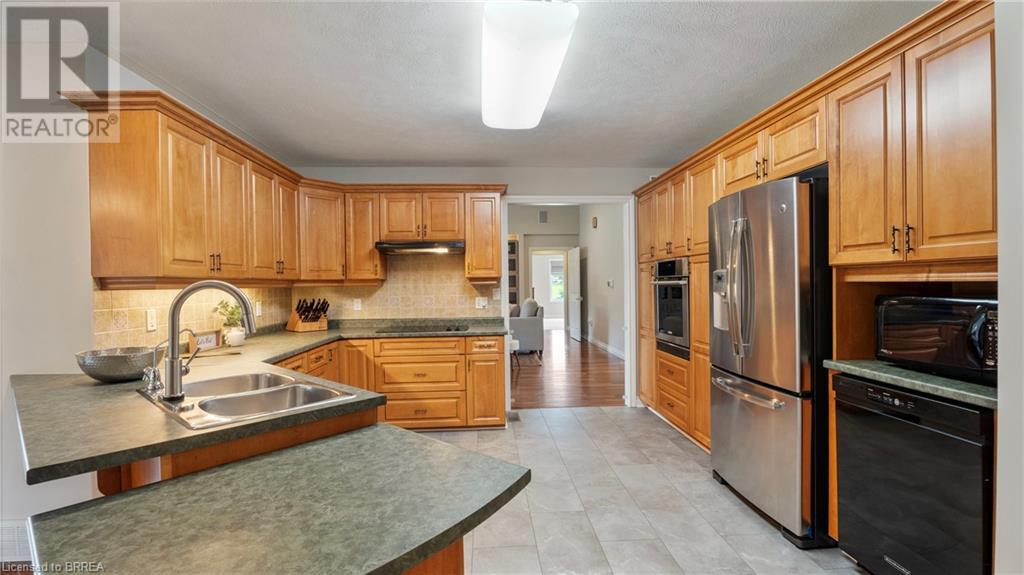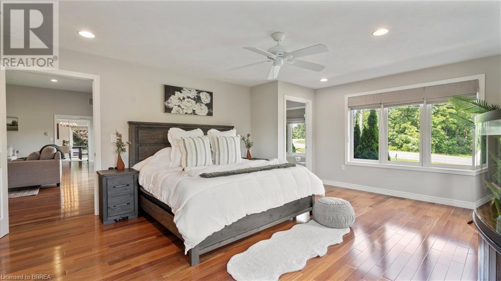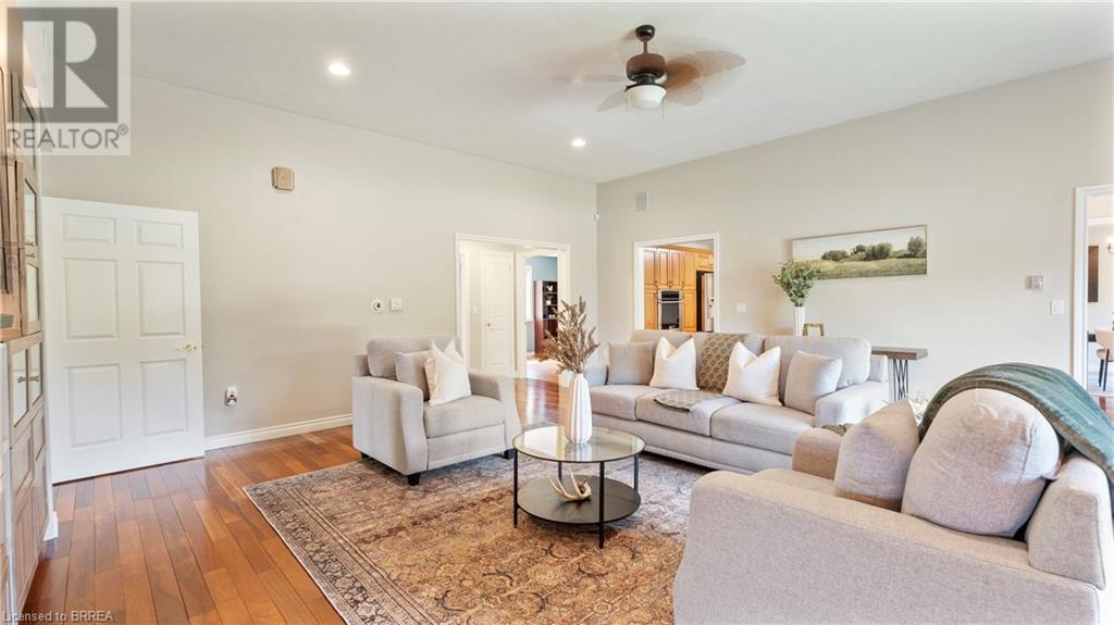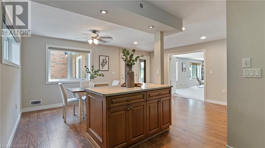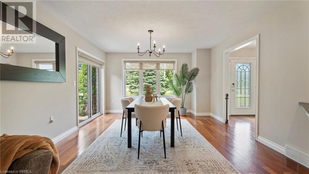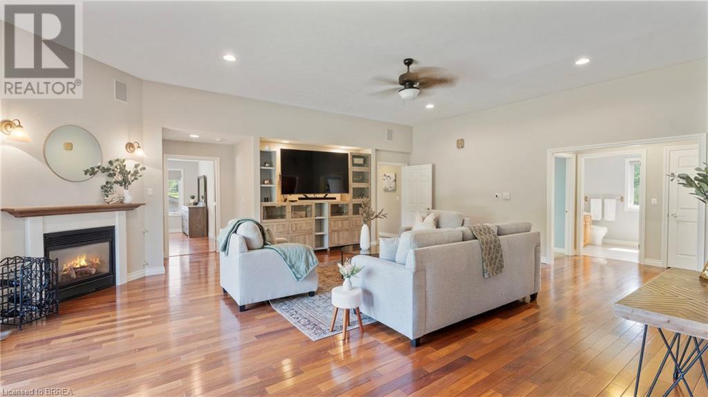 Welcome home to 270 McGill Road in Brantford. Situated just outside of Brantford between West Brant & Mount Pleasant is this beautiful, fully accessible bungalow offering stunning views of the rolling hills and countryside. Offering 4 bedrooms, 4 bathrooms, 2,520 square feet and a beautiful in-law suite, this is an amazing opportunity in a great location! Spacious entry way leading into a dining area with ample seating for 8-10 people, hard wood flooring, and sliding patio door. Just off the dining area is a large kitchen with breakfast bar, oak cabinetry with plenty of storage space, stainless steel oven and sink, built in range and tiled backsplash. Just off the kitchen is a large living room with recessed potlighting, gas fireplace and plenty of natural light throughout. This home is ideal for entertaining - offering the perfect balance of openness and plenty of privacy from the bedrooms. Large primary bedroom with custom drapery, ensuite and walk-in closet. The second spacious bedroom also includes ensuite and walk-in closet. Two additional bedrooms are just off the living room area as well as a 4 piece bath. Enjoy the convenience of main floor laundry with easy access to the backyard. The finished lower level is the ideal in-law suite! Completely finished and optimally setup with a full kitchen, dining area and large living room with gas fireplace. The best part? The lower level features a walk-out with full size windows! A beautiful sun-room with cedar walls/roof is situated between the main house and the pool room complete with swim spa and beautiful views of the property. With a large stamped concrete patio, there is plenty of room for hosting, conversation and dining. Large backyard with plenty of space for the kids to play! Don’t miss out on the opportunity to own this beautiful home in a great location close to many amenities in Brantford and great dining in the village of Mt. Pleasant. Book your private showing today! (id:55009)