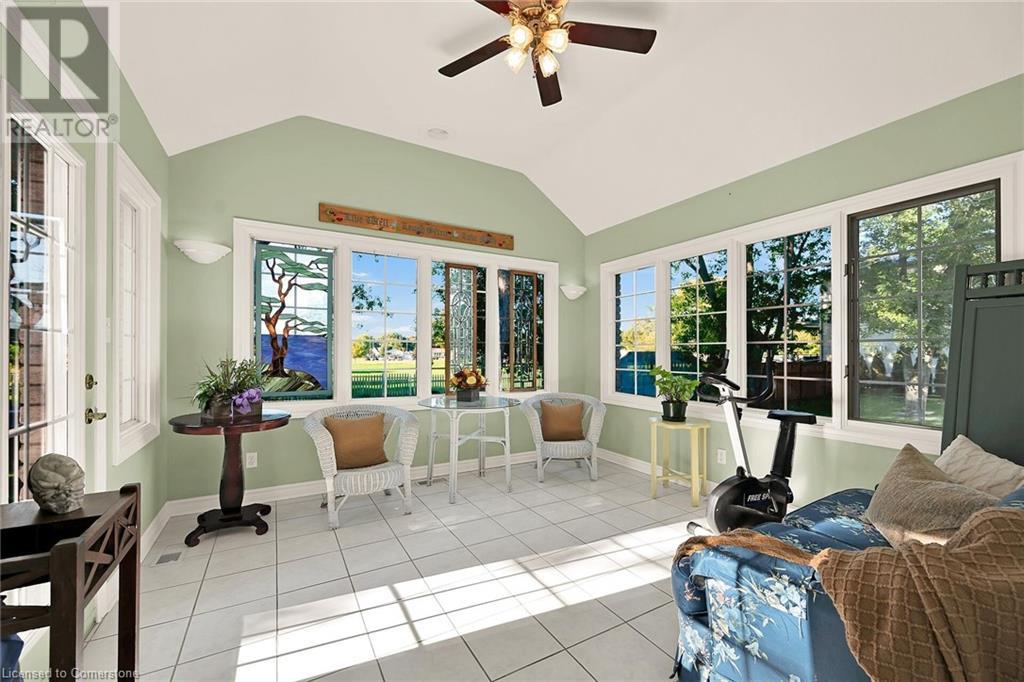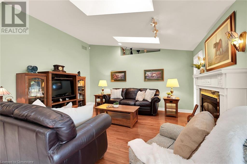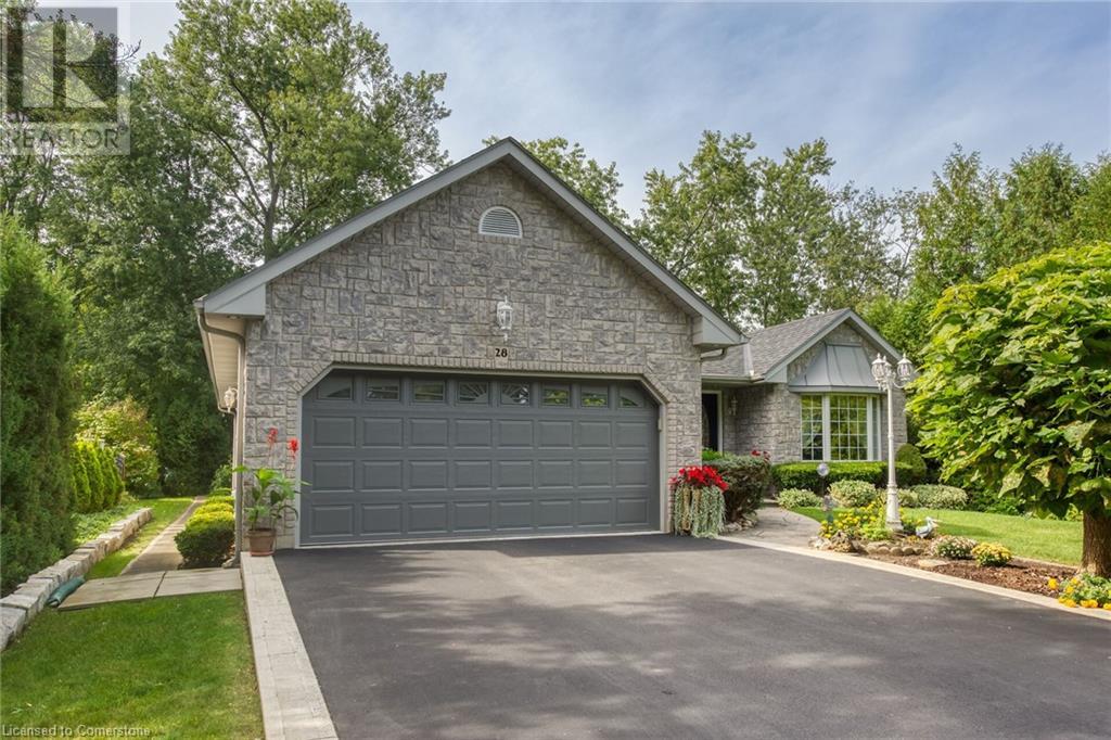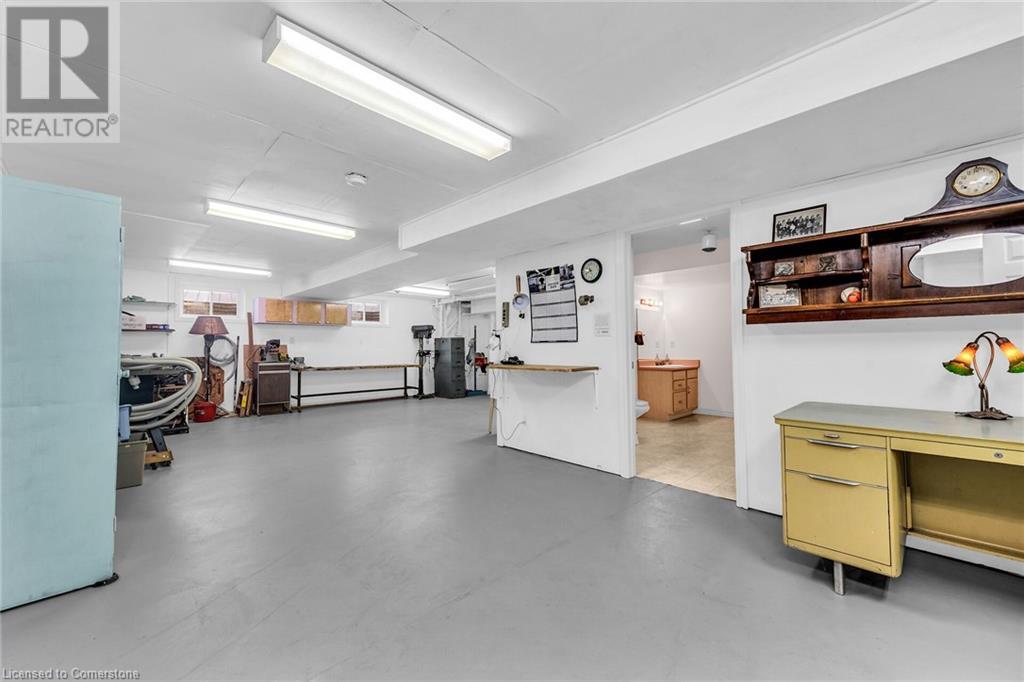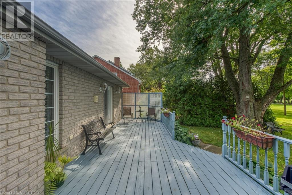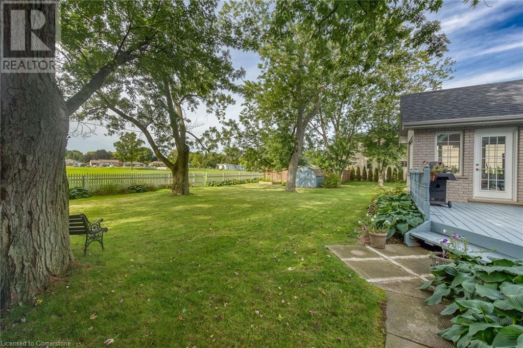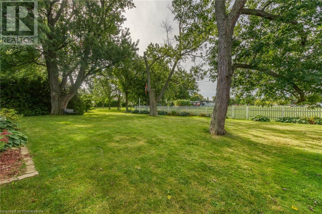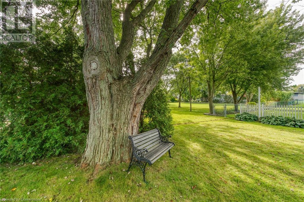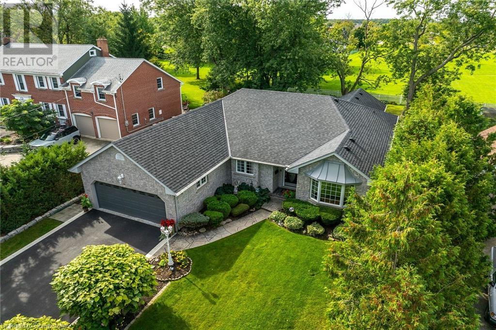 Flawless stone/brick bungalow located in Hagersville's most prestigious area where properties rarely become available. Check out this first time offered, original owner 1993 custom built home positioned magically on oversized 0.28 acre lushly landscaped lot enjoying 60.04ft of frontage on iconic “Church Street” abutting a beautiful park - walking distance to schools, churches, Hospital, downtown shops & eateries - 30 min commute to Hamilton, Brantford & Hwy 403. Prepare to be awe struck as you enter past the impressive wrought iron fence to paved driveway enhanced w/concrete curbing w/quaint flag stone walk-way adorned w/ornamental shrubs leading to welcoming front entry door where expansive foyer introduces 2192sf of pristine living area, 2186sf lower level & 492sf double car garage. Classic French doors access traditional living room/dining room complimented w/crown moulded ceilings & accented w/gleaming hardwood flooring that carries thru-out main floor hallway, bedrooms & family room. Open concept kitchen highlights bright south wing sporting solid oak cabinetry, convenient island, corion countertops & newer SS built-in appliances - segues to adjacent family room boasting vaulted ceilings w/skylights & n/gas fireplace. French doors open to gorgeous all-seasons sunroom incs wall to wall windows & walk-out to 360sf private entertainment deck overlooking park. Continues to luxurious primary bedroom offering garden door deck walk-out, walk-in closet & 4pc jacuzzi en-suite - 2 additional bedrooms, 4pc main bath, desired main floor laundry incs direct garage entry. Spacious lower level is ideal for relaxing or having large family gatherings incs rec room ftrs 2nd gas fireplace & solid oak bar, 4th bedroom incs closet/storage room, 3pc bath, huge L-shaped, super-tidy finished workshop & several built-in storage closets. Extras - gas furnace/AC-2014, roof-2017, insulated RU garage door-2020, 200 amp hydro & extensive amount of oak woodwork. A Truly Special Property! (id:55009)