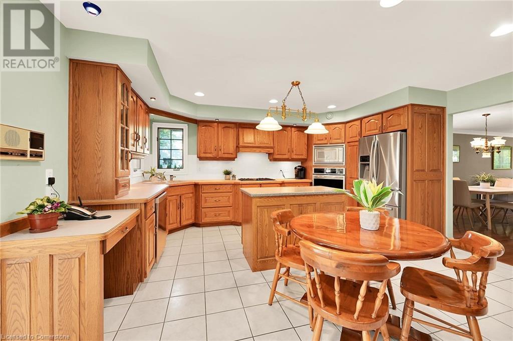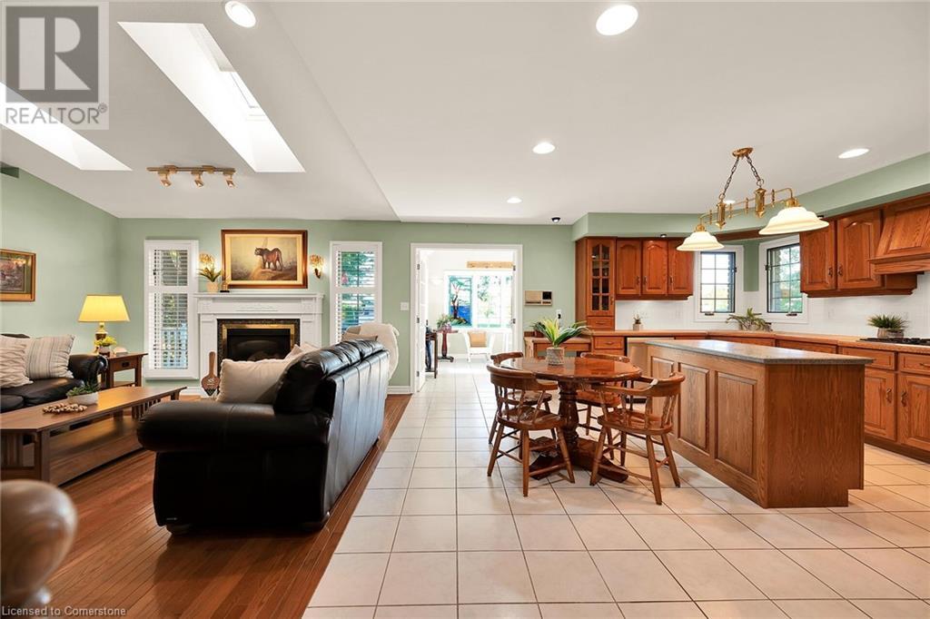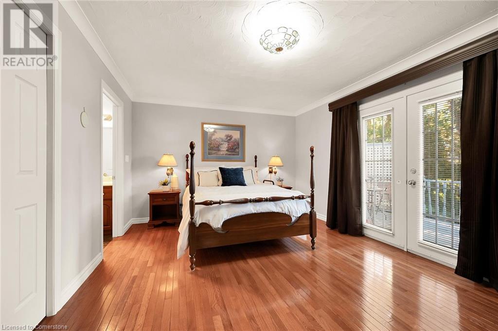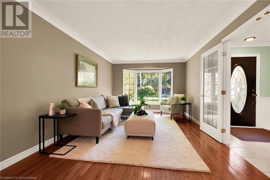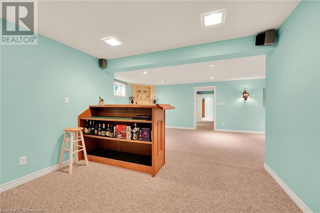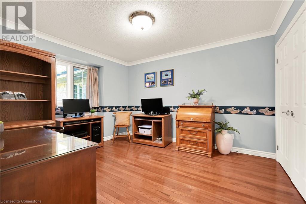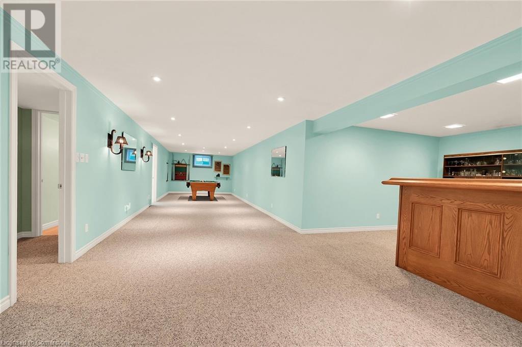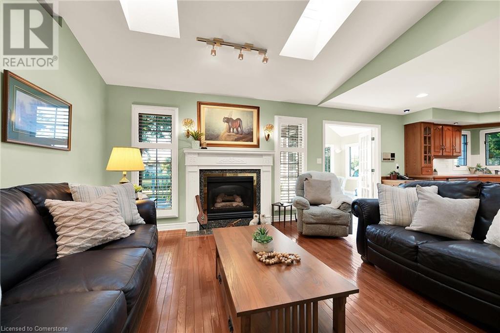 Flawless stone/brick bungalow located in Hagersville's most prestigious area where properties rarely become available. Check out this first time offered, original owner 1993 custom built home positioned magically on oversized 0.28 acre lushly landscaped lot enjoying 60.04ft of frontage on iconic “Church Street” abutting a beautiful park - walking distance to schools, churches, Hospital, downtown shops & eateries - 30 min commute to Hamilton, Brantford & Hwy 403. Prepare to be awe struck as you enter past the impressive wrought iron fence to paved driveway enhanced w/concrete curbing w/quaint flag stone walk-way adorned w/ornamental shrubs leading to welcoming front entry door where expansive foyer introduces 2192sf of pristine living area, 2186sf lower level & 492sf double car garage. Classic French doors access traditional living room/dining room complimented w/crown moulded ceilings & accented w/gleaming hardwood flooring that carries thru-out main floor hallway, bedrooms & family room. Open concept kitchen highlights bright south wing sporting solid oak cabinetry, convenient island, corion countertops & newer SS built-in appliances - segues to adjacent family room boasting vaulted ceilings w/skylights & n/gas fireplace. French doors open to gorgeous all-seasons sunroom incs wall to wall windows & walk-out to 360sf private entertainment deck overlooking park. Continues to luxurious primary bedroom offering garden door deck walk-out, walk-in closet & 4pc jacuzzi en-suite - 2 additional bedrooms, 4pc main bath, desired main floor laundry incs direct garage entry. Spacious lower level is ideal for relaxing or having large family gatherings incs rec room ftrs 2nd gas fireplace & solid oak bar, 4th bedroom incs closet/storage room, 3pc bath, huge L-shaped, super-tidy finished workshop & several built-in storage closets. Extras - gas furnace/AC-2014, roof-2017, insulated RU garage door-2020, 200 amp hydro & extensive amount of oak woodwork. A Truly Special Property! (id:55009)