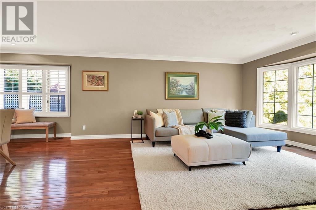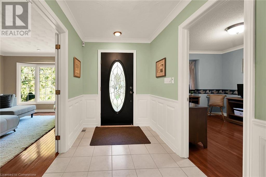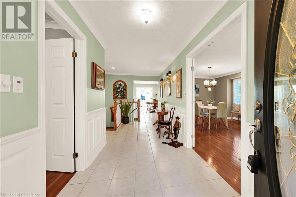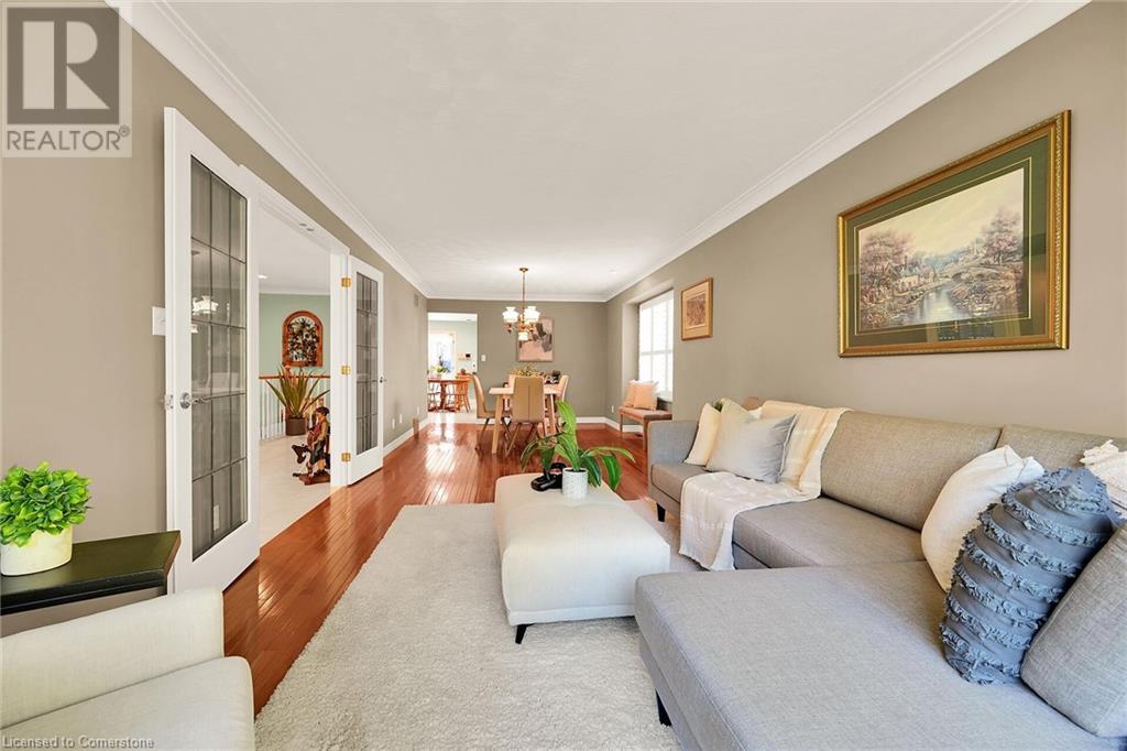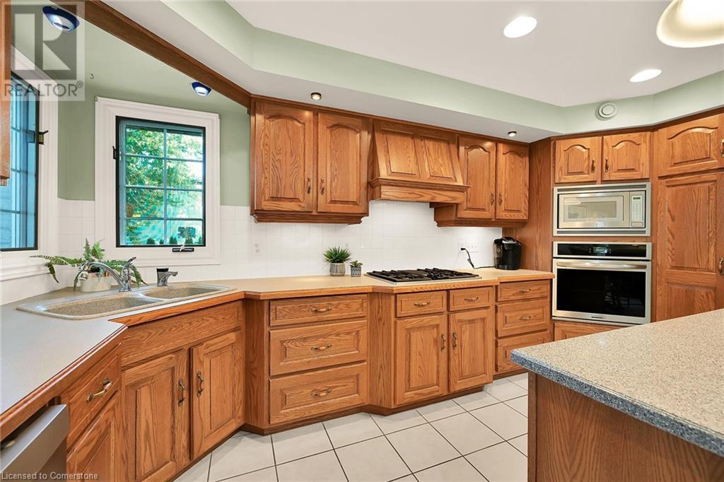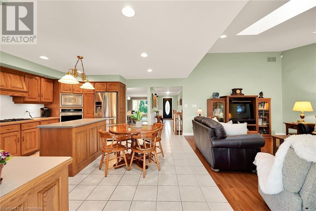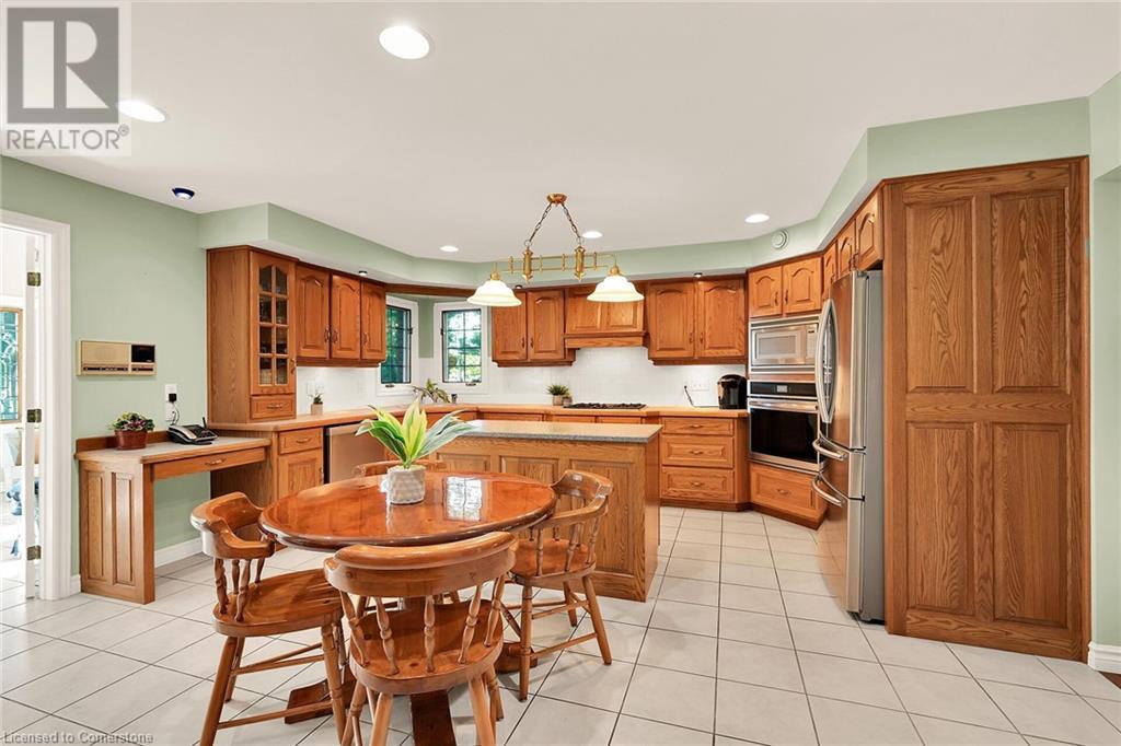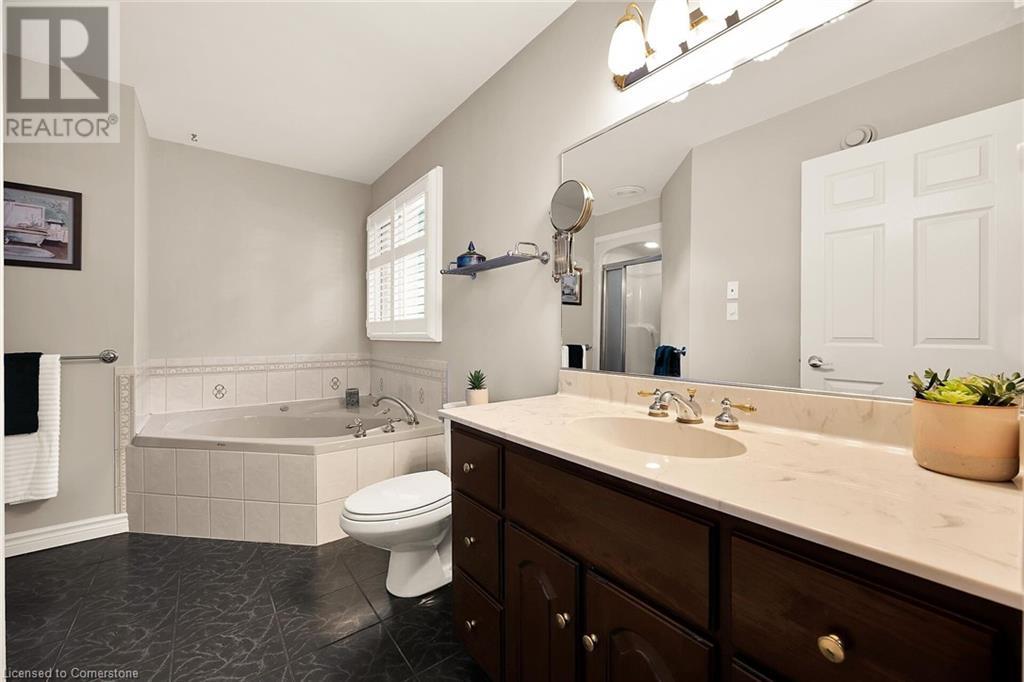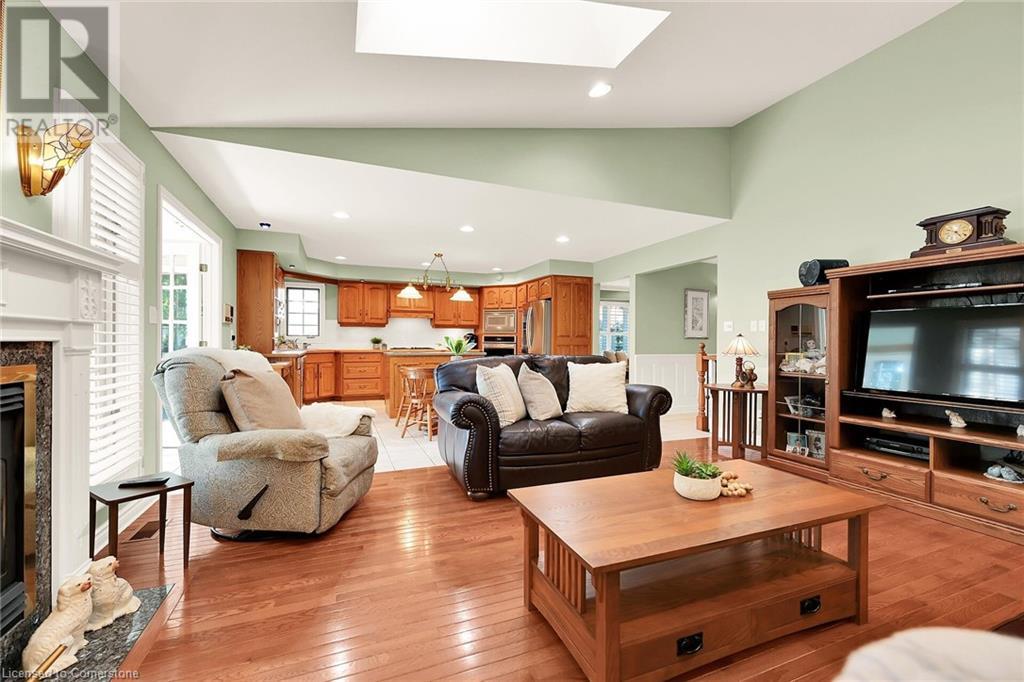 Flawless stone/brick bungalow located in Hagersville's most prestigious area where properties rarely become available. Check out this first time offered, original owner 1993 custom built home positioned magically on oversized 0.28 acre lushly landscaped lot enjoying 60.04ft of frontage on iconic “Church Street” abutting a beautiful park - walking distance to schools, churches, Hospital, downtown shops & eateries - 30 min commute to Hamilton, Brantford & Hwy 403. Prepare to be awe struck as you enter past the impressive wrought iron fence to paved driveway enhanced w/concrete curbing w/quaint flag stone walk-way adorned w/ornamental shrubs leading to welcoming front entry door where expansive foyer introduces 2192sf of pristine living area, 2186sf lower level & 492sf double car garage. Classic French doors access traditional living room/dining room complimented w/crown moulded ceilings & accented w/gleaming hardwood flooring that carries thru-out main floor hallway, bedrooms & family room. Open concept kitchen highlights bright south wing sporting solid oak cabinetry, convenient island, corion countertops & newer SS built-in appliances - segues to adjacent family room boasting vaulted ceilings w/skylights & n/gas fireplace. French doors open to gorgeous all-seasons sunroom incs wall to wall windows & walk-out to 360sf private entertainment deck overlooking park. Continues to luxurious primary bedroom offering garden door deck walk-out, walk-in closet & 4pc jacuzzi en-suite - 2 additional bedrooms, 4pc main bath, desired main floor laundry incs direct garage entry. Spacious lower level is ideal for relaxing or having large family gatherings incs rec room ftrs 2nd gas fireplace & solid oak bar, 4th bedroom incs closet/storage room, 3pc bath, huge L-shaped, super-tidy finished workshop & several built-in storage closets. Extras - gas furnace/AC-2014, roof-2017, insulated RU garage door-2020, 200 amp hydro & extensive amount of oak woodwork. A Truly Special Property! (id:55009)