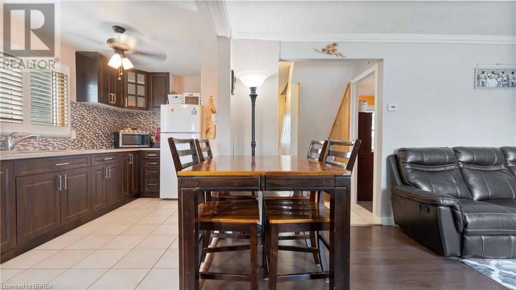 There really is No Place Like HOME.. Dale. Welcome to one of Brantford's most desirable cozy little neighbourhoods, Homedale. Homedale is wrapped by the beautiful and famous Grand River, within steps of walking trails and parks in every direction it's no surprise people want to live here. Step inside 28 Frank street, a house that makes you truly feel like your HOME. As soon as you walk in the door you immediately notice the bright and airy open concept floor plan, complemented with tasteful updates and timeless finishes. The kitchen was treated to a make over it deserved only a few short years ago with new cabinetry and granite counters. New laminate floors throughout with beautiful hardwood hiding underneath. This home features 3 bedrooms, with 1 on the main floor, a full bathroom and a FULLY FINISHED BASEMENT. Giving you 3 full levels of living space and making this home feel so much bigger then it looks. Sitting on an impressive 135 foot deep lot, surrounded by mature trees and the sense of natural all around you. The backyard has a large walk out deck, massive yard and a cedar shed for all your stuff. With the interest rates dropping, it's time for you to make the move you have been thinking about, NOW, before the market booms again! (id:55009)