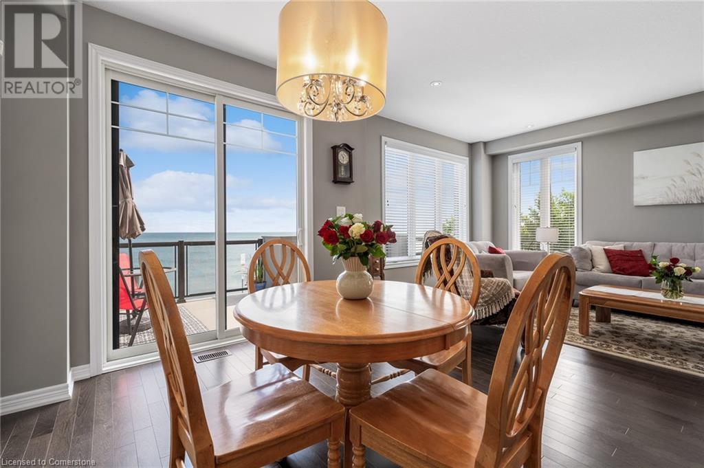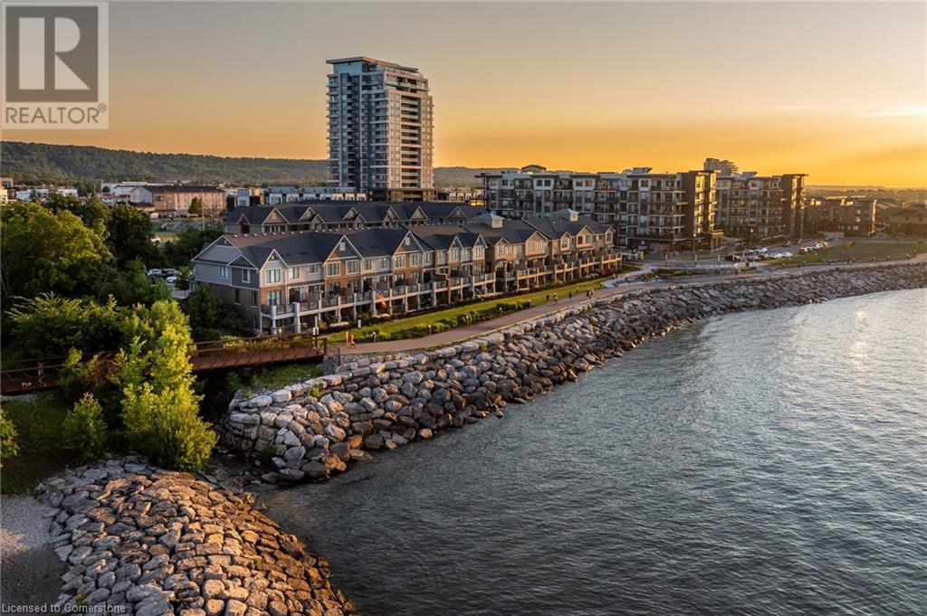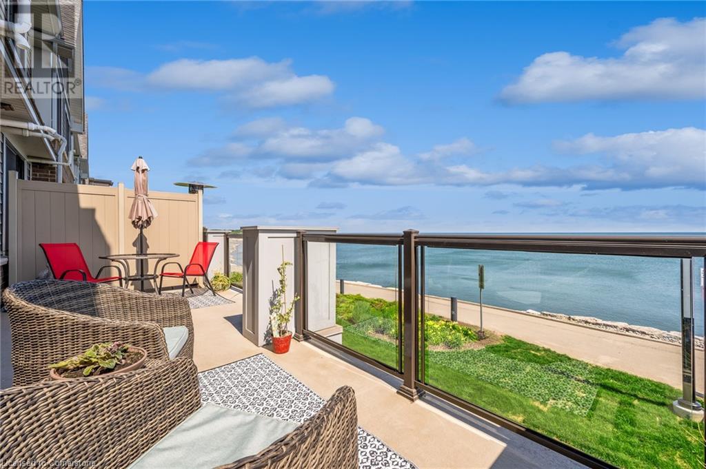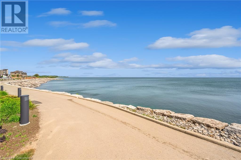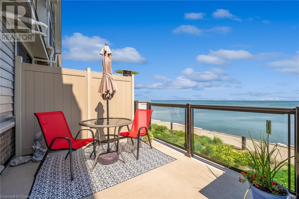 Rare Opportunity: Stunning 3-Level End Unit Townhouse on the Lake. Welcome to 28 Pierre Trudeau Lane, where luxury meets lakeside tranquility. This exceptional end unit townhome offers breathtaking panoramic views from its balcony, patio, and large windows throughout. Nestled directly on the beach with unobstructed views just steps from the water's edge, 28 Pierre Trudeau Lane offers a luxurious lakeside living experience. The spacious foyer welcomes you with expansive windows that frame picturesque lake views on every floor. The main level features an inviting open-concept layout, boasting a beautiful kitchen with upgraded cabinets and granite countertops. Large living room with windows on 2 sides to enjoy the beautiful year round lake views, step outside onto the generous balcony where sweeping views stretch to the Toronto skyline, perfect for relaxing or entertaining. Upstairs, the master bedroom is a sanctuary with a large walk-in closet and a stylish ensuite complete with a bath and walk-in glass shower. Two additional bedrooms, a full bathroom, and a convenient laundry room ensure comfort and practicality. Downstairs, the bright lower level offers a spacious family room with fireplace and wetbar walkout access to a lakefront terrace, accompanied by a two-piece bathroom and ample storage space. Conveniently located with easy access to the QEW, the new GO station, and Niagara wine country, residents can enjoy lakeside parks, cafes, and shops all within walking distance. 2 Parking passes with the unit. Experience the allure of lakeside living in beautiful Grimsby-by-the-Lake. Don't miss out on this rare opportunity—schedule your viewing today! (id:55009)