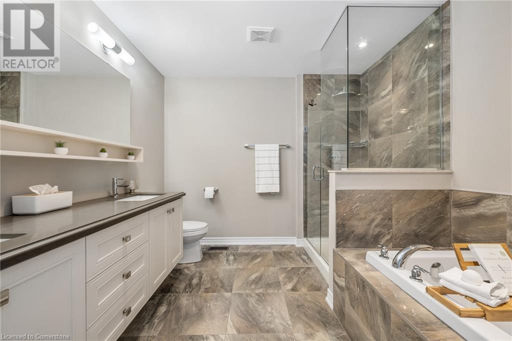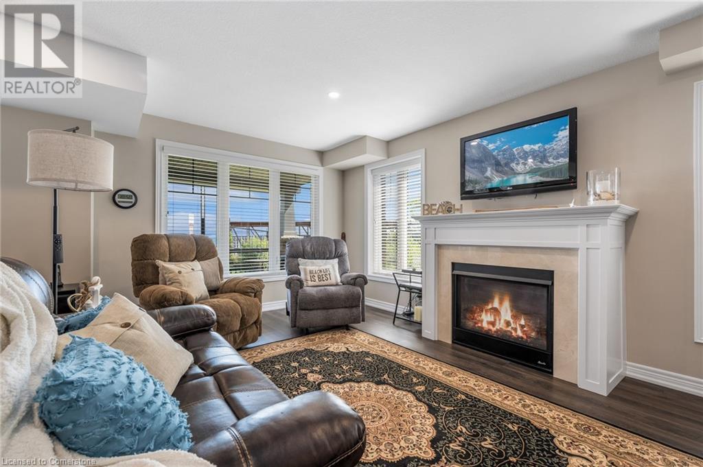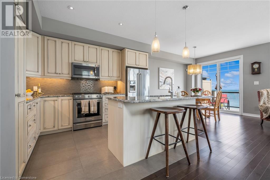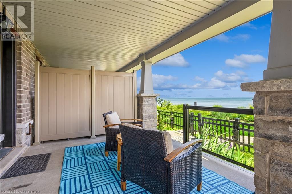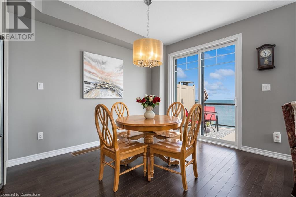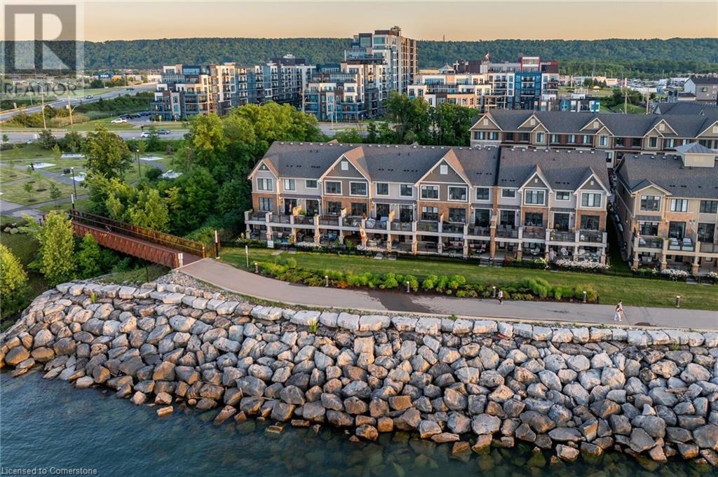 Rare Opportunity: Stunning 3-Level End Unit Townhouse on the Lake. Welcome to 28 Pierre Trudeau Lane, where luxury meets lakeside tranquility. This exceptional end unit townhome offers breathtaking panoramic views from its balcony, patio, and large windows throughout. Nestled directly on the beach with unobstructed views just steps from the water's edge, 28 Pierre Trudeau Lane offers a luxurious lakeside living experience. The spacious foyer welcomes you with expansive windows that frame picturesque lake views on every floor. The main level features an inviting open-concept layout, boasting a beautiful kitchen with upgraded cabinets and granite countertops. Large living room with windows on 2 sides to enjoy the beautiful year round lake views, step outside onto the generous balcony where sweeping views stretch to the Toronto skyline, perfect for relaxing or entertaining. Upstairs, the master bedroom is a sanctuary with a large walk-in closet and a stylish ensuite complete with a bath and walk-in glass shower. Two additional bedrooms, a full bathroom, and a convenient laundry room ensure comfort and practicality. Downstairs, the bright lower level offers a spacious family room with fireplace and wetbar walkout access to a lakefront terrace, accompanied by a two-piece bathroom and ample storage space. Conveniently located with easy access to the QEW, the new GO station, and Niagara wine country, residents can enjoy lakeside parks, cafes, and shops all within walking distance. 2 Parking passes with the unit. Experience the allure of lakeside living in beautiful Grimsby-by-the-Lake. Don't miss out on this rare opportunity—schedule your viewing today! (id:55009)
