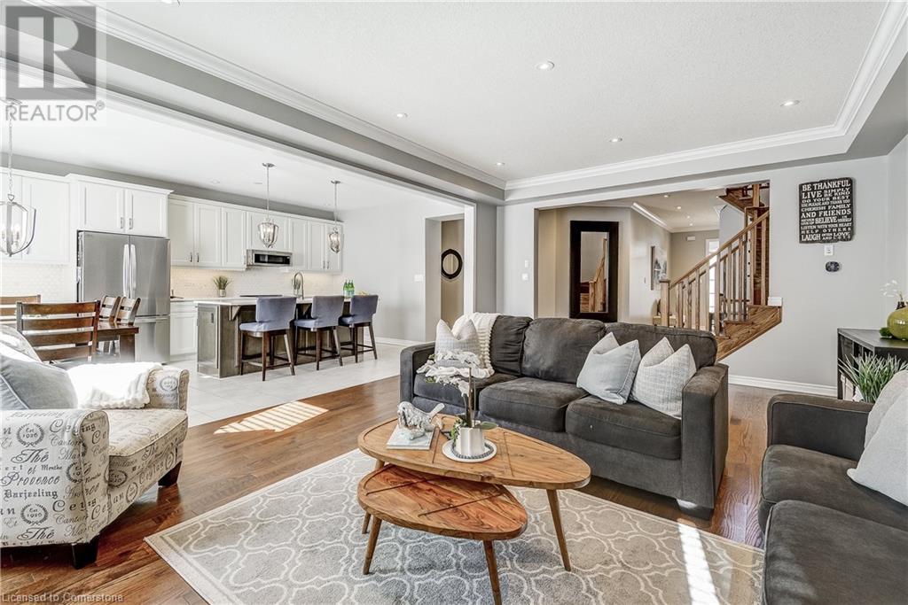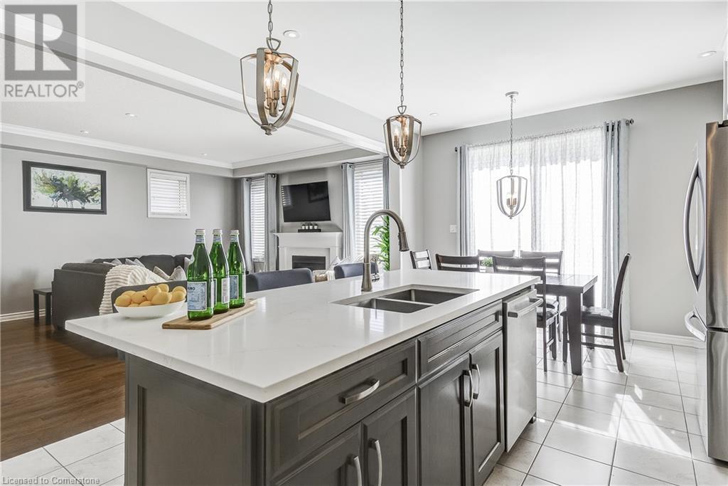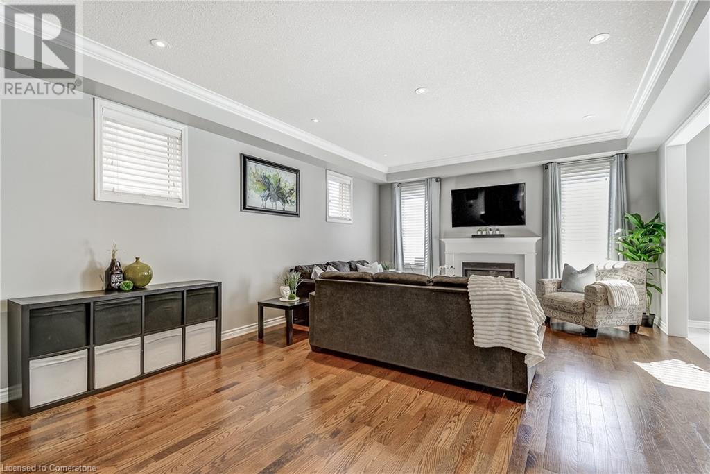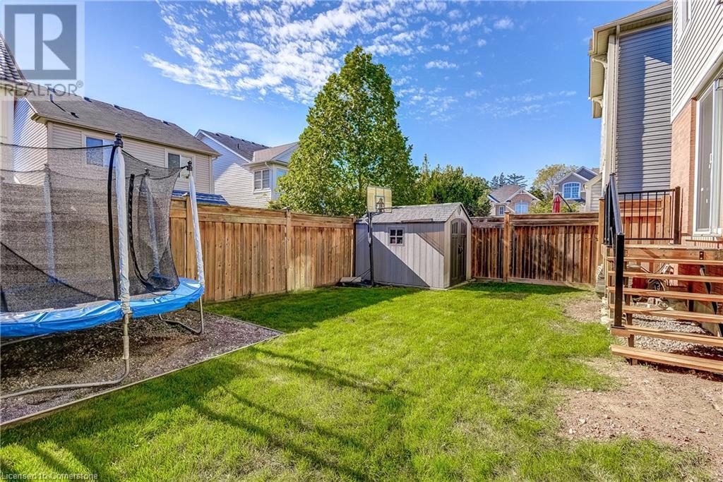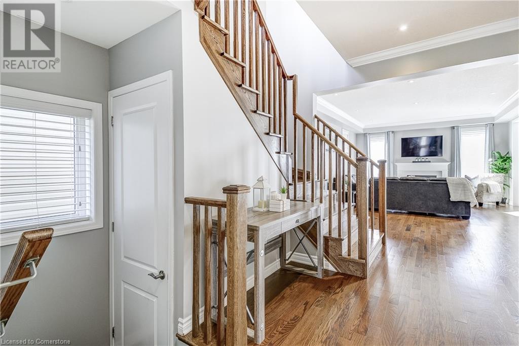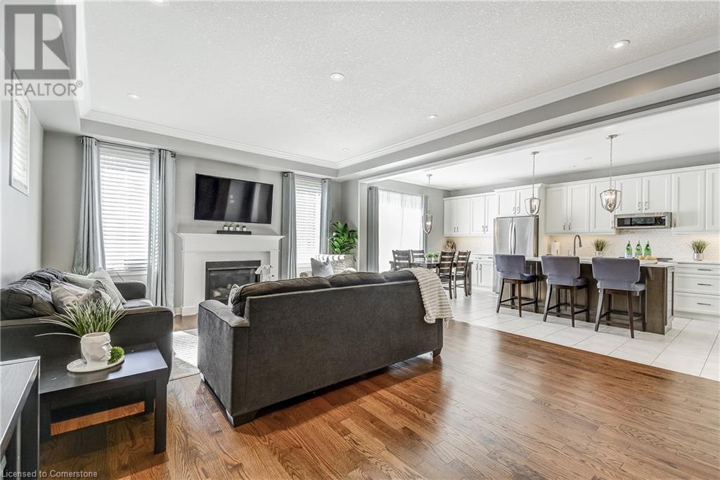 This stunning 2,275 sq.ft. home, nestled in a highly desirable Waterdown community, offering 3 bedrooms, 3 bathrooms and a versatile loft/den space. This family home is situated on a quiet crescent perfect for growing families or young professionals who will love this desirable East Waterdown neighbourhood that is close to highway access, schools, hiking trails and shopping centres. Ideally located near top-rated schools, shopping and downtown amenities, it boasts an inviting open-concept layout perfect for modern living. The gorgeous kitchen featuring a spacious center island, sleek quartz countertops, stainless steel appliances, and a stylish backsplash. The large bright living room showcases a cozy gas fireplace complemented by pot lights rich hardwood flooring throughout and a hardwood staircase. A stylish 2-piece powder room completes the main level. The second level features a primary suite offering a large walk-in closet and a 4-piece ensuite with quartz countertop. Two additional generous bedrooms provide comfort for the whole family. The loft-style den makes a perfect home office. A lovely updated 5-piece bathroom serves the additional rooms. The unspoiled, expansive basement is ready for your personal touch, featuring a rough-in for a future bathroom and large windows offering endless possibilities. Step outside to your private, fully fenced backyard with a shed for additional storage. This home combines stylish design, thoughtful features, and endless potential, making it an ideal choice for comfortable family living. (id:55009)