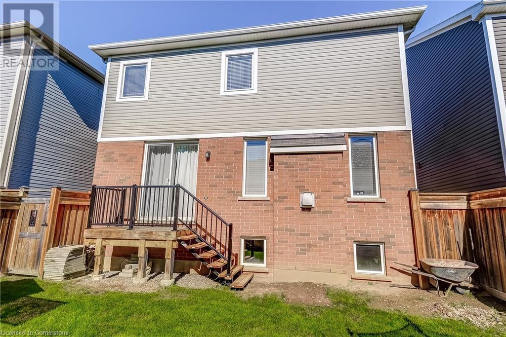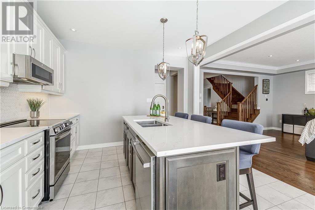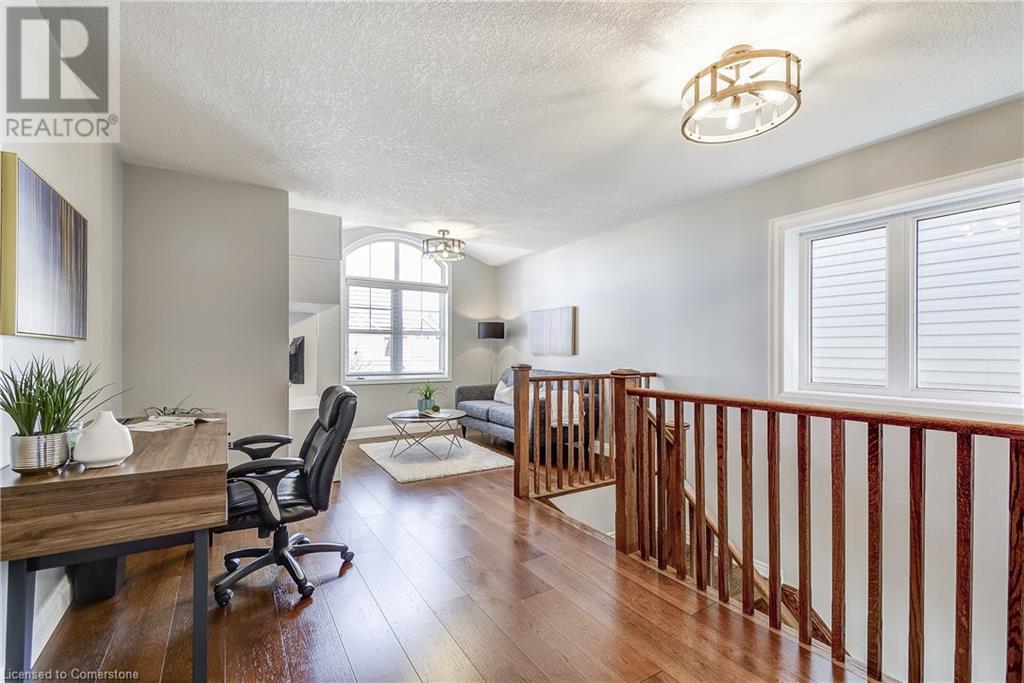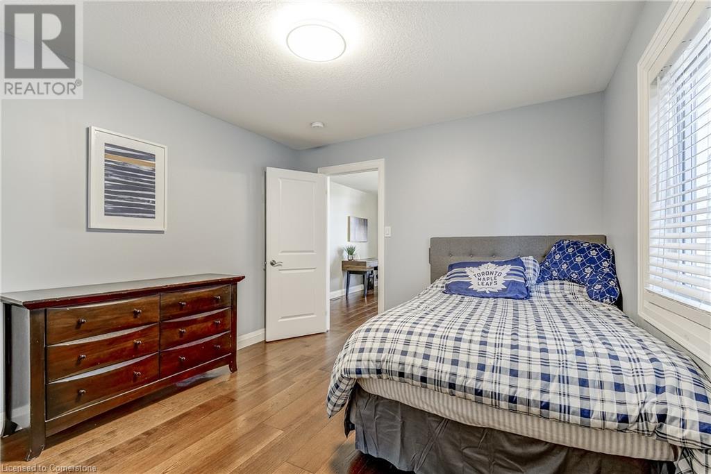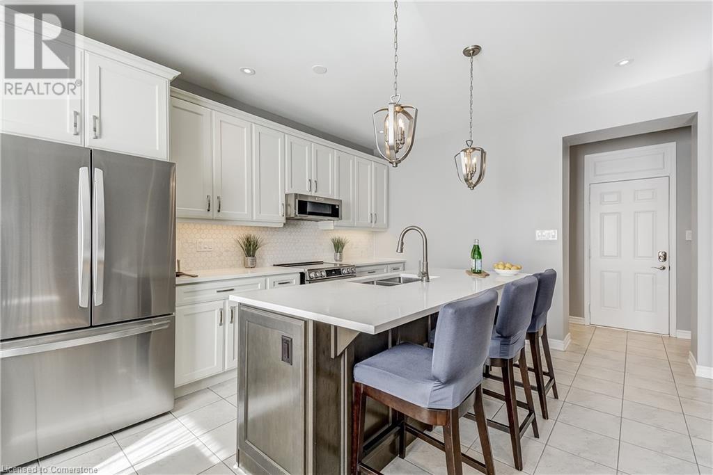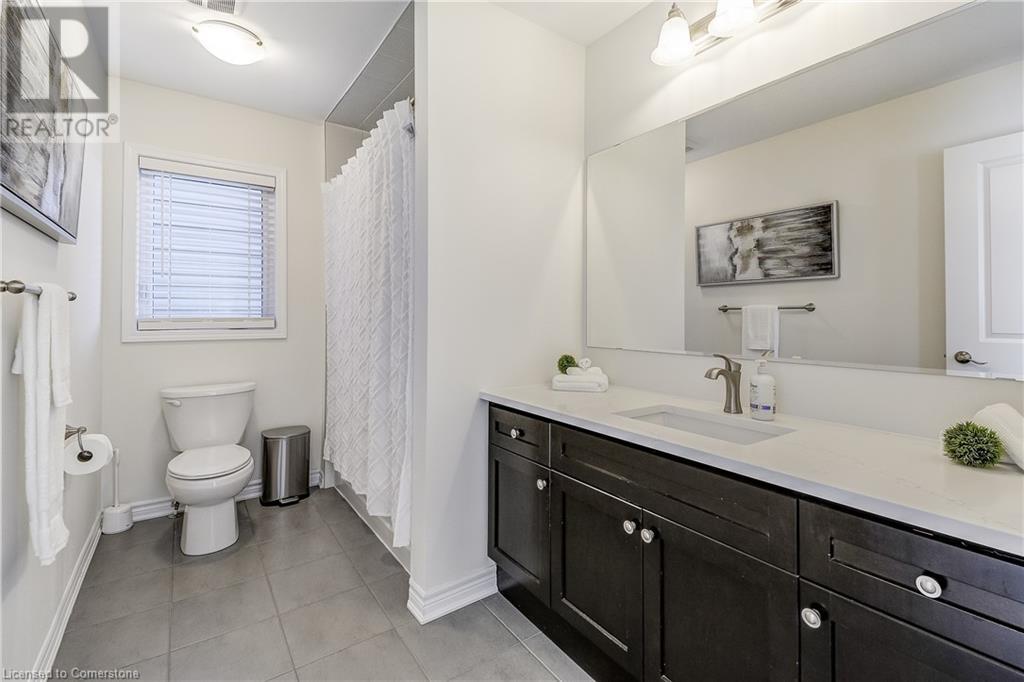 This stunning 2,275 sq.ft. home, nestled in a highly desirable Waterdown community, offering 3 bedrooms, 3 bathrooms and a versatile loft/den space. This family home is situated on a quiet crescent perfect for growing families or young professionals who will love this desirable East Waterdown neighbourhood that is close to highway access, schools, hiking trails and shopping centres. Ideally located near top-rated schools, shopping and downtown amenities, it boasts an inviting open-concept layout perfect for modern living. The gorgeous kitchen featuring a spacious center island, sleek quartz countertops, stainless steel appliances, and a stylish backsplash. The large bright living room showcases a cozy gas fireplace complemented by pot lights rich hardwood flooring throughout and a hardwood staircase. A stylish 2-piece powder room completes the main level. The second level features a primary suite offering a large walk-in closet and a 4-piece ensuite with quartz countertop. Two additional generous bedrooms provide comfort for the whole family. The loft-style den makes a perfect home office. A lovely updated 5-piece bathroom serves the additional rooms. The unspoiled, expansive basement is ready for your personal touch, featuring a rough-in for a future bathroom and large windows offering endless possibilities. Step outside to your private, fully fenced backyard with a shed for additional storage. This home combines stylish design, thoughtful features, and endless potential, making it an ideal choice for comfortable family living. (id:55009)
