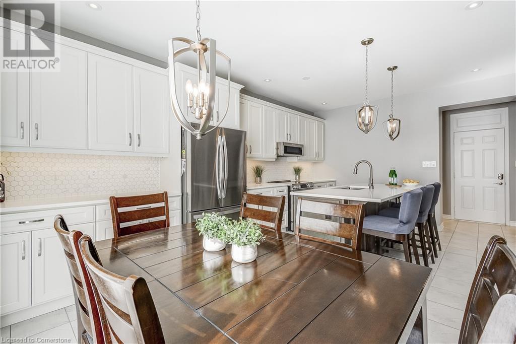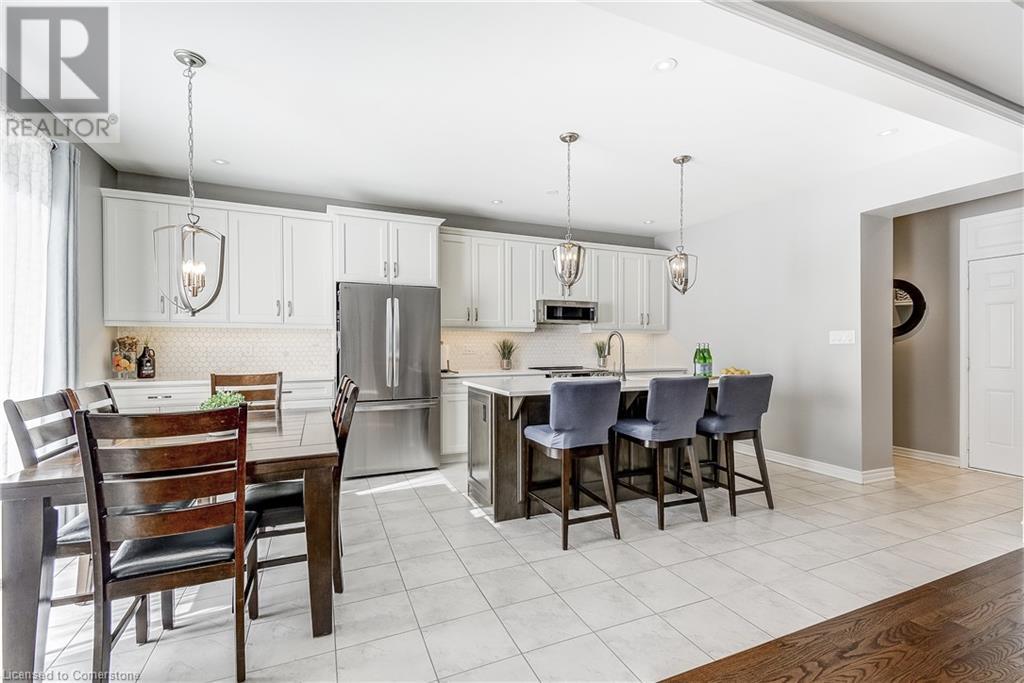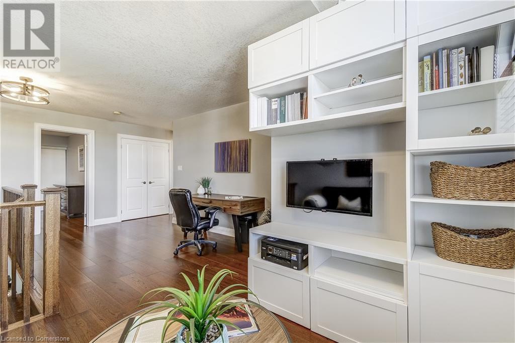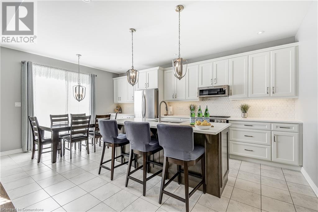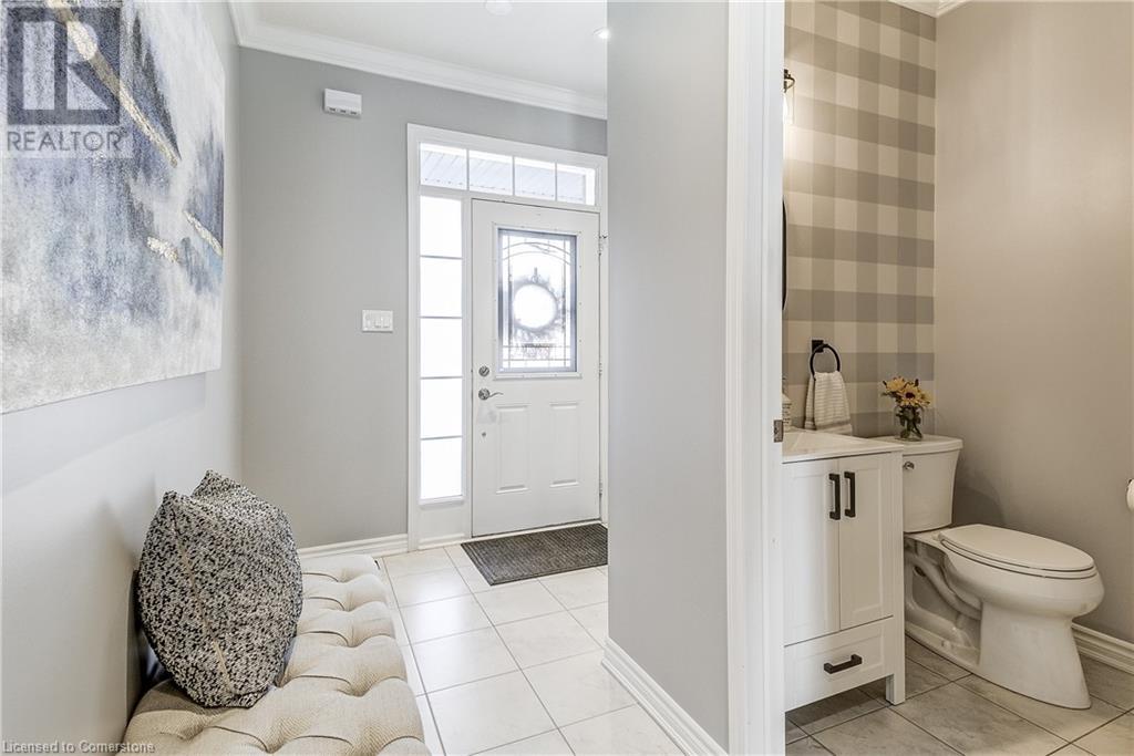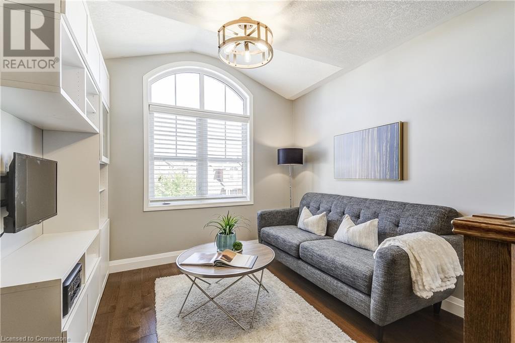 This stunning 2,275 sq.ft. home, nestled in a highly desirable Waterdown community, offering 3 bedrooms, 3 bathrooms and a versatile loft/den space. This family home is situated on a quiet crescent perfect for growing families or young professionals who will love this desirable East Waterdown neighbourhood that is close to highway access, schools, hiking trails and shopping centres. Ideally located near top-rated schools, shopping and downtown amenities, it boasts an inviting open-concept layout perfect for modern living. The gorgeous kitchen featuring a spacious center island, sleek quartz countertops, stainless steel appliances, and a stylish backsplash. The large bright living room showcases a cozy gas fireplace complemented by pot lights rich hardwood flooring throughout and a hardwood staircase. A stylish 2-piece powder room completes the main level. The second level features a primary suite offering a large walk-in closet and a 4-piece ensuite with quartz countertop. Two additional generous bedrooms provide comfort for the whole family. The loft-style den makes a perfect home office. A lovely updated 5-piece bathroom serves the additional rooms. The unspoiled, expansive basement is ready for your personal touch, featuring a rough-in for a future bathroom and large windows offering endless possibilities. Step outside to your private, fully fenced backyard with a shed for additional storage. This home combines stylish design, thoughtful features, and endless potential, making it an ideal choice for comfortable family living. (id:55009)