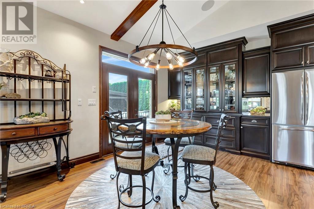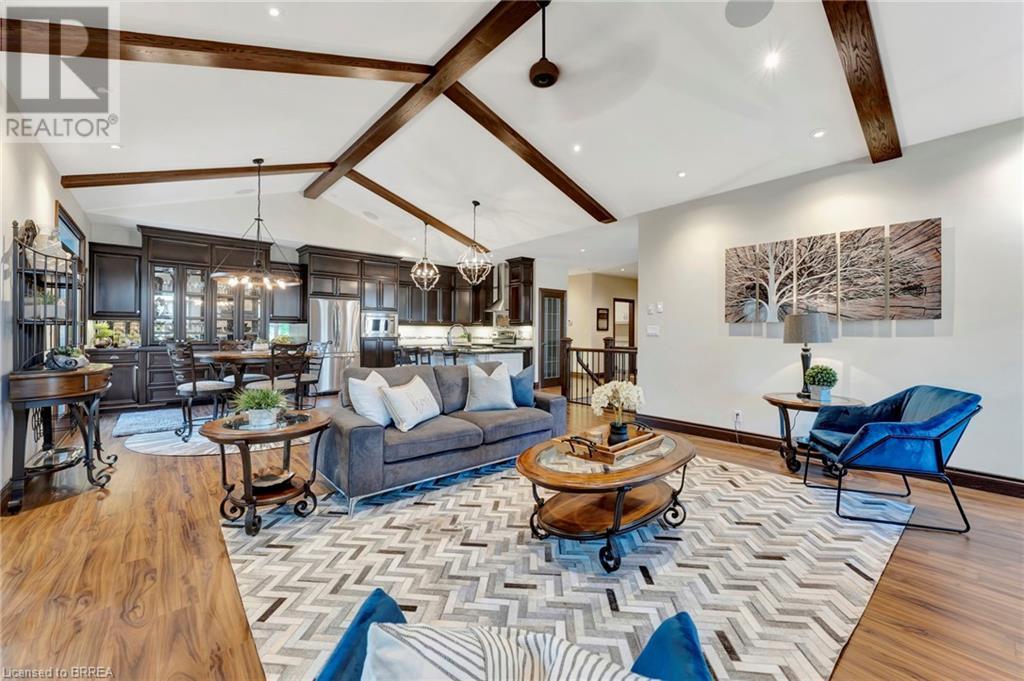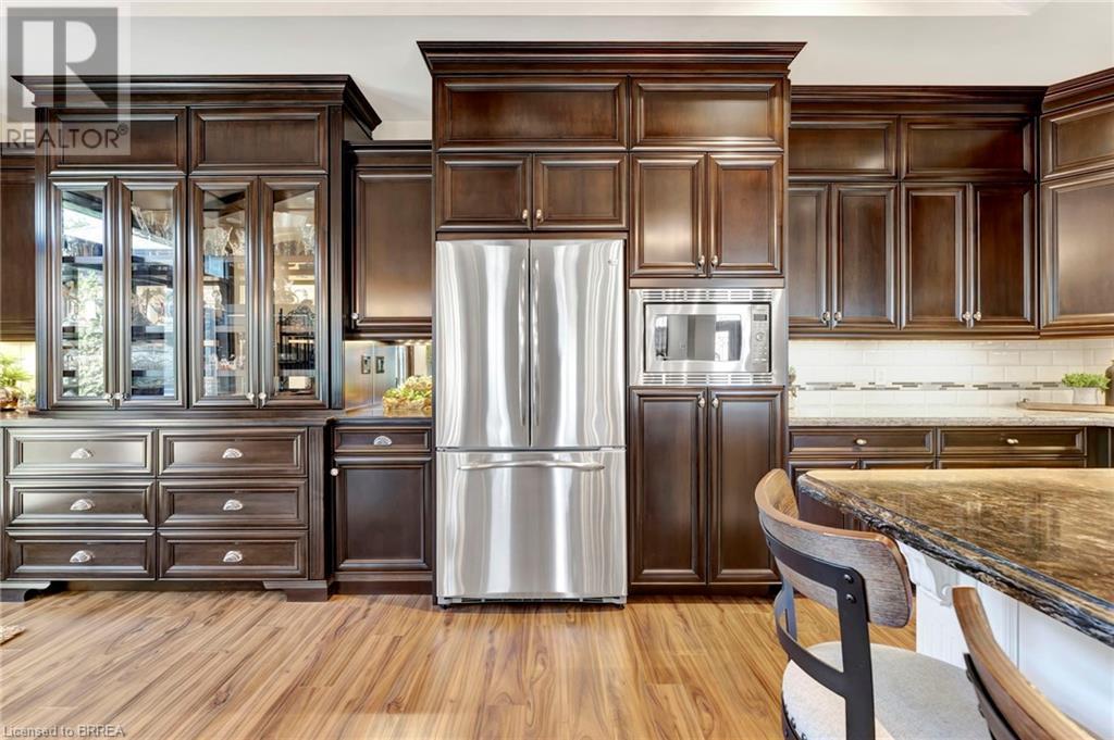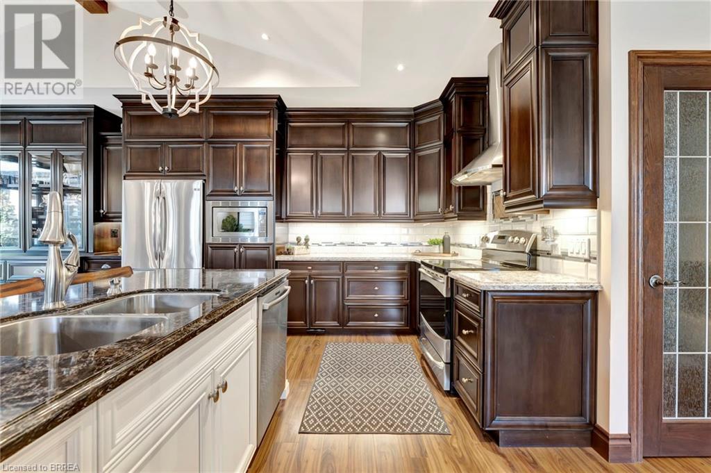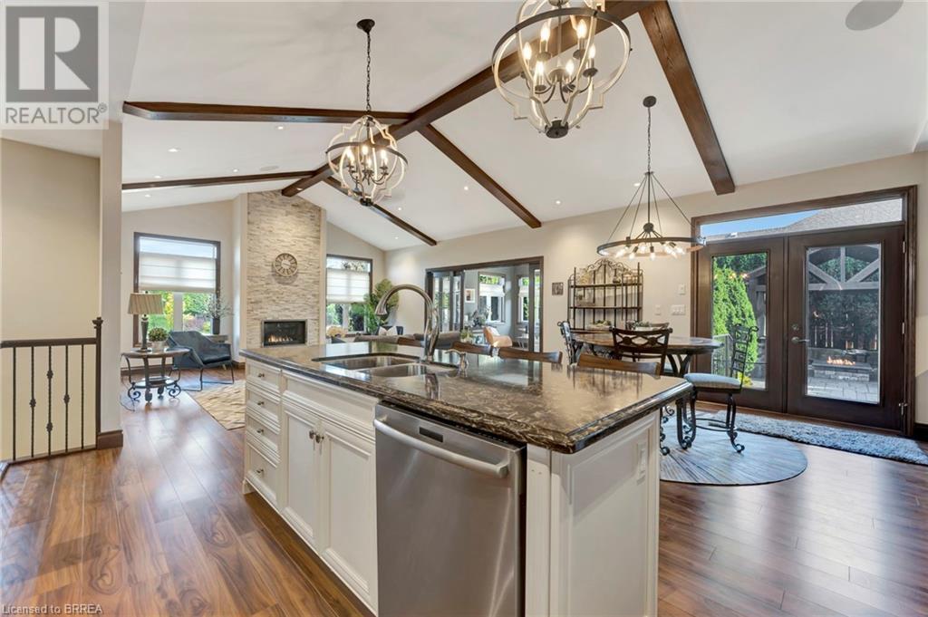 Custom built to perfection, this extraordinary corner lot home in the prestigious YIN subdivision of Waterford offers a blend of luxury and tranquility. From the moment you arrive, the home's exquisite design and thousands of dollars in upgrades are immediately apparent. A sanctuary of quiet opulence, this property is an absolute dream come true. The exterior impresses with grand armor stone accents, a heated 3 car garage, paver stone driveway and walkway and beautifully landscaped gardens that lead to the entrance of this home. Inside, the open-concept main living area is designed for easy living, featuring a two-toned kitchen that belongs in a magazine. Custom cabinetry with crown moldings, glass door display shelving, ample storage, quartz countertops, and an oversized pantry provide both style and functionality. The double-door walkout makes al fresco dining a breeze, while the vaulted ceilings with beams and elegant chandeliers add grandeur. The soaring fireplace, flanked by windows, enhances the ambiance. A pocket French door leads to the sunroom, a private retreat with stunning garden views. The main floor primary suite is a haven of comfort, offering a spacious walk-in closet with built-in shelving and a spa-like ensuite with heated floors, a Jacuzzi tub, and a separate shower. A second bedroom on the main floor is ideal for guests or as a home office. The lower level expands the living space further with a bar/kitchenette, two additional bedrooms, and a full bathroom. The outdoor space is equally captivating, featuring an outdoor bar area with granite countertops, all under a custom gazebo with cedar roofing. Enjoy the swim spa/hot tub, or relax by the gas firepit, all surrounded by meticulously landscaped grounds. The property is equipped with an 8-zone sprinkler system with a Rain Maker drip line, ensuring the gardens are always lush and vibrant. This home truly embodies luxury living at its finest. (id:55009)