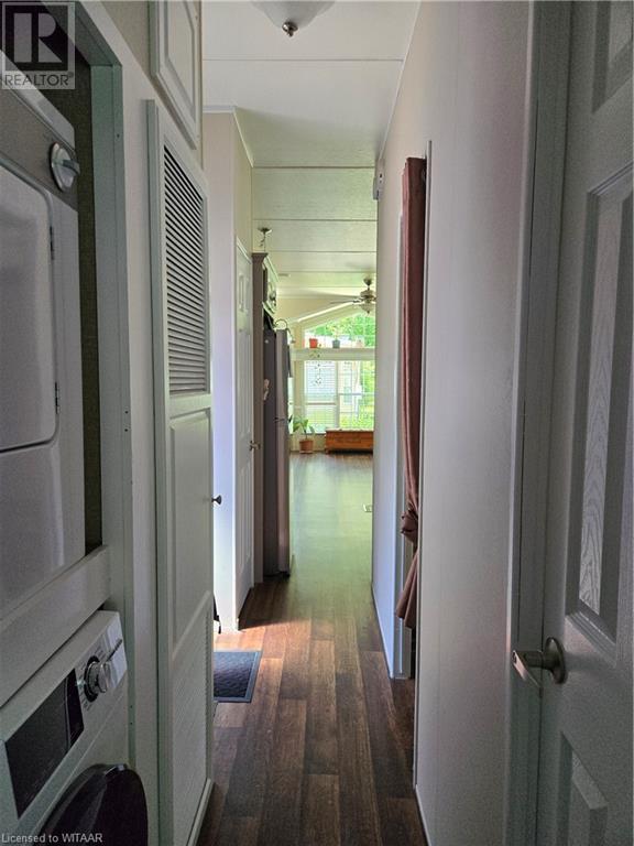 Care-free retirement living awaits you at Lyons Shady Acres!! The windows let in tons of natural light. The chalet ceiling adds height. The kitchen features ample cupboard space with sight-lines to the living room to make entertaining seamless. There's even a spacious pantry with pull-out shelves. The Primary has built in closets and headboard. Painted in light neutral colours. Enjoy the large deck & gazebo with picturesque views to enjoy the sunset and your morning coffee. The shed can house all your gardening tools & winter storage for the patio furniture. The attached Florida room gives you additional living space since the 2nd bedroom has been converted into a utility room. The fireplace in the living room makes it cozy in the winter. The friendly community is 50+ and park amenities include year round recreation hall that hosts year round social events, shuffle board and more. The inground pool is open during the summer months. Spend your time doing what makes you happiest instead of worrying about a large home & property to maintain. Country & carefree living conveniently located close to Woodstock & Brantford. (id:55009)