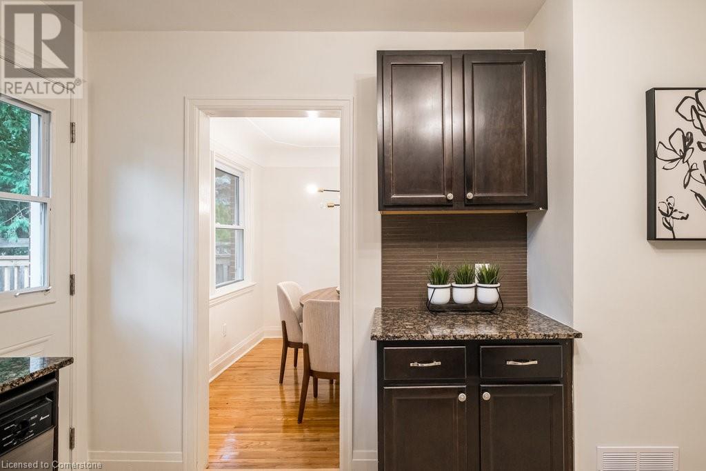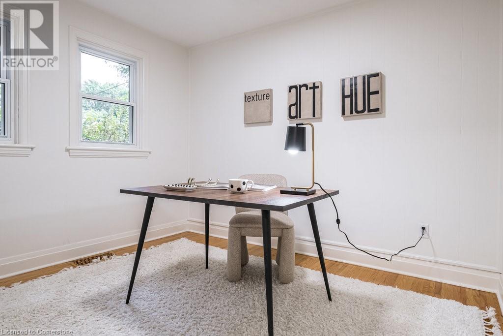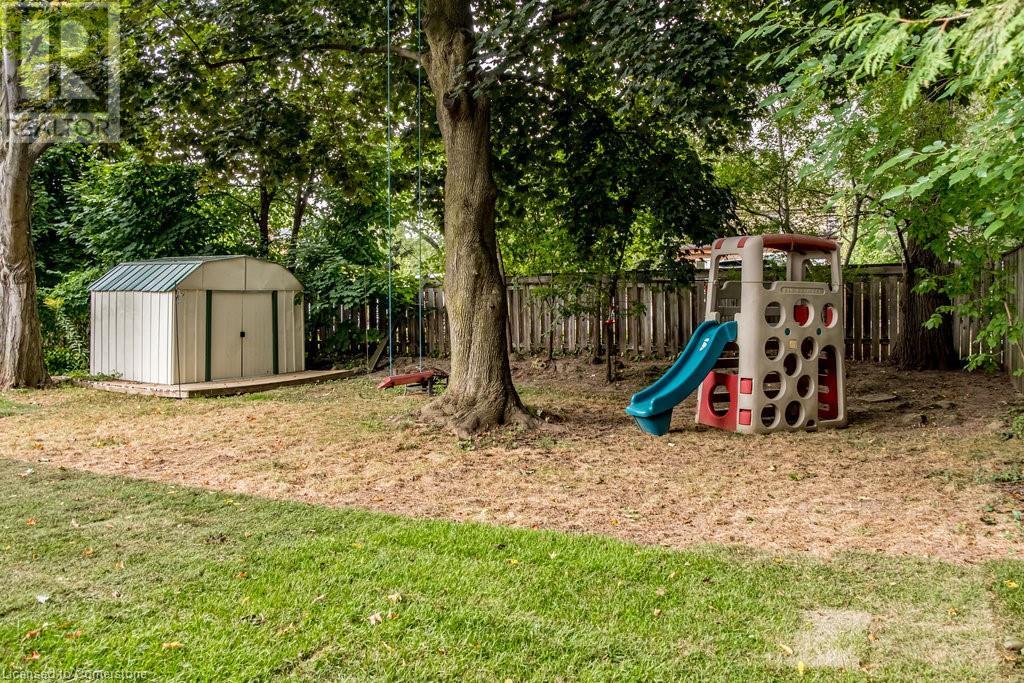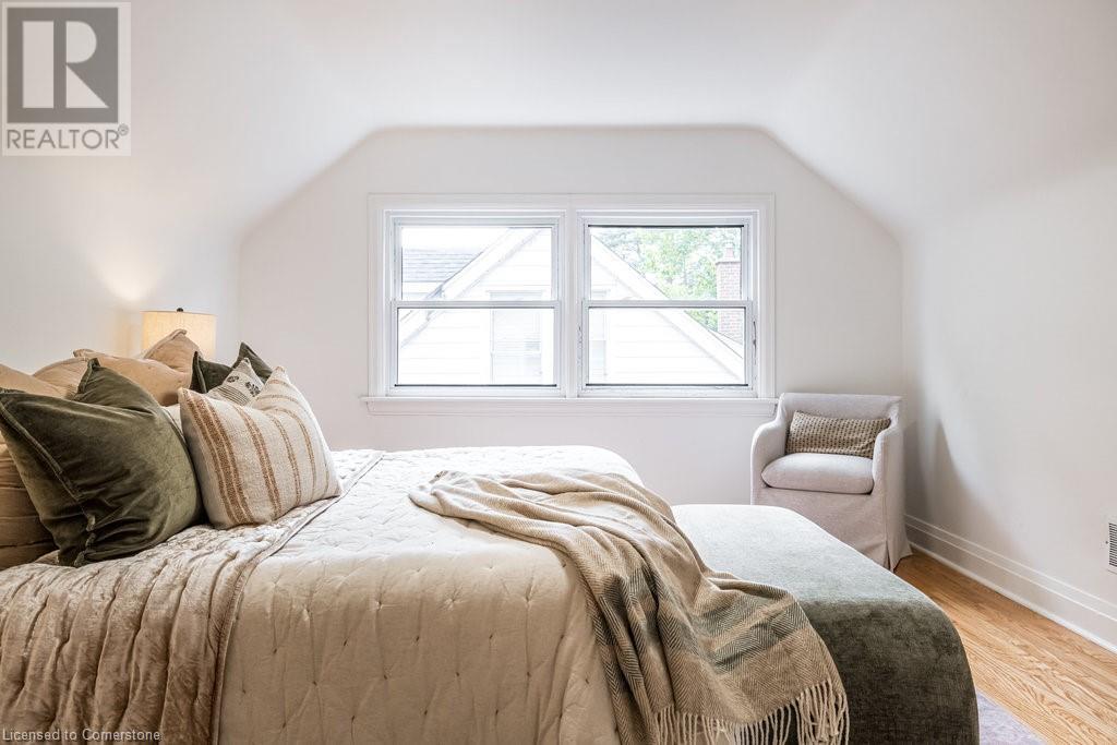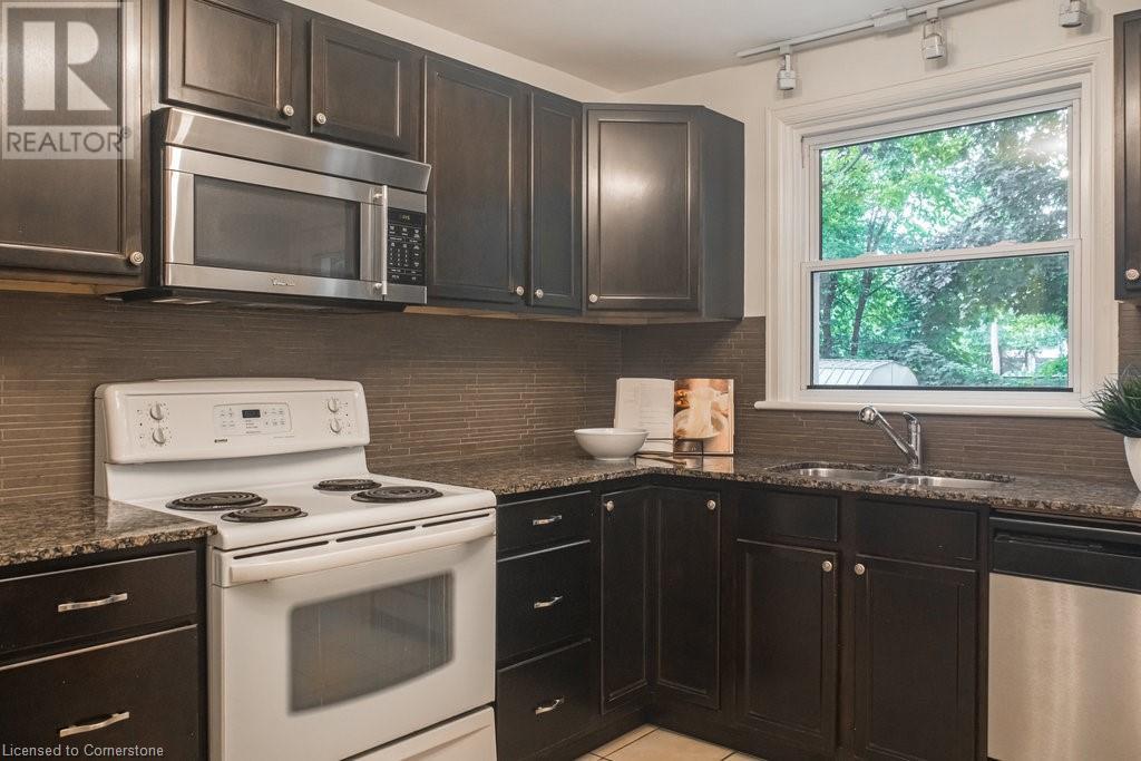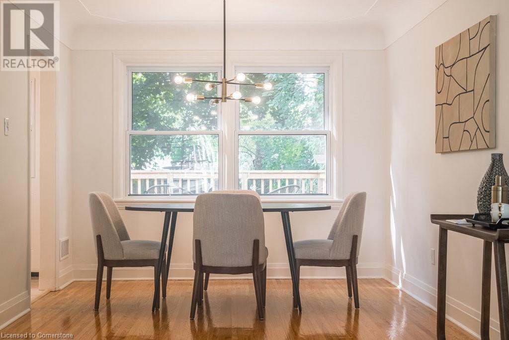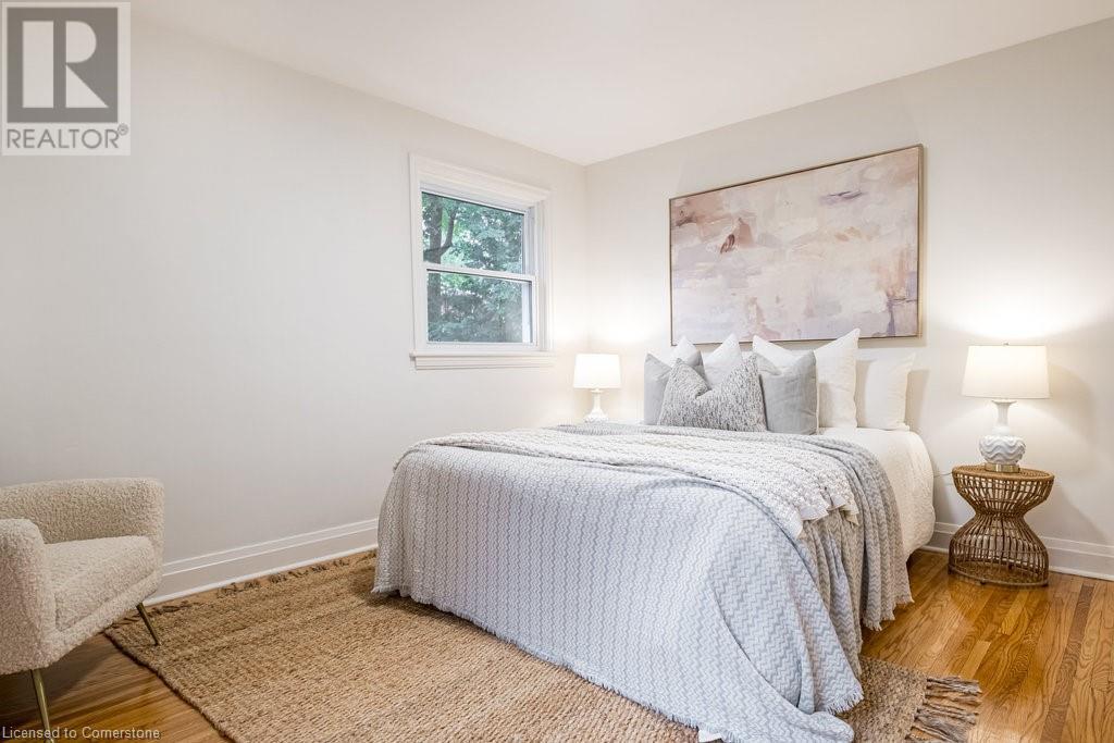 Nestled in the tranquil Birdland community, this delightful home on a 58 x 129 ft lot boasts 4 bedrooms, with 2 situated on the main floor and 2 upstairs. Each level is equipped with a full bath for added convenience. The unique layout of the main floor bedrooms makes this home perfect for empty nesters or first time buyers, offering the potential for a main floor office and a guest room. The spacious living room and dining area are adorned with a wood-burning fireplace, creating a cozy atmosphere. The kitchen has been updated with granite counters, a double undermount sink, and wood cabinetry. Accessible from the kitchen, a newly constructed deck provides a perfect spot for enjoying the serene view of the expansive private fenced backyard. The property has undergone multiple updates, including the roof (‘17), AC (‘21), newer furnace, many updated windows, recently refinished hardwood floors, as well as fresh interior paint on all levels, exterior waterproofing, and updated interior lighting, all completed in 2024. The generously-sized driveway can accommodate ample parking, and guests are greeted by a curved walkway leading to the front entry. Located in the prestigious South Aldershot neighbourhood, residents can enjoy easy access to shops and restaurants, waterfront trails, the picturesque Royal Botanical Gardens, the renowned Burlington Golf & Country Club, as well as the peaceful LaSalle Park with its scenic walking trails through the woods along the lake and the marina. (id:55009)
