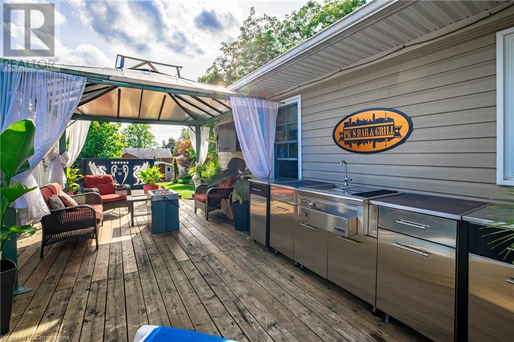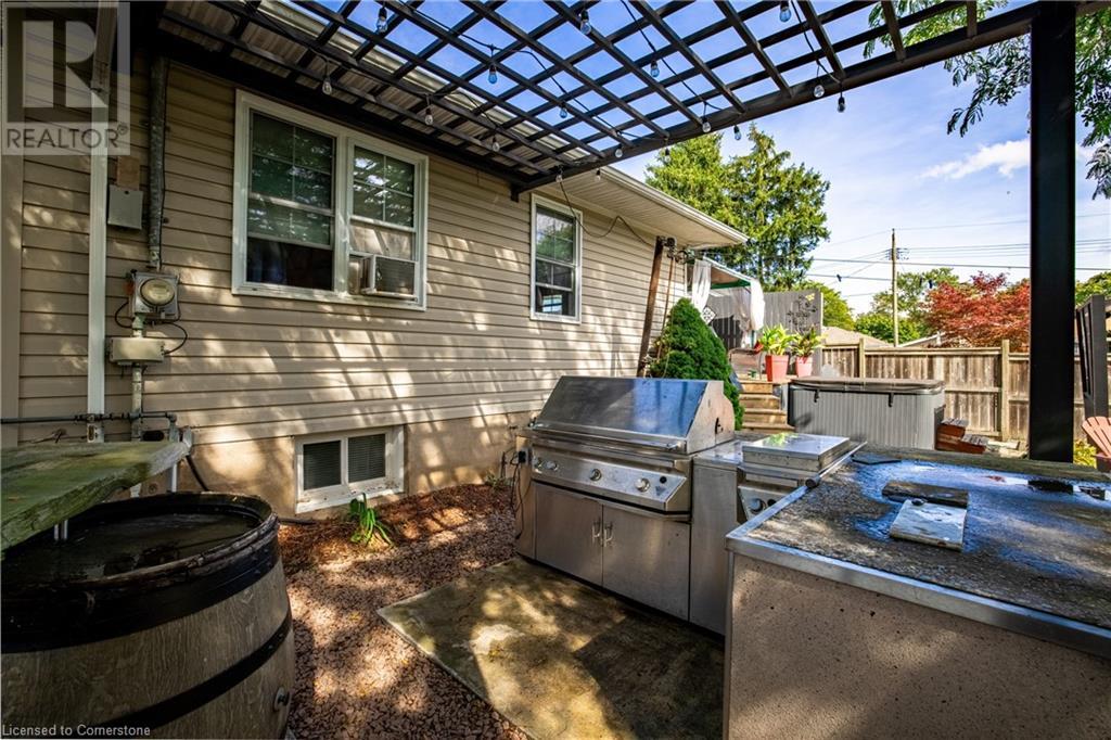 Welcome to 3 Maplewood Crescent in Welland, a charming bungalow nestled in a quiet, mature neighbourhood. This 2+1 bedroom home offers the perfect blend of comfort and functionality. The open-concept layout includes a well-maintained, newer kitchen with side door access, ideal for everyday living. The bright living room features coffered ceilings and a gas fireplace, creating an inviting atmosphere for gatherings. Step through to the expansive 25x12 deck, complete with a gazebo, offering the perfect outdoor retreat. Sitting on a 60x160 lot, the property is a handyman's dream. The heated workshop/garage, equipped with hydro, propane heat available & is perfect for projects. The private, fenced yard features an outdoor kitchen, a soothing water feature, a garden shed, and a hot tub, making it the ideal space for both entertaining and unwinding. The finished basement boasts a spacious family room with a second gas fireplace for added comfort, 3rd bedroom and gym. The gated driveway can fit up to 8 cars, and the roof was replaced approx. 8 years ago. Located close to schools, parks and shopping. Newer main floor windows 2018 (id:55009)