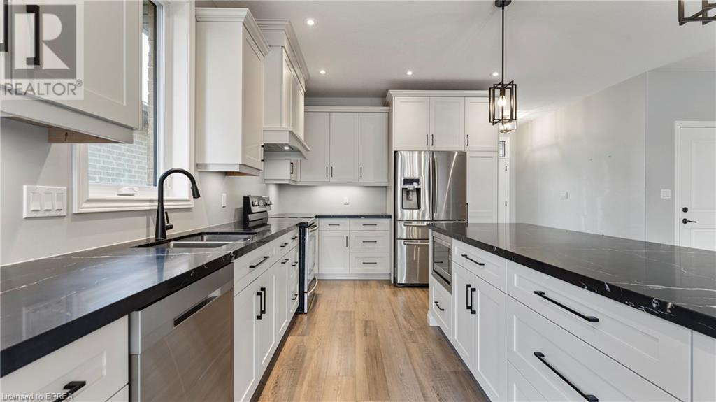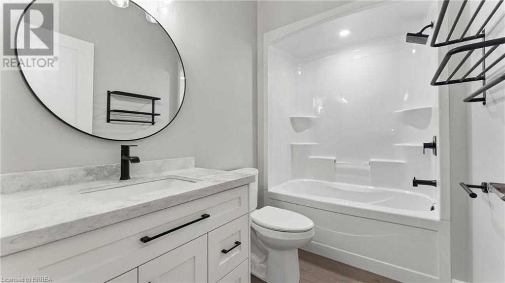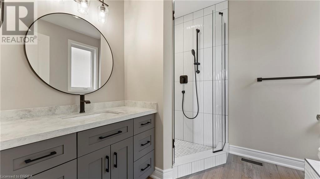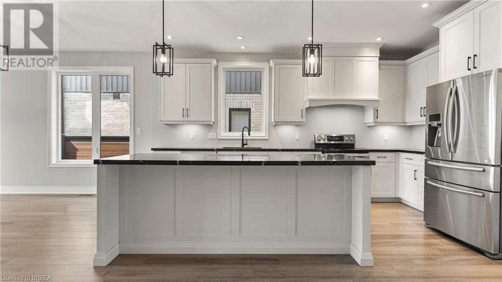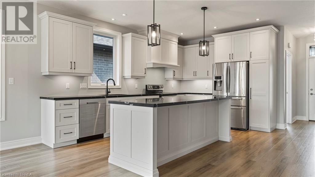 Introducing 30 Hare St, a stunning 2-year-old bungalow in Waterford, ON, offering 1,549 sq ft of above-ground living space and a beautifully finished basement. This modern home features five spacious bedrooms and three and a half bathrooms, perfect for families of all sizes. The exterior showcases a classic all-brick design with elegant stone accents, creating a striking contrast that enhances curb appeal. Step inside to discover a bright and airy open-concept layout, where natural light floods through abundant windows. The stylish white kitchen boasts upgraded countertops and a large island, making it an ideal spot for dining and entertaining. The seamless flow from the kitchen to the dining and living areas provides a welcoming atmosphere for gatherings. Outdoors, you’ll find a roofed composite deck that spans the entire width of the home, perfect for relaxing or hosting summer barbecues. The finished basement offers two additional bedrooms and a spacious area for family fun or game nights. Nestled in a peaceful neighborhood, this home allows you to enjoy the unique charm of Waterford, complete with a delightful downtown area featuring trails, local restaurants, antique shop, and a museum. Plus, with just a 20-minute drive to the shores of Lake Erie, you can easily enjoy lakeside activities. Don’t miss the chance to call this beautiful bungalow your home! (id:55009)
