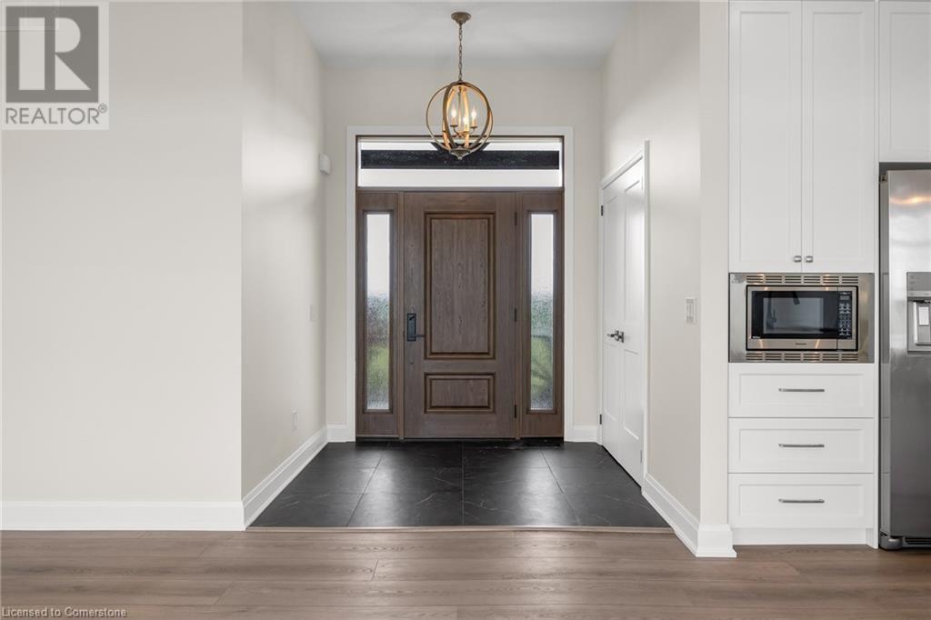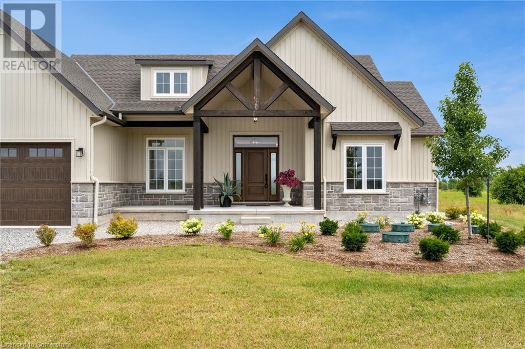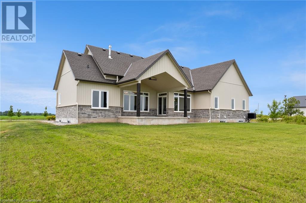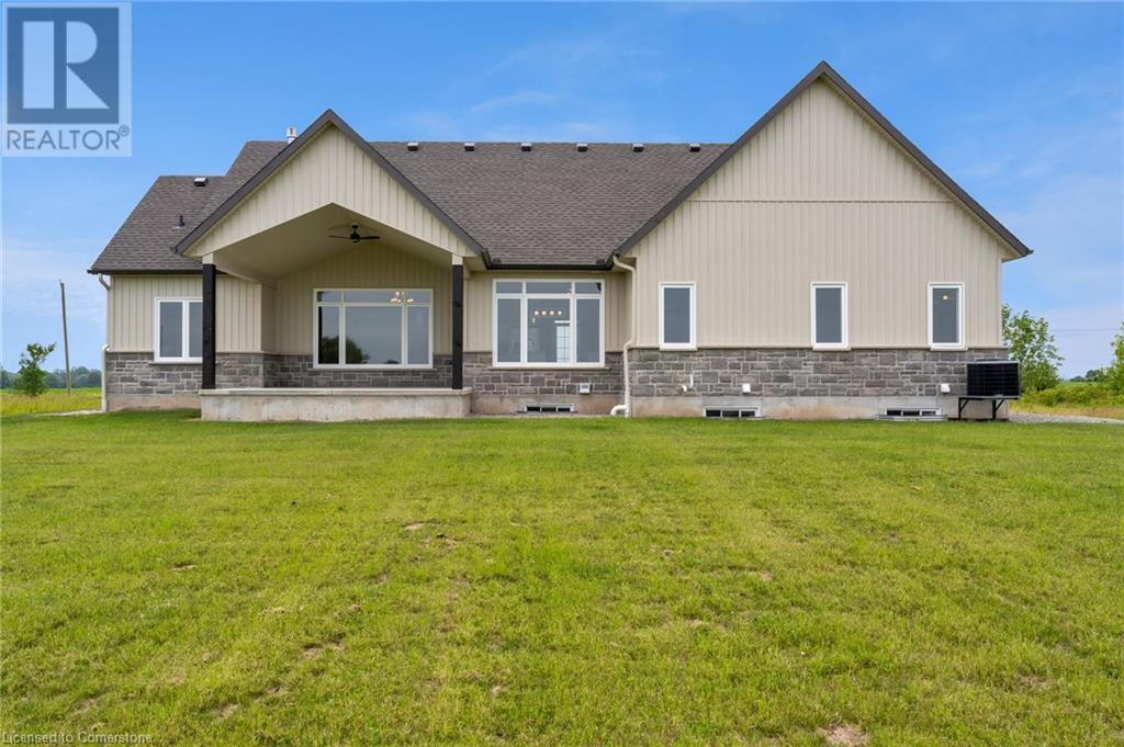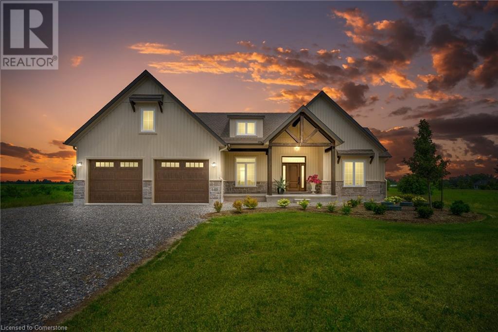 Welcome to this stunning 1,895 sq ft bungalow built by “Beldman Homes,” where luxury living meets affordability. Minutes from the sandy beaches of Lake Erie & the Port Maitland Pier this beautiful bungalow is situated on a one acre lot. Inside & outside you will notice the exceptional craftmanship & attention to detail in this build. Outside wows you with post & beam features & stone accents. Inside you will find an open concept floor plan perfect for entertaining. While the chef of the family cooks in the kitchen, the guests can relax in front of the fireplace in the living room while admiring the tray ceiling with recessed lighting. The chefs kitchen features an expansive island, s/s appliances, natural gas stove, & large walk-in pantry. The master bedroom is secluded in its own private wing. It boasts a 4 pc ensuite with glass shower & a walk in closet. Two spacious bedrooms are located on the opposite wing accompanied by a 4 pc bathroom. The full, unspoiled basement offers large windows, a roughed-in bathroom, & over 8 ft ceiling height, providing endless possibilities for customization. Finishing touches include elegant baseboards & casings, solid oak stairs to the basement, large windows capturing the picturesque countryside views & 9-inch luxury vinyl plank flooring. Enjoy outdoor living on the covered rear porch, & dream of what oasis you can create in your backyard. Skip the hassle of building, this home is truly move-in ready, with immediate occupancy available. (id:55009)