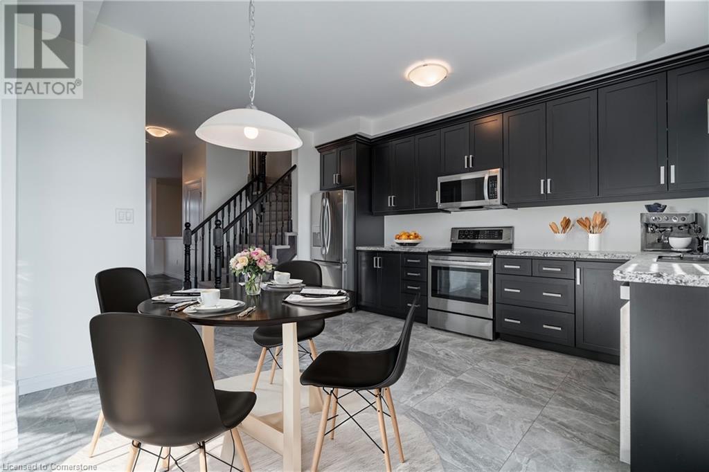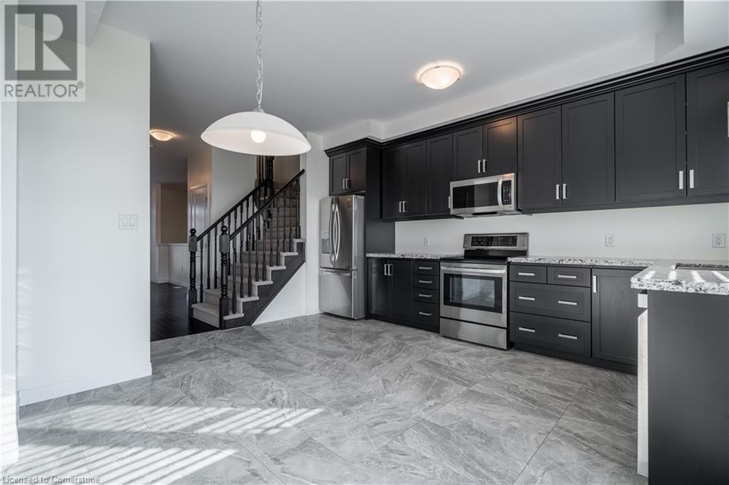 This stunning 3-bedroom, 3-bathroom, 3-story townhome, built by Losani Homes in 2019, is in pristine, turn-key condition. Featuring hardwood flooring, oak stairs, tiled bathrooms, stainless steel appliances, and cozy carpeted bedrooms, this interior unit offers both style and comfort. Some photos are virtually staged to help you envision the space. Enjoy the open balcony on the second level, a versatile lower-level space that can serve as a sitting area or additional living space, and a private backyard with yard space perfect for outdoor relaxation or entertaining. Located just steps away from restaurants, grocery stores, pharmacies, and small businesses, you're also only minutes from movie theaters, golf courses, and more. For commuters, you'll love the easy highway access with quick routes to the Line, Red Hill, and QEW to Toronto and Niagara, making it simple to get around Hamilton and the surrounding area. Don't miss out on this fantastic short-term rental (6-12 months). Contact us today to schedule a private viewing! (id:55009)