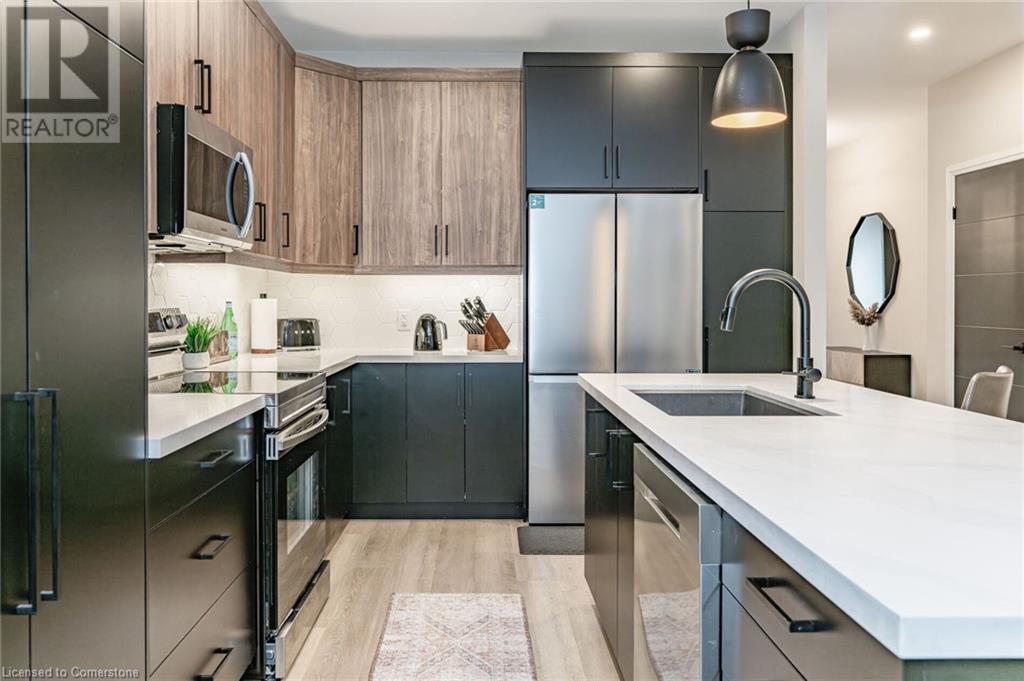 $125 MonthlyWelcome to this stunning, newly built condo/townhouse in desirable location, close to all amenities. Designer decorated and loaded with upgrades. An ideal home for first time buyers or retirees looking to downsize. Featuring 2 bedrooms, 2 bathrooms, spa-like ensuite, main floor laundry, rear covered deck ideal for morning coffee. Open concept design with 9 feet ceiling, impressive and modern kitchen with quartz countertops, backsplash, island with breakfast bar, ss appliances, pot lights, and under cabinet lighting. Modest condo fee includes snow removal, landscaping & exterior maintenance, and water. Flexible possession is available. Pride of ownership is evident. (id:55009)